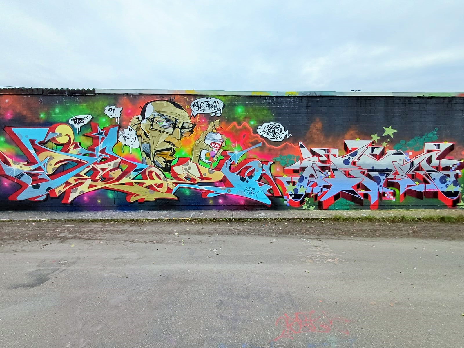 This fantastic collaboration wall was made by the crew NEW 3RD EYE MOVEMENT or in short N3M. The artworks from left to right were made by TRON 26, CORS ONE, SYMER, SAF and DEJOE.