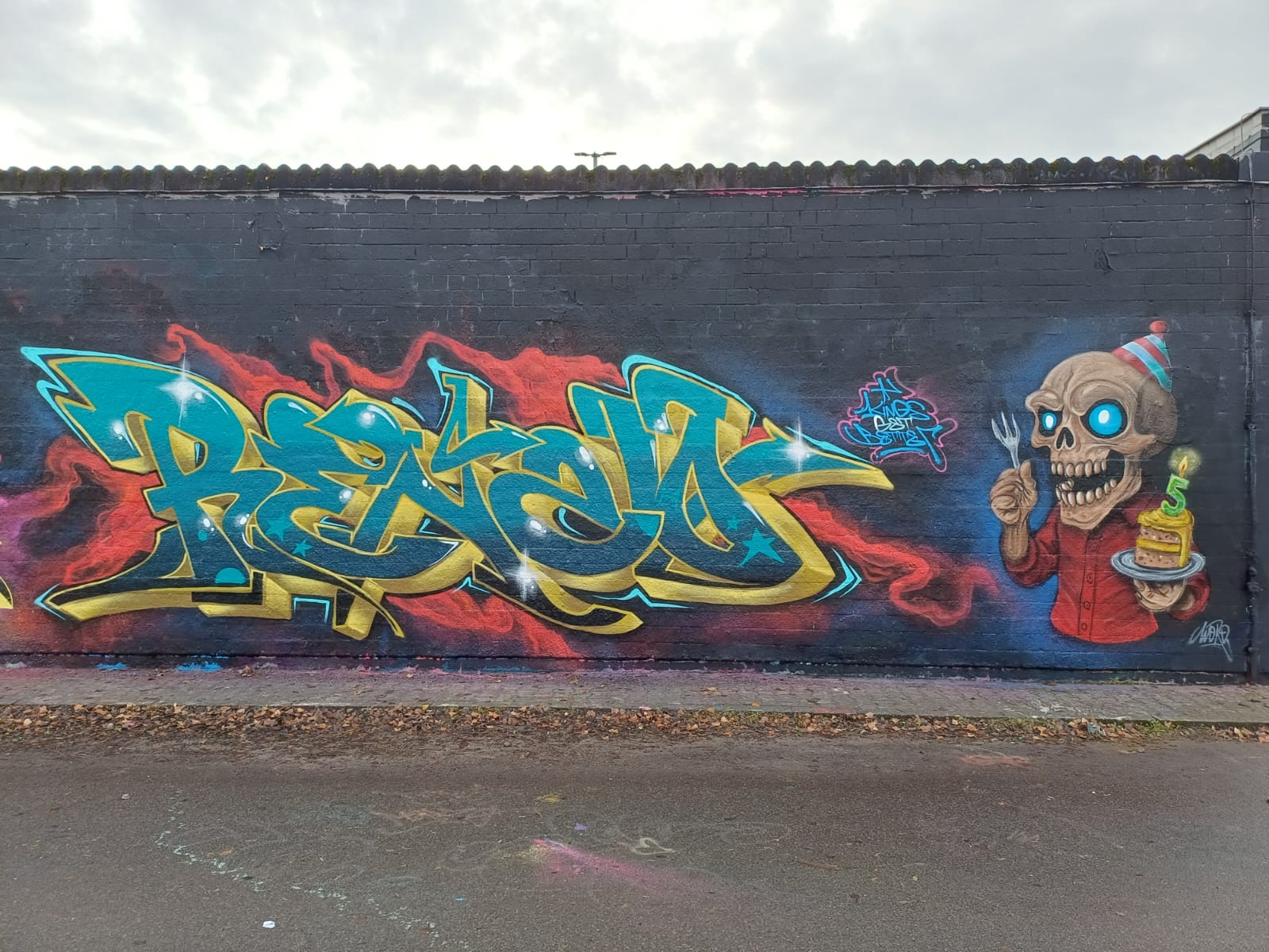 This great Candy Wall was made at the Birthday Jam for STEN 9540. The artworks from left to right were made by RENZO, BLUME, WORD, LAUSI and STEN 9540 and around the corner are two more graffiti from BOND and BKOME. Happy Birthday STEN!