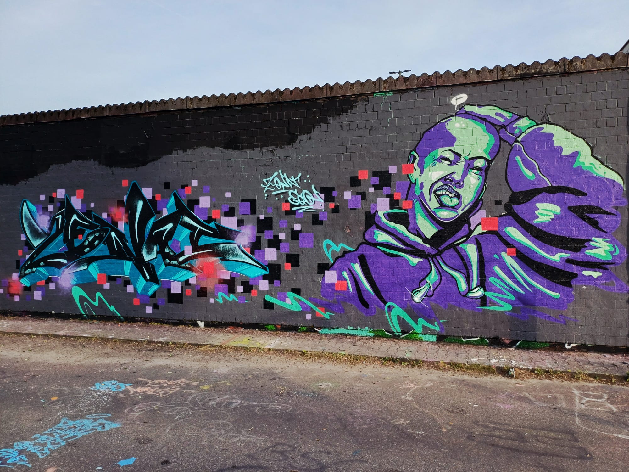 The graffiti on the left is from MONKEE and the portrait on the right was made by EGON