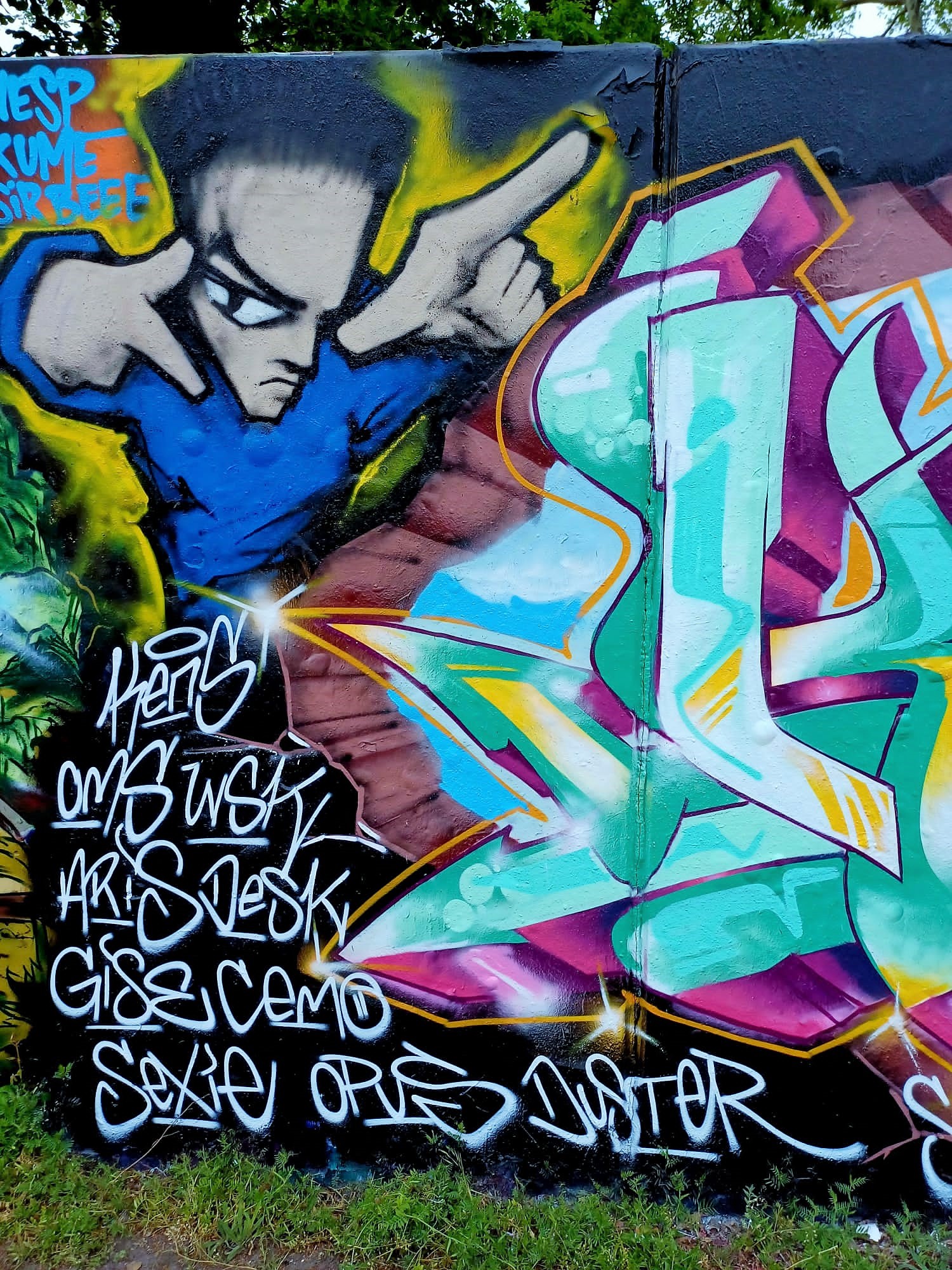 The character on the left is from KOSAR, the graffiti on the right was made by KENS.