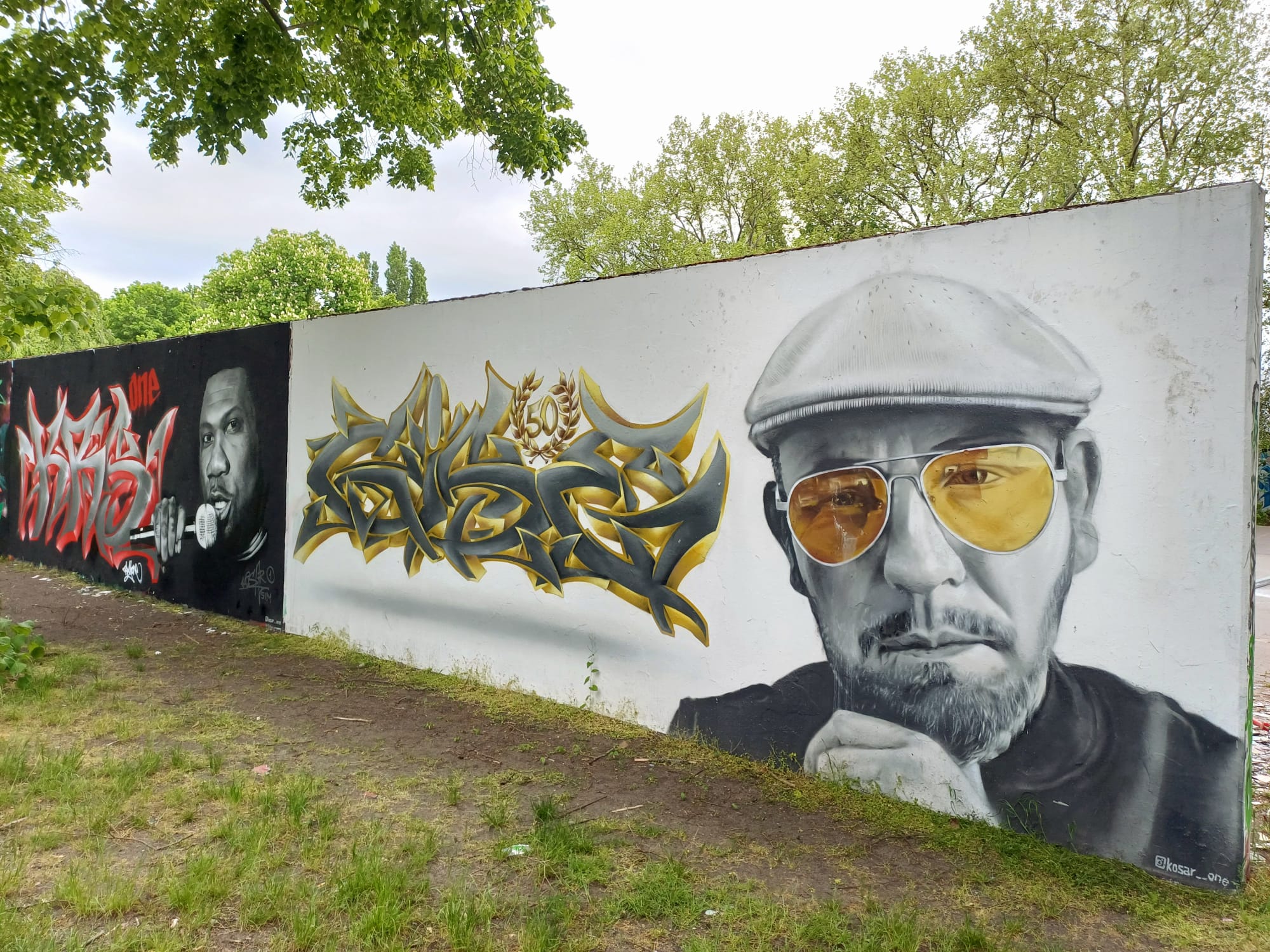 The graffiti on the left ist from AMZE and the tribute to GISEONE on the right was made as well by TAXY and KOSAR
