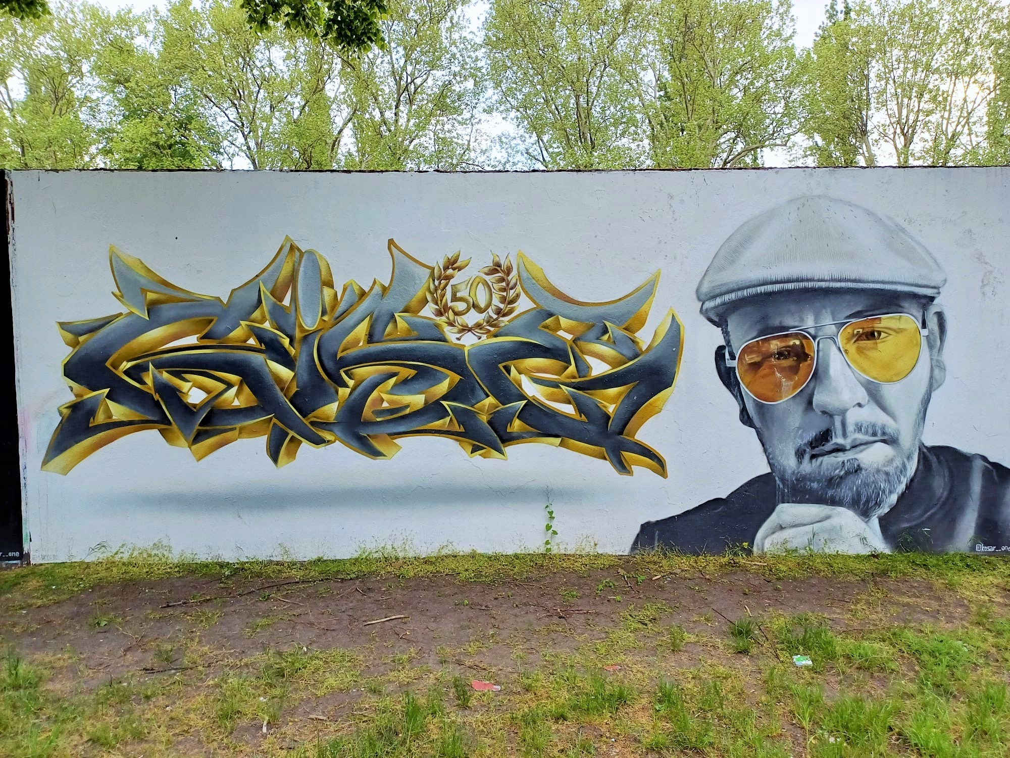 This artwork was made together with KOSAR as a tribute to GISEONE and his 50th birthday. He is the founder of the great OMS CREW in 1991 and is also active since 1989 with the ESB CREW.