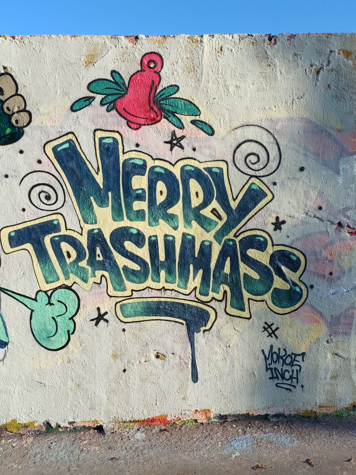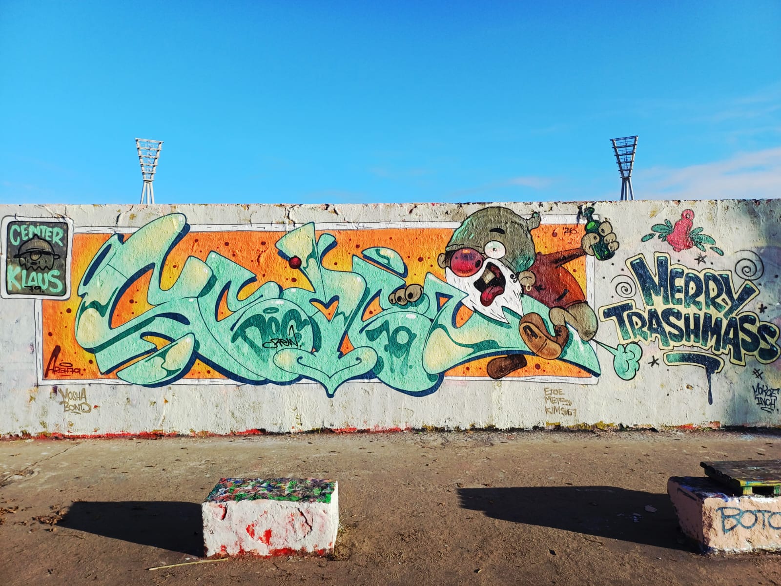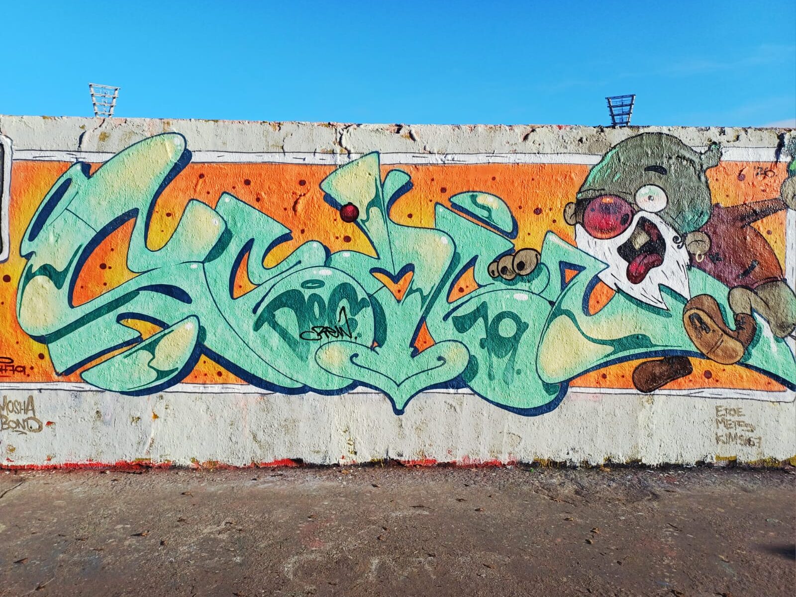 The graffiti on the left was made by BKOME and the artwork on the right is from RETRO
