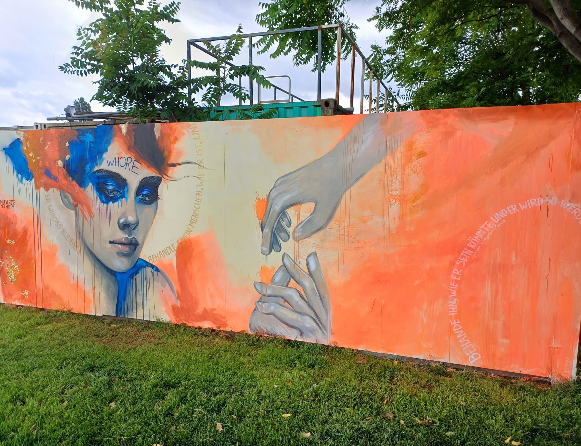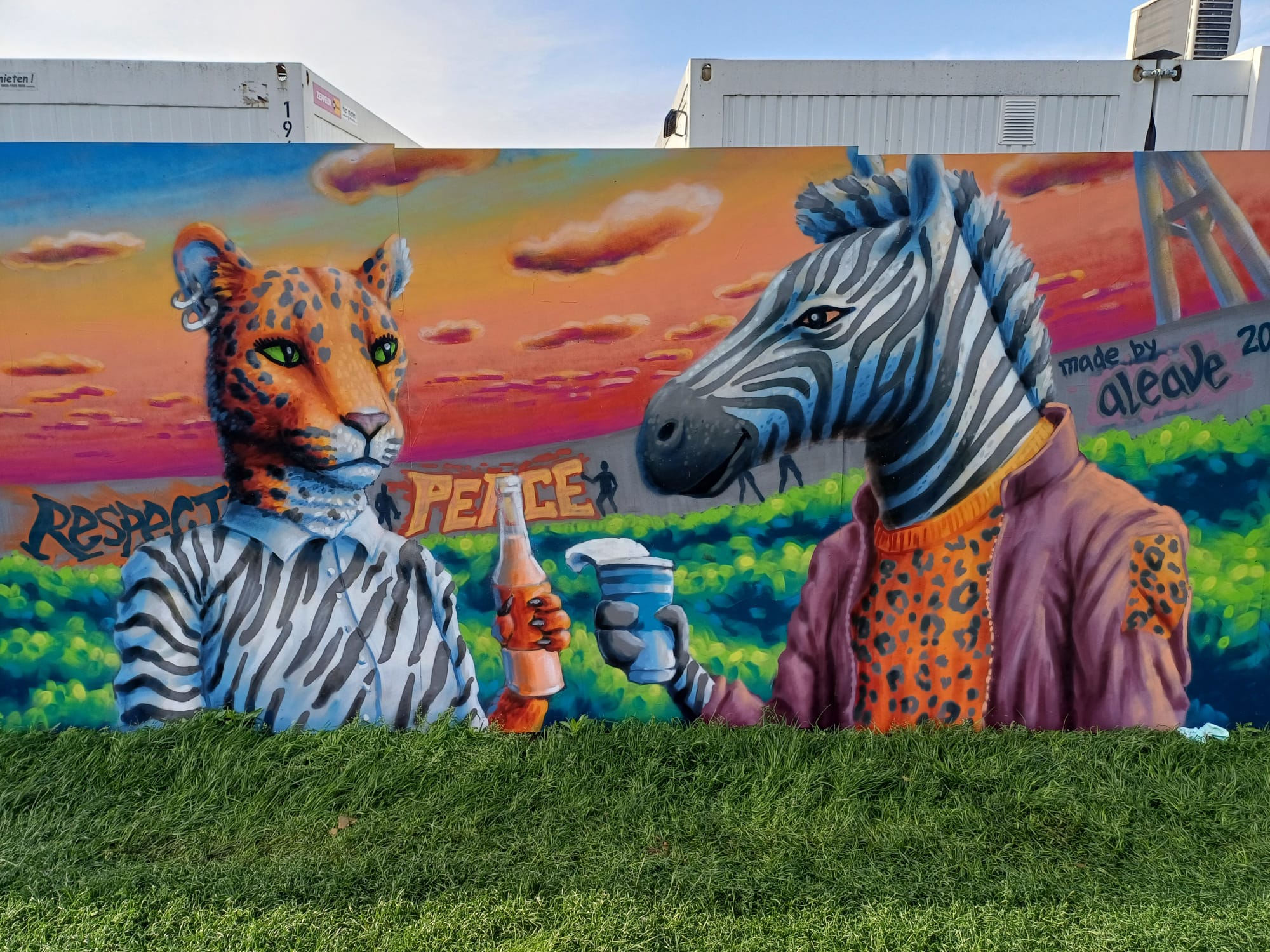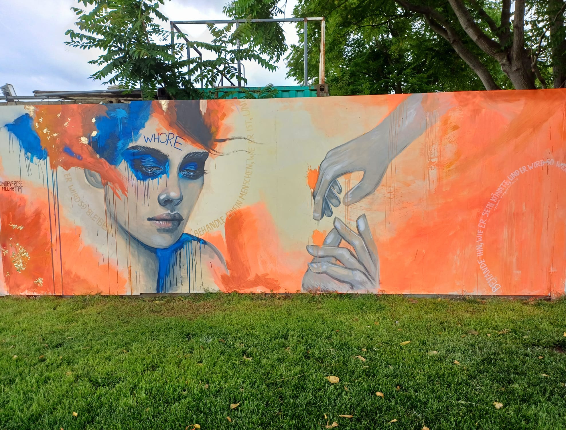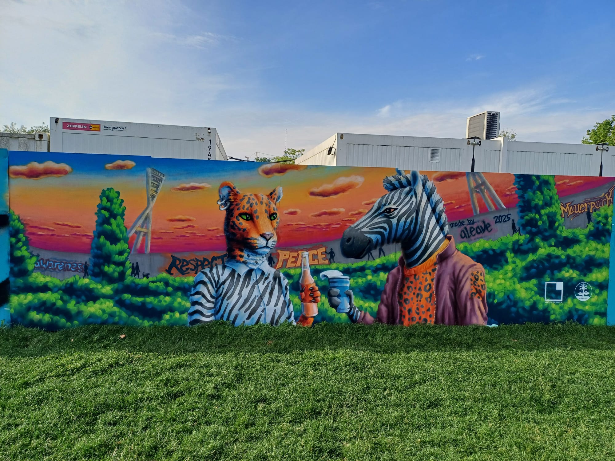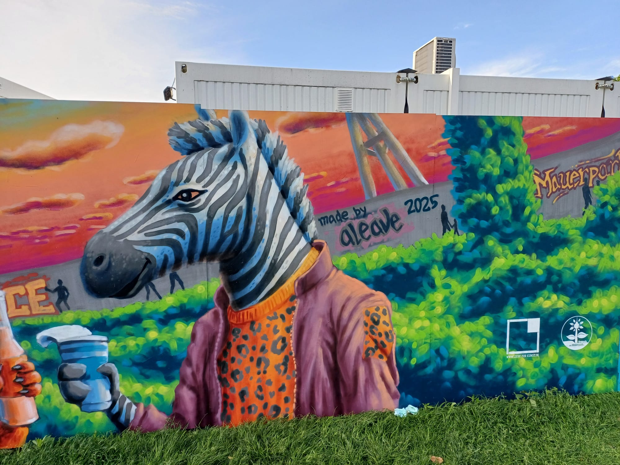 Close to Mauerpark, but still a little off the beaten track, there is a building that has been decorated with works of art for several years. However, these are curated and planned. PEN CHILL’s magnificent work stood on this wall for a long while, but iin 2025 it was time to put new works on the wall. A street art competition under the motto „For more Consideration and Awareness“ was organized by THINK SI³ and PANKOW PARKBETREUUNG with support and jury by GRÜNBERLIN, BEZIRKSAMT PANKOW, MAUERPARK and LIEBE ZUR KUNST. The winner was ALEAVE, followed by WANITAPAGIHARI. Both works were realized on the walls. Other artworks followed by MAEVE ROSE MCCARTHY, JOANNA WINOGRAD and ZELVA UNO.