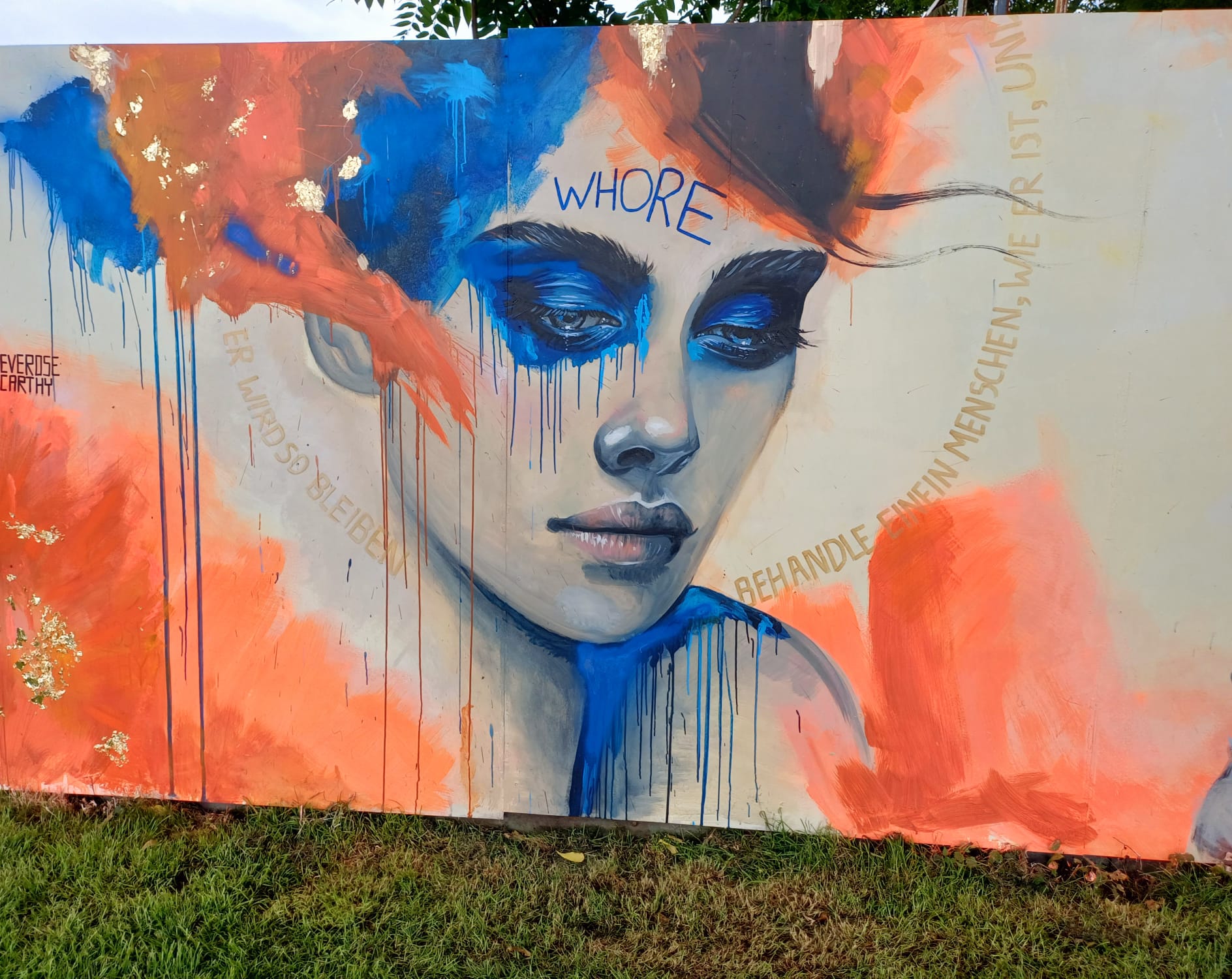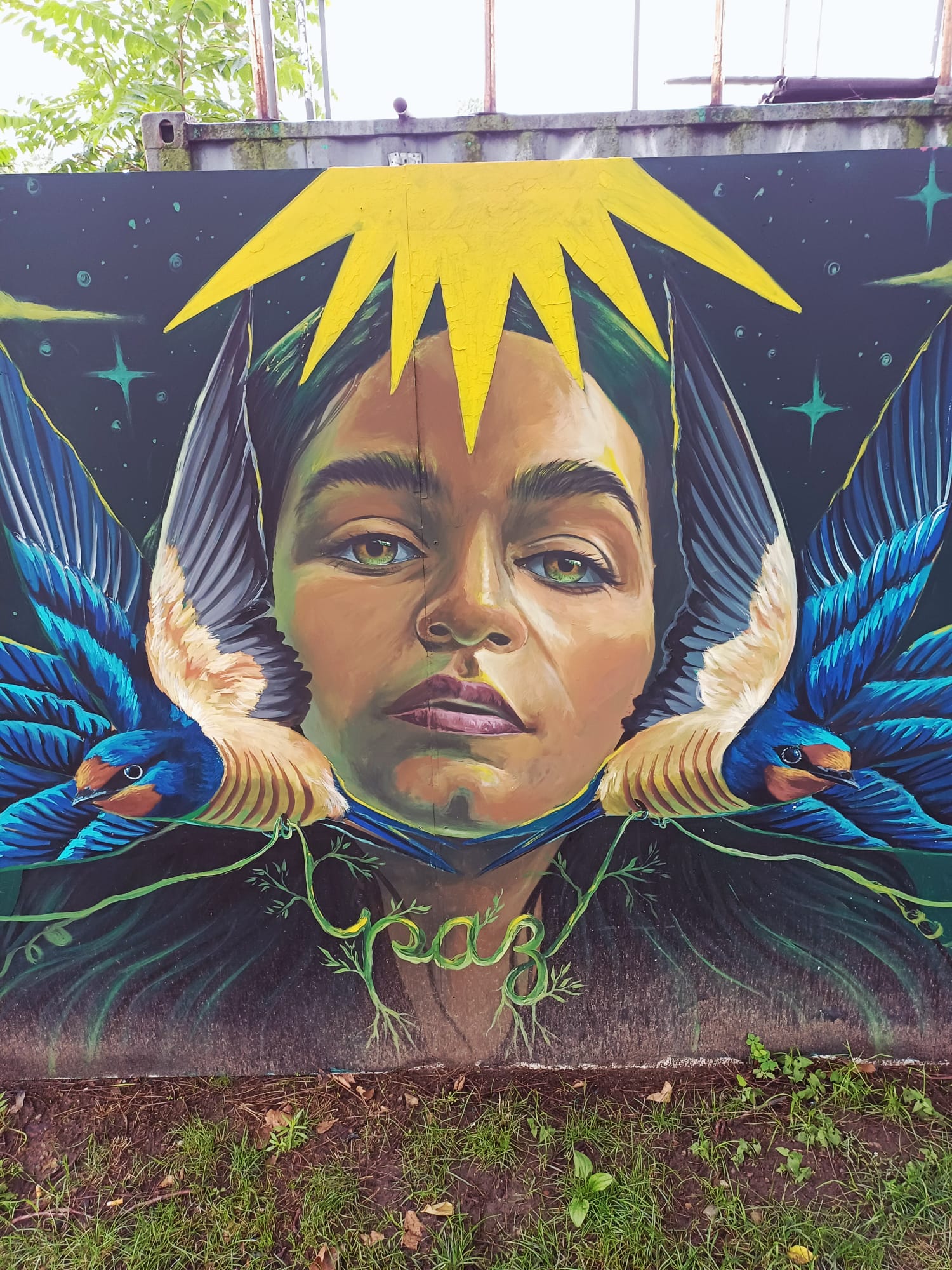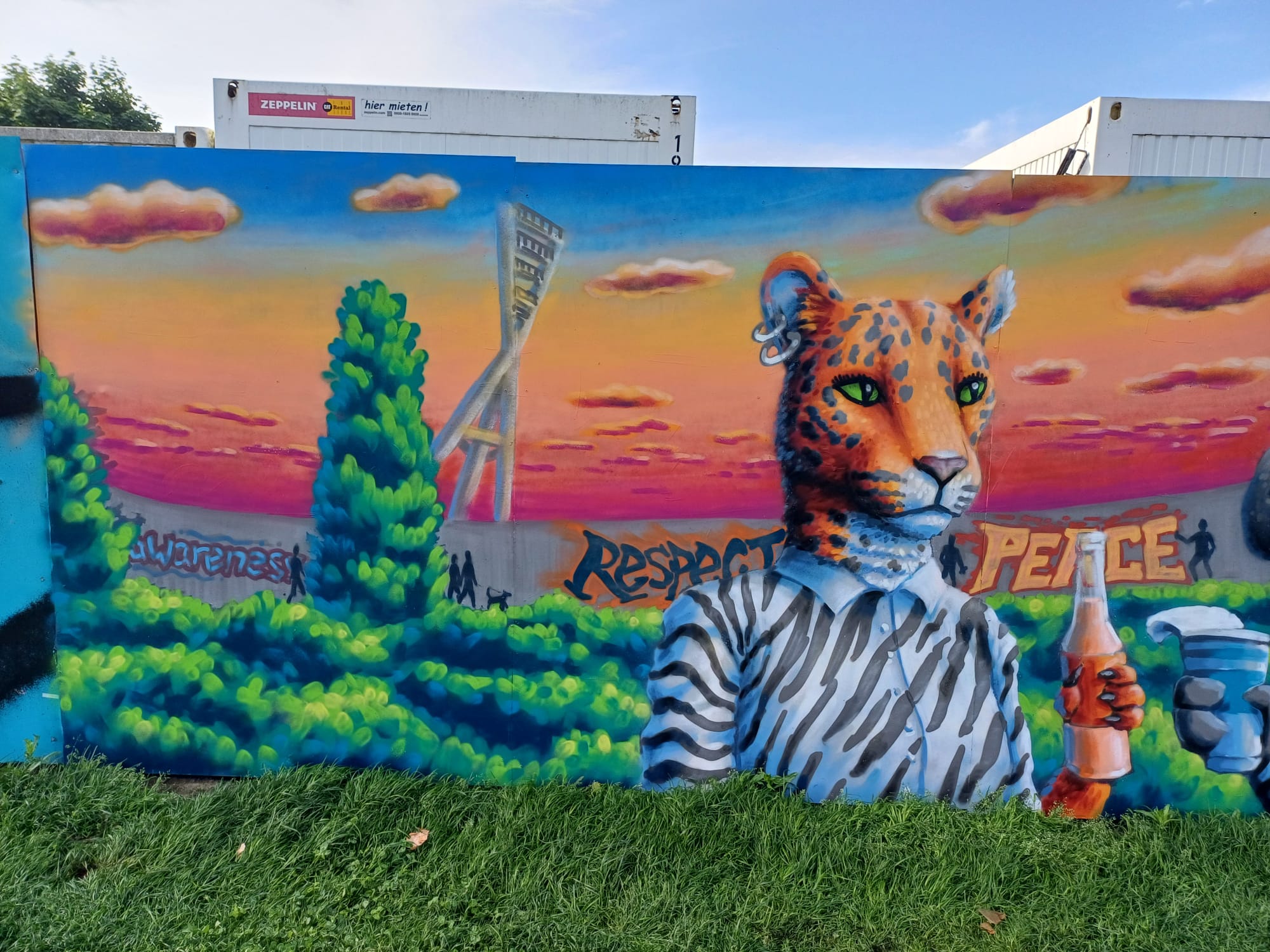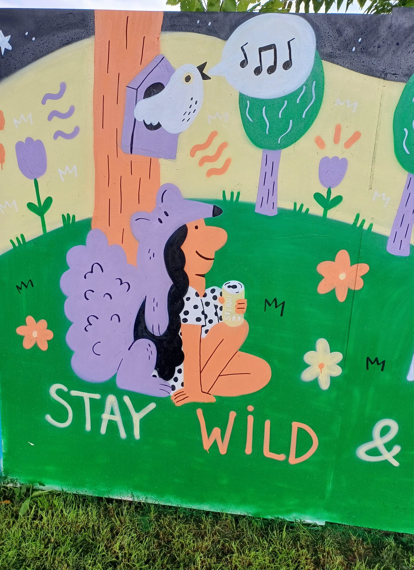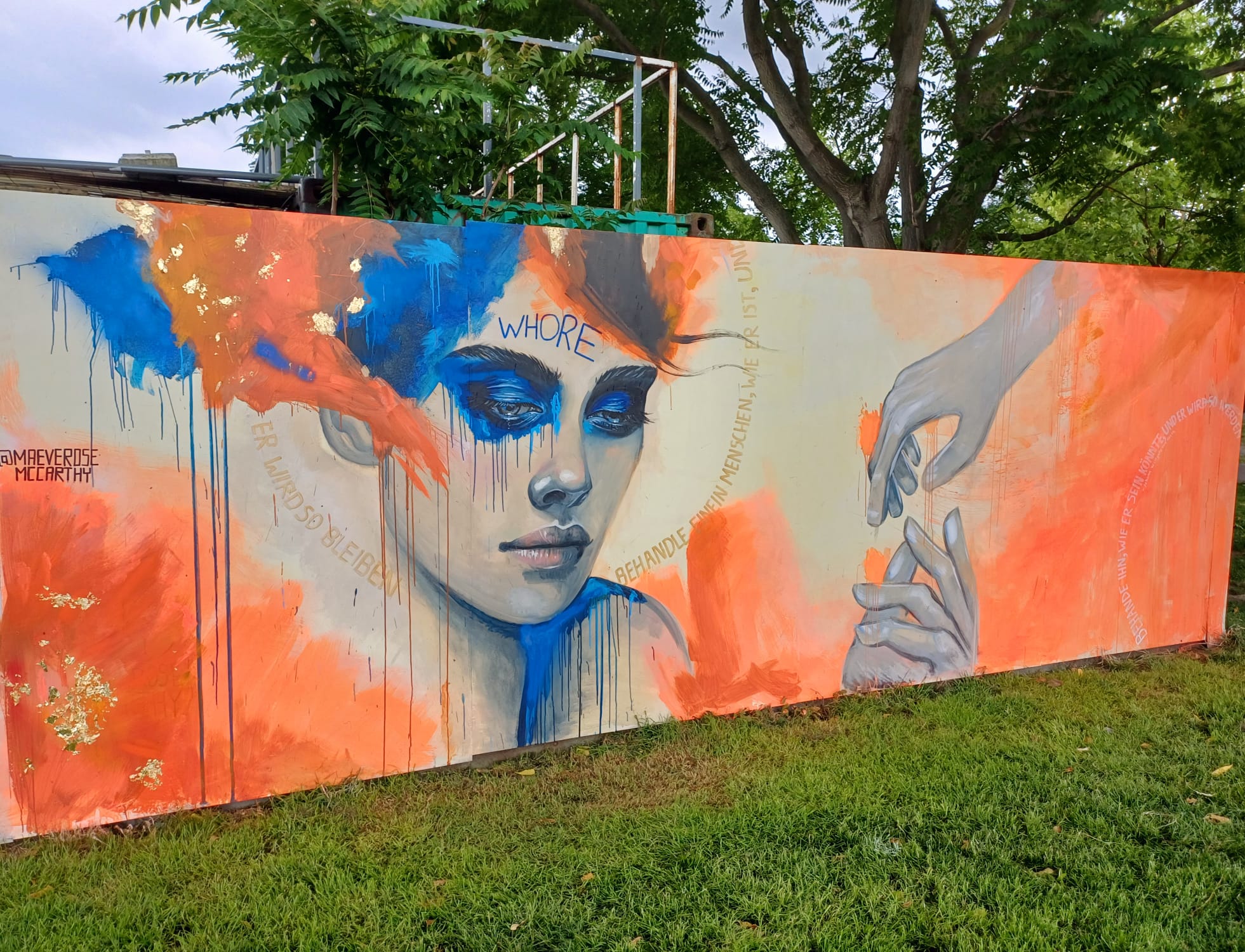 Close to Mauerpark, but still a little off the beaten track, there is a building that has been decorated with works of art for several years. However, these are curated and planned. PEN CHILL’s magnificent work stood on this wall for a long while, but iin 2025 it was time to put new works on the wall. A street art competition under the motto „For more Consideration and Awareness“ was organized by THINK SI³ and PANKOW PARKBETREUUNG with support and jury by GRÜNBERLIN, BEZIRKSAMT PANKOW, MAUERPARK and LIEBE ZUR KUNST. The winner was ALEAVE, followed by WANITAPAGIHARI. Both works were realized on the walls. Other artworks followed by MAEVE ROSE MCCARTHY, JOANNA WINOGRAD and ZELVA UNO.
