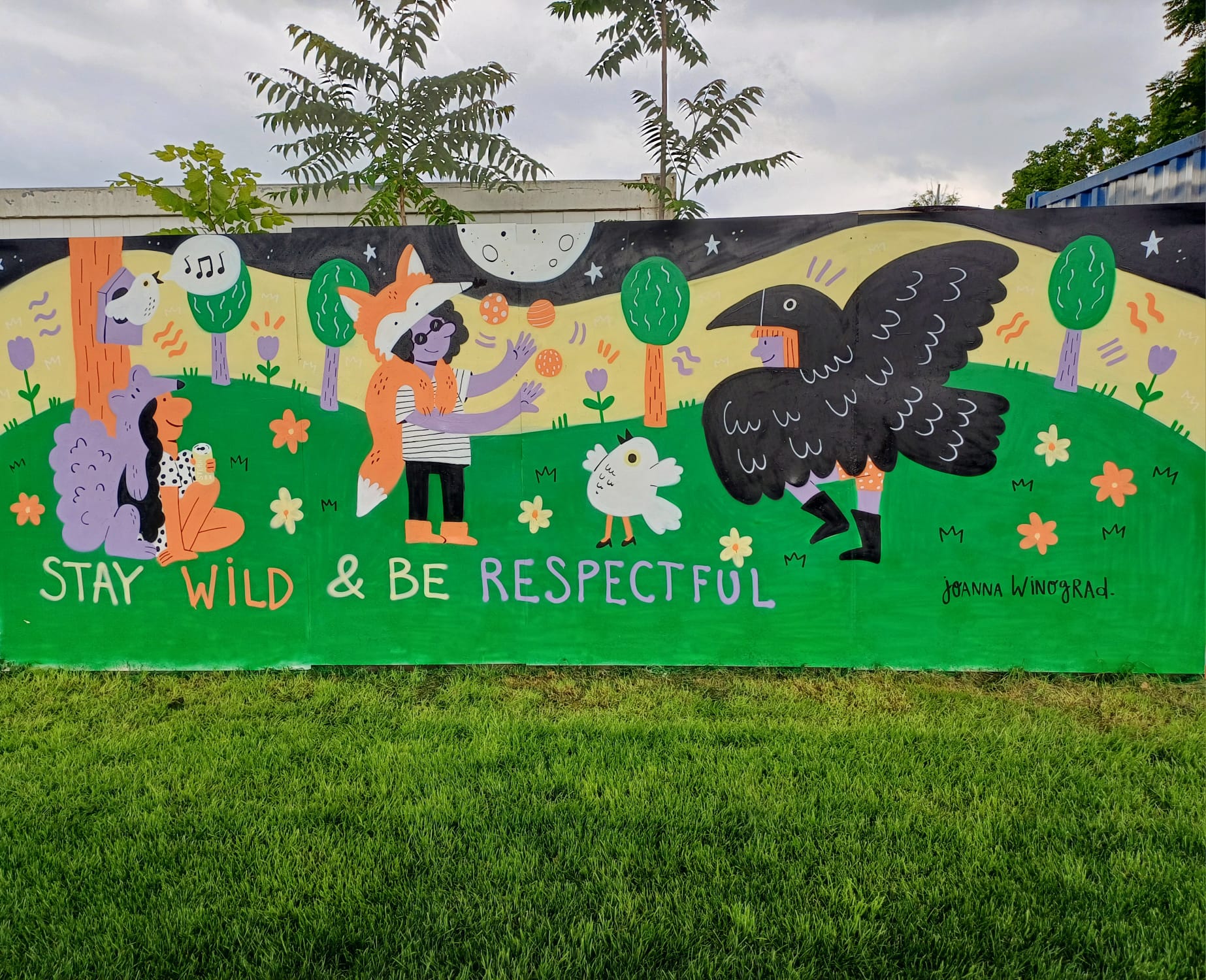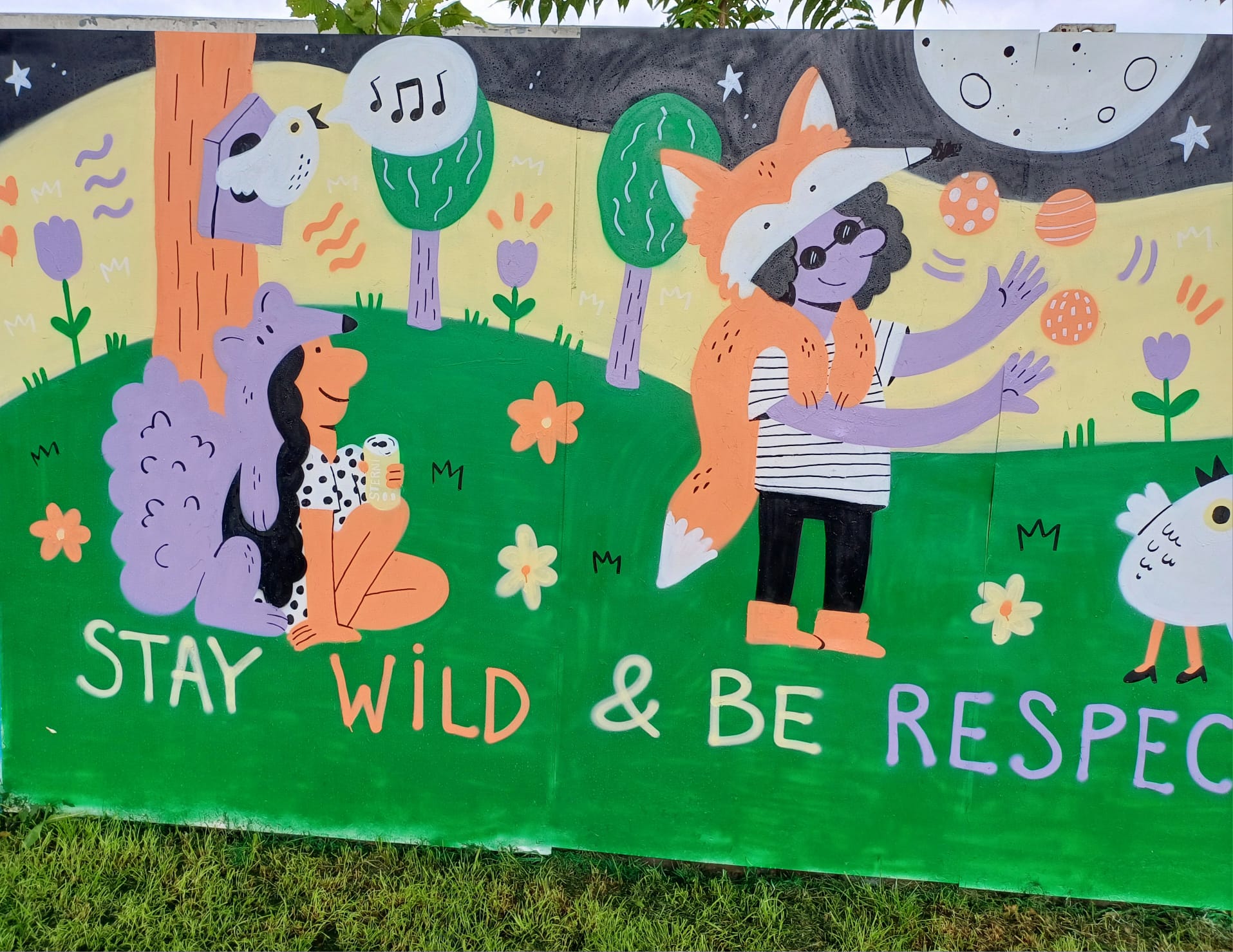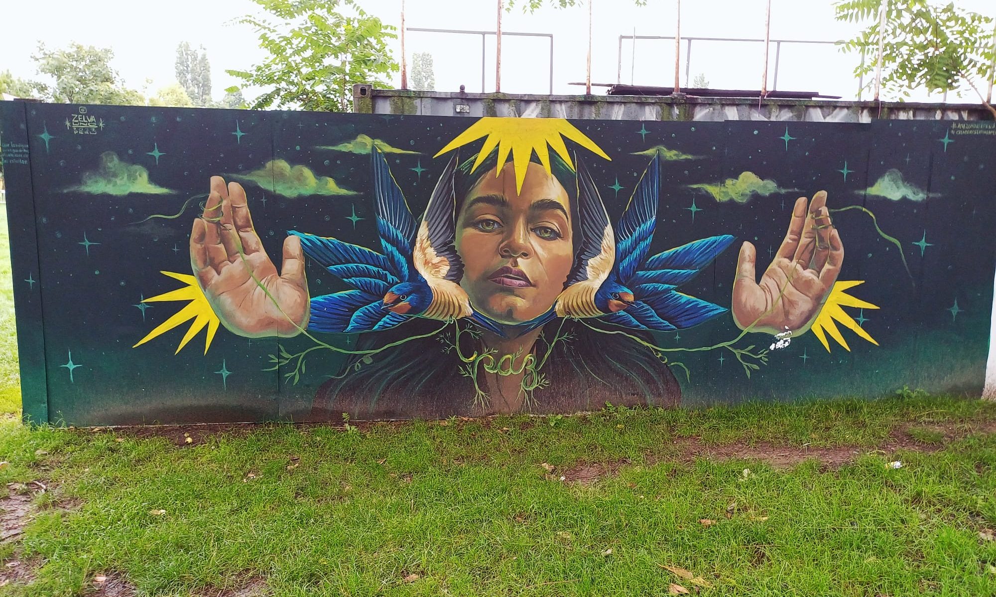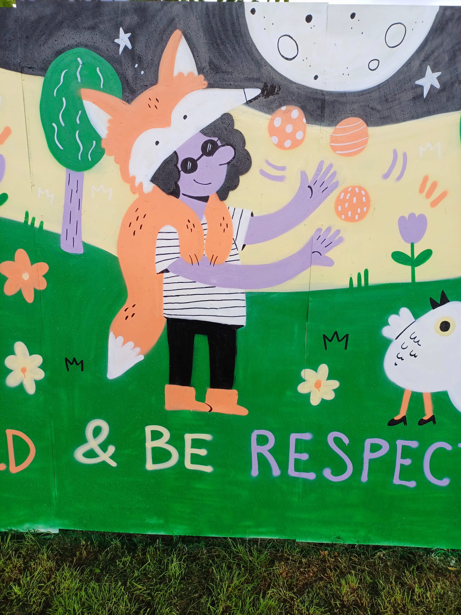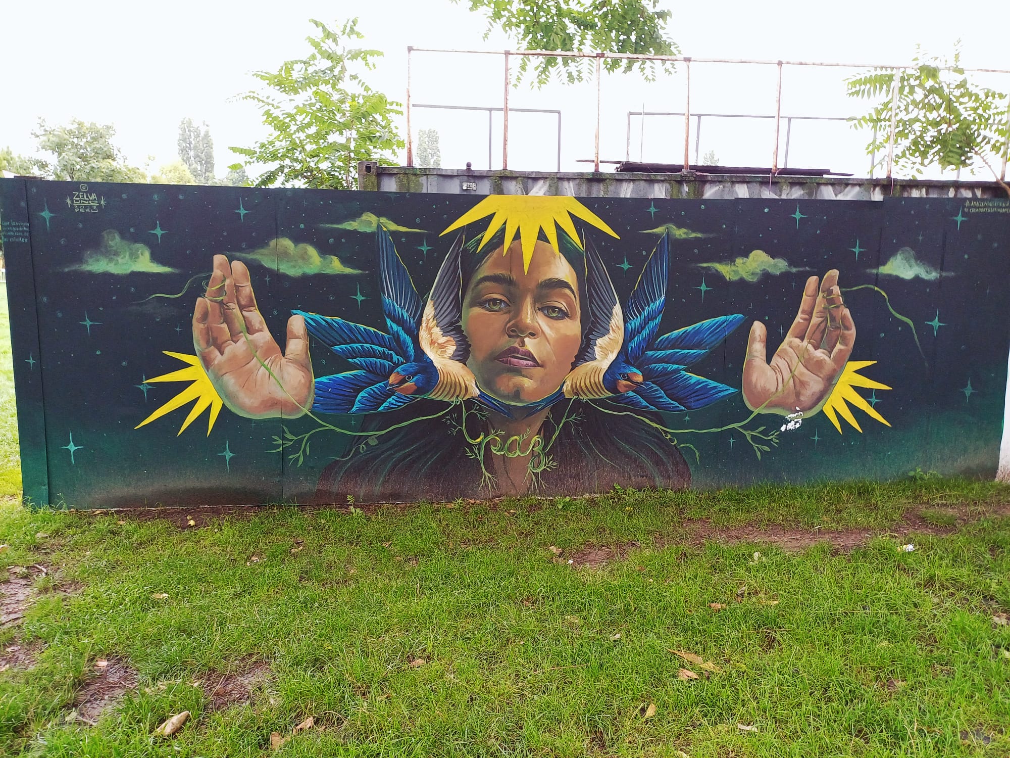 Close to Mauerpark, but still a little off the beaten track, there is a building that has been decorated with works of art for several years. However, these are curated and planned. PEN CHILL’s magnificent work stood on this wall for a long while, but iin 2025 it was time to put new works on the wall. A street art competition under the motto „For more Consideration and Awareness“ was organized by THINK SI³ and PANKOW PARKBETREUUNG with support and jury by GRÜNBERLIN, BEZIRKSAMT PANKOW, MAUERPARK and LIEBE ZUR KUNST. The winner was ALEAVE, followed by WANITAPAGIHARI. Both works were realized on the walls. Other artworks followed by MAEVE ROSE MCCARTHY, JOANNA WINOGRAD and ZELVA UNO.