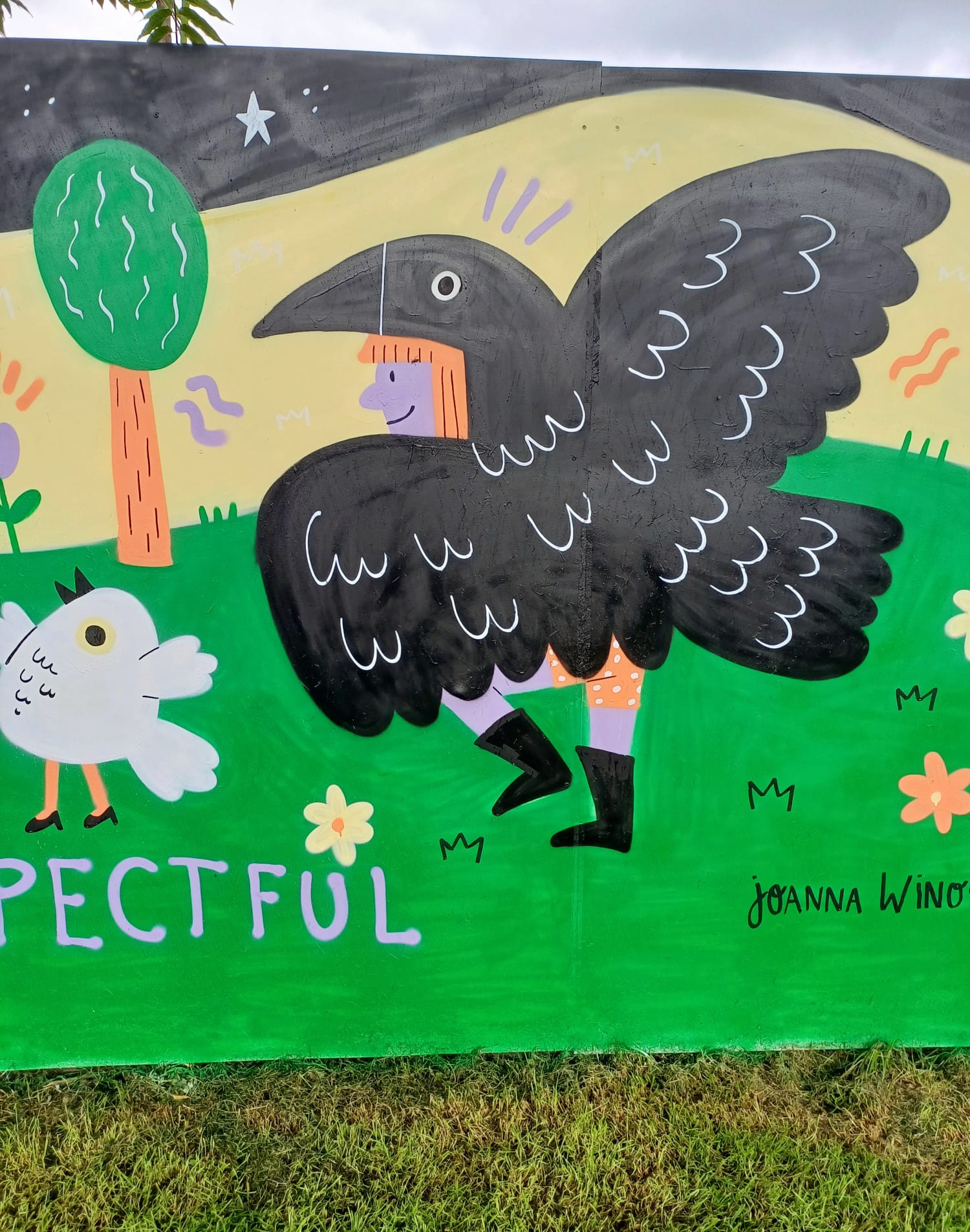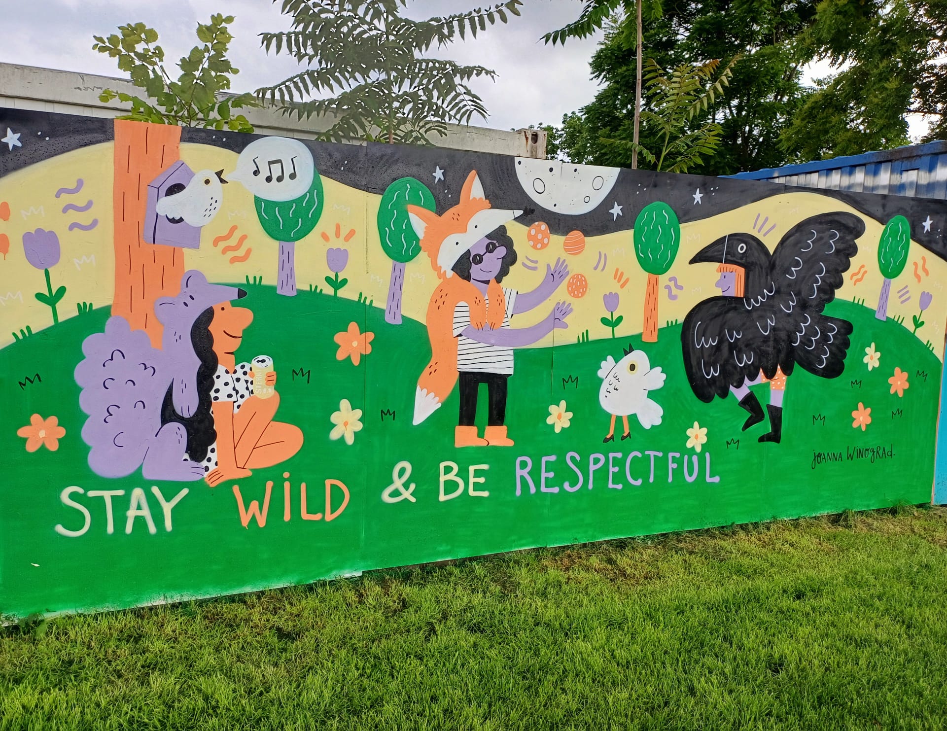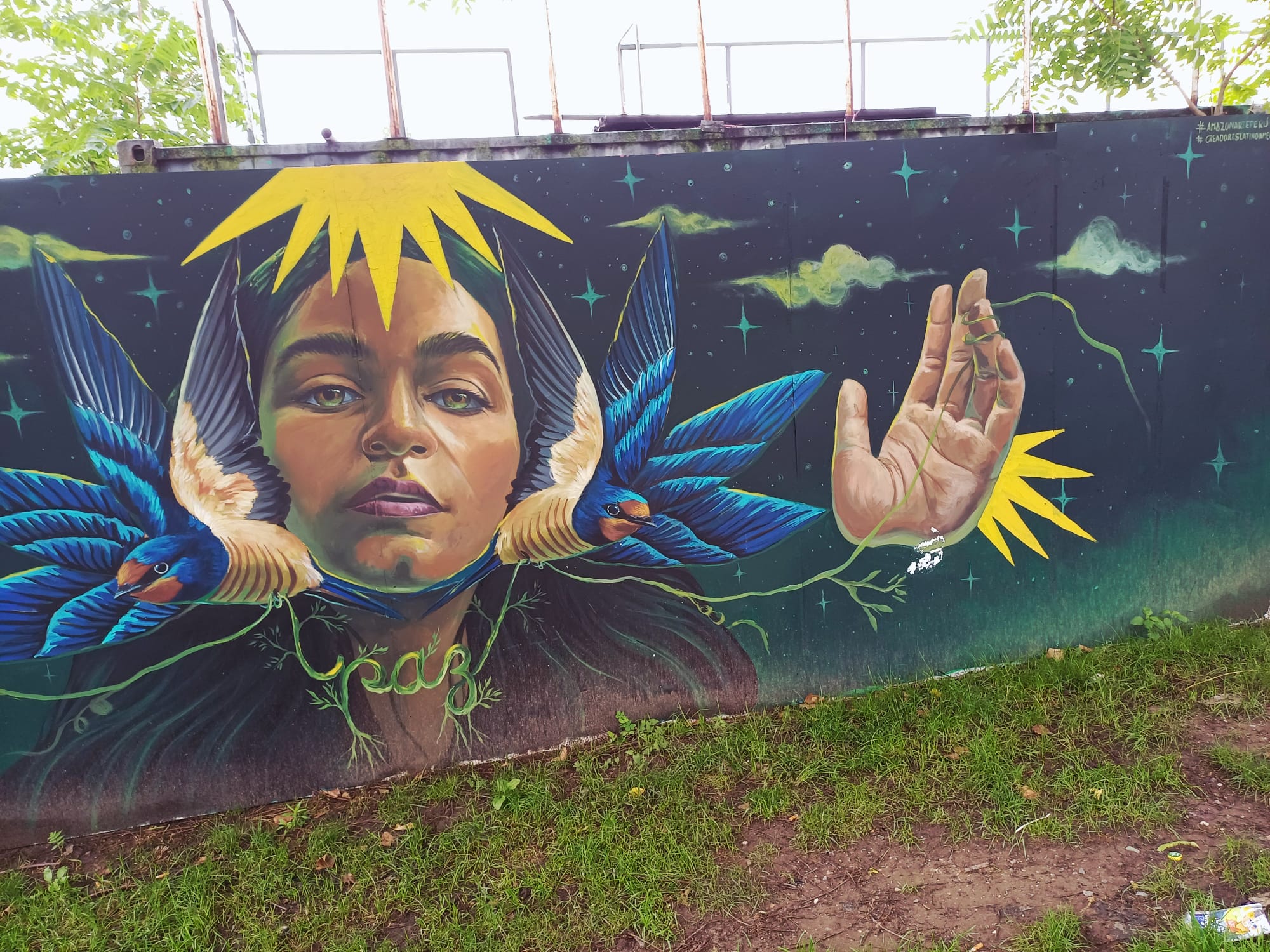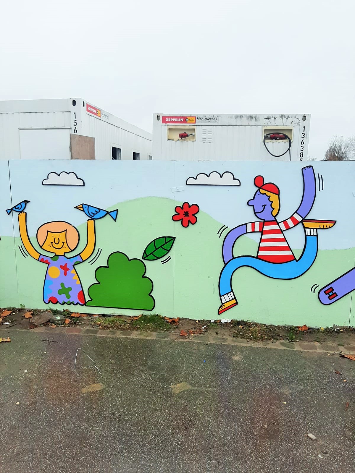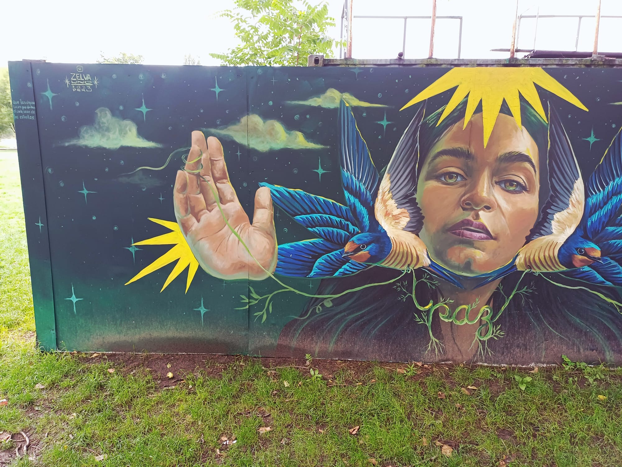 Close to Mauerpark, but still a little off the beaten track, there is a building that has been decorated with works of art for several years. However, these are curated and planned. PEN CHILL’s magnificent work stood on this wall for a long while, but iin 2025 it was time to put new works on the wall. A street art competition under the motto „For more Consideration and Awareness“ was organized by THINK SI³ and PANKOW PARKBETREUUNG with support and jury by GRÜNBERLIN, BEZIRKSAMT PANKOW, MAUERPARK and LIEBE ZUR KUNST. The winner was ALEAVE, followed by WANITAPAGIHARI. Both works were realized on the walls. Other artworks followed by MAEVE ROSE MCCARTHY, JOANNA WINOGRAD and ZELVA UNO.