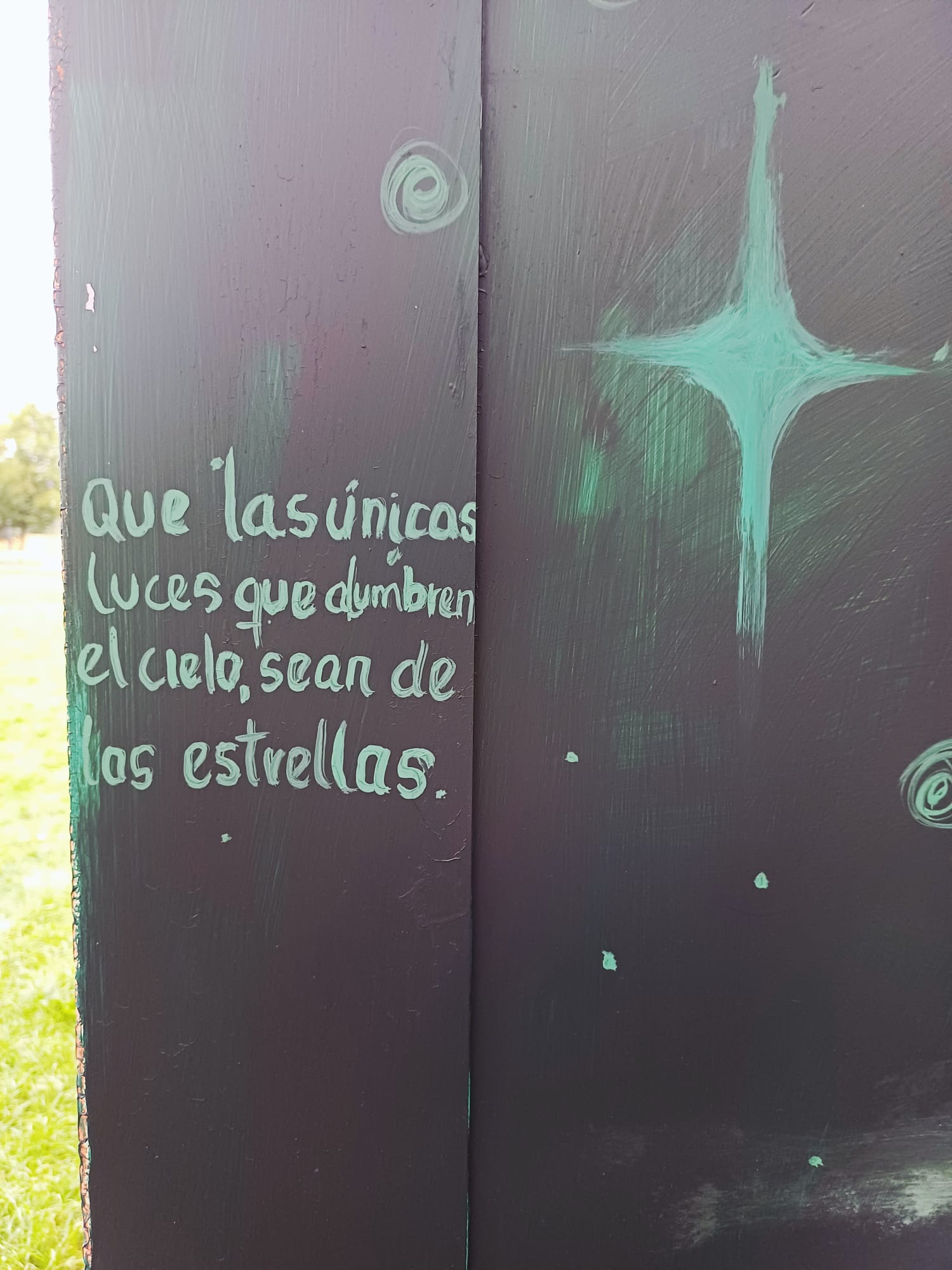 „Que las unicas luces que dumbren el cielo, sean de las estrellas.“ – „May the only lights that light up the sky be from the stars.“