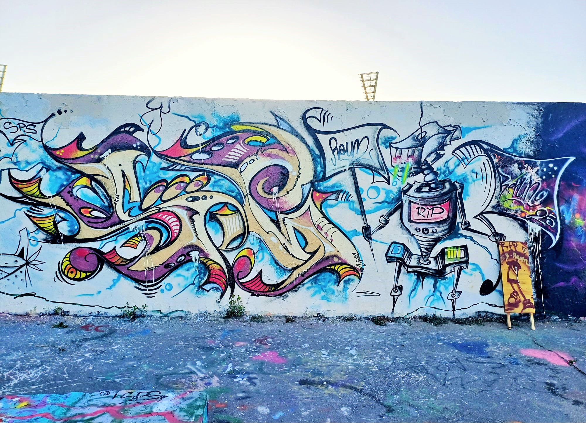 The artwork on the left and the sign were made by LOYD GOLD, in the middle is a small character from LE CAGE