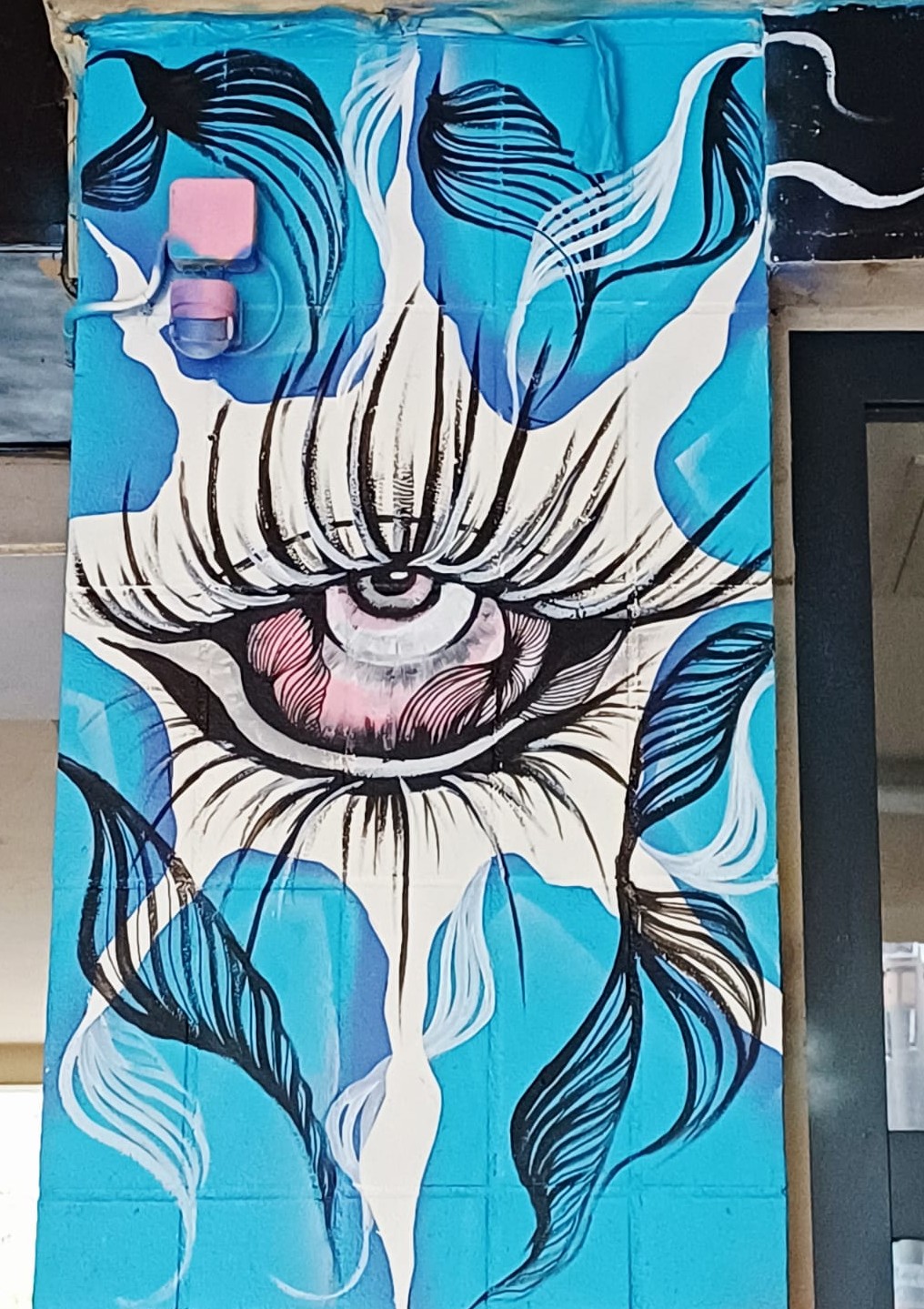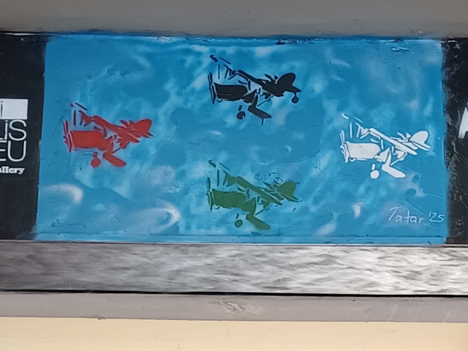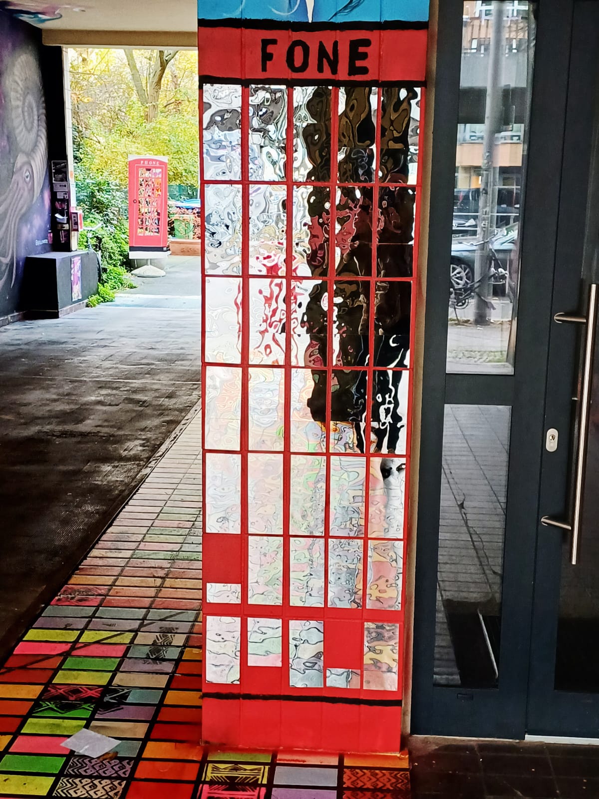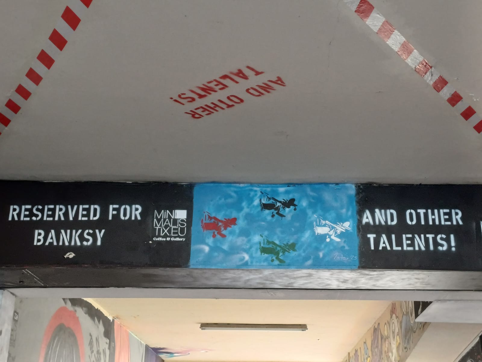 On the left is the MINIMALISTIX GALLERY with small painted artworks around the entrance from JPS and a sculptur from CENGIZ TATAR. The huge murals above are made by DEIH XLF and DAVID DE LA MANO.