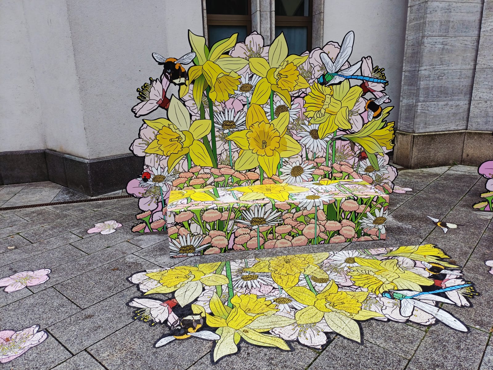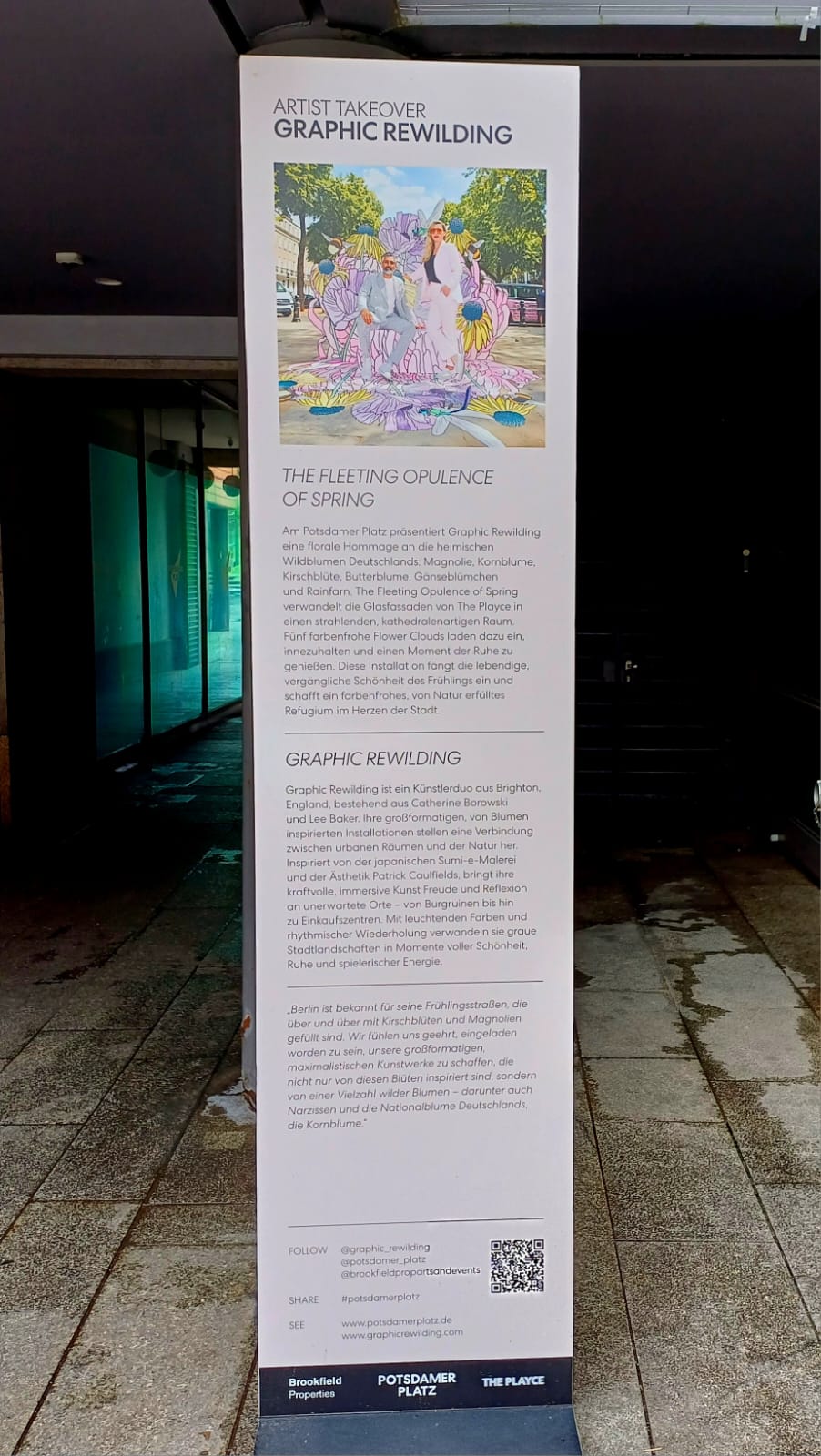 GRAPHIC REWILDING: „Berlin is renowned for its spring streets, which are covered with cherry blossoms and magnolias. We are honored to have been invited to create our large-scale, maximalist artworks, which are inspired not only by these blossoms, but also by a variety of wildflowers, including daffodils and Germany’s national flower, the cornflower.“