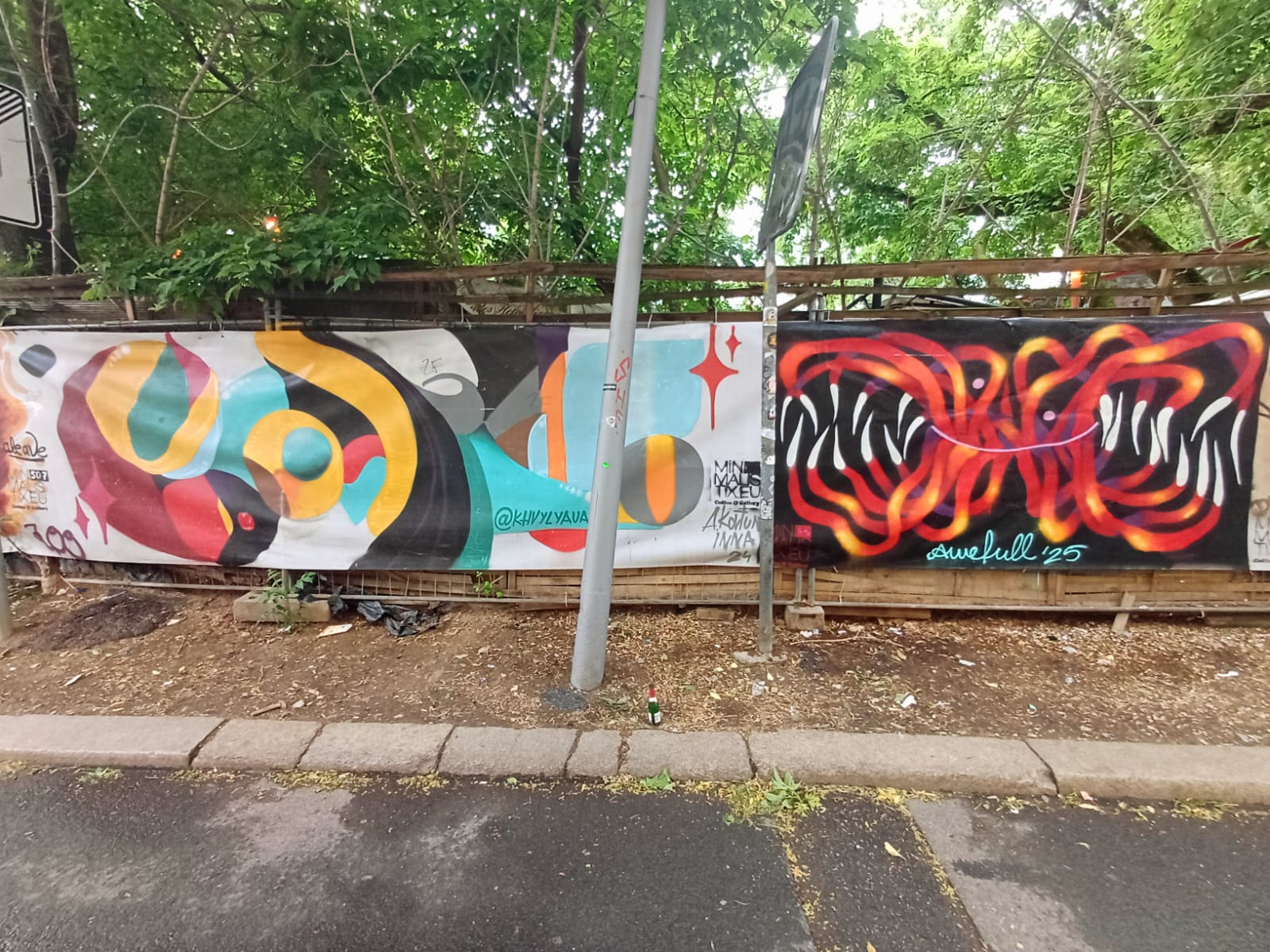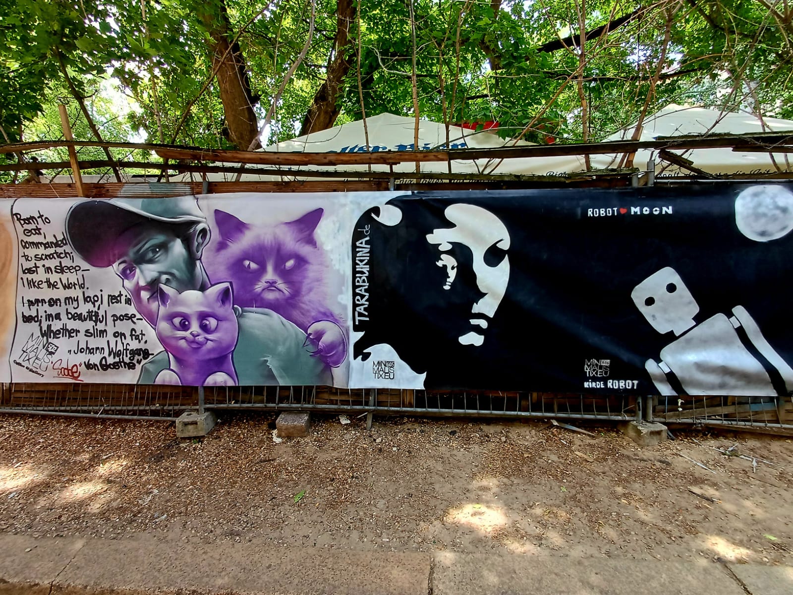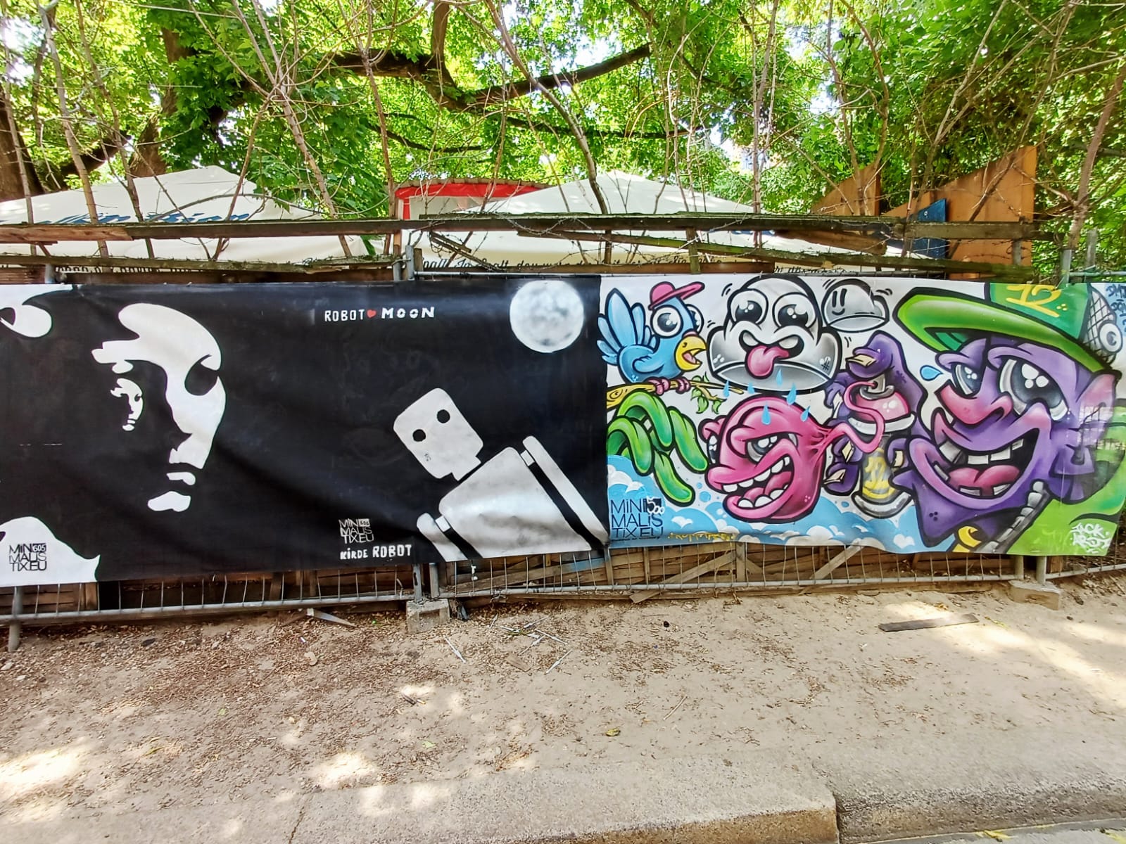 Those artworks were created on the fence around the beer garden and street food place REPUBLIK BERLIN by several artists. The spray project was organized by the MINIMALISTIX GALLERY.