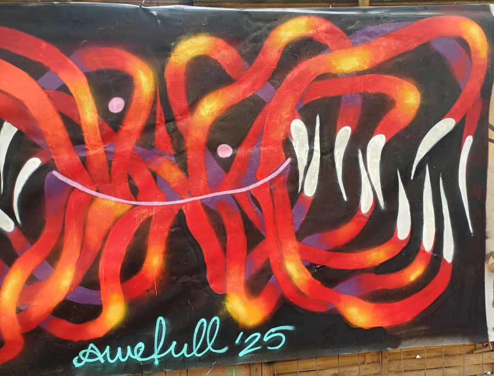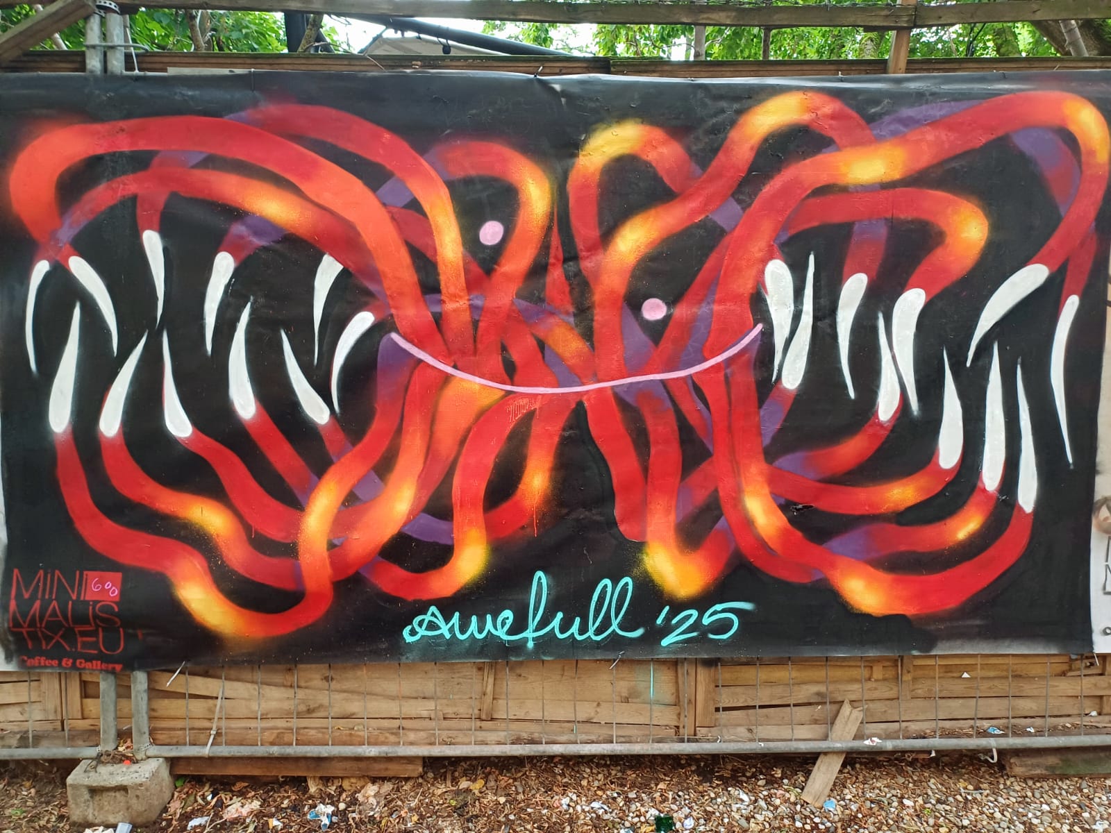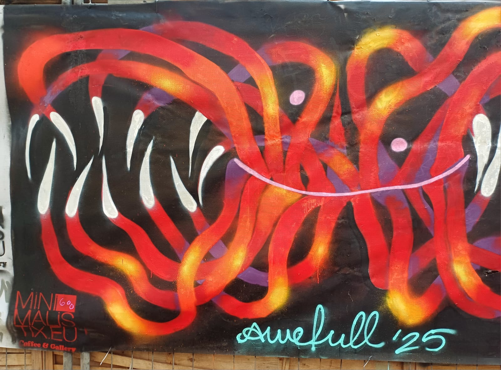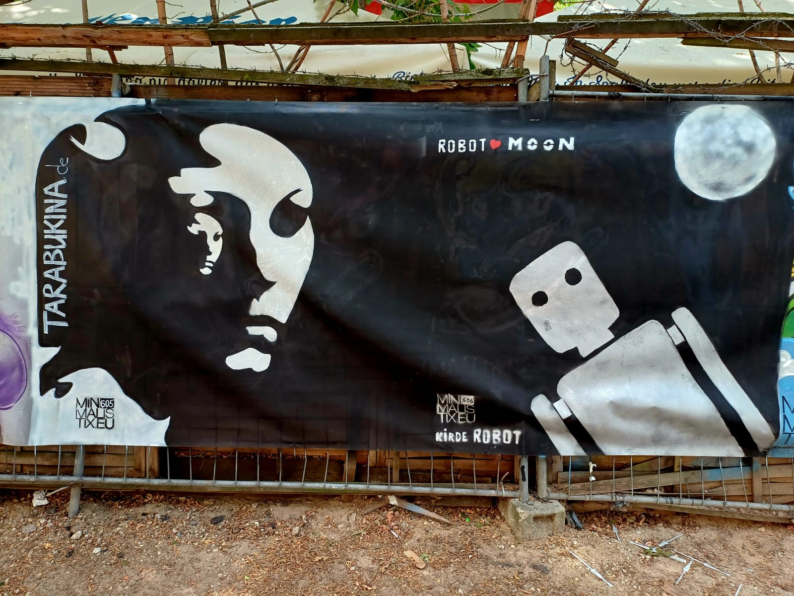Those artworks were created on the fence around the beer garden and street food place REPUBLIK BERLIN by several artists. The spray project was organized by the MINIMALISTIX GALLERY.