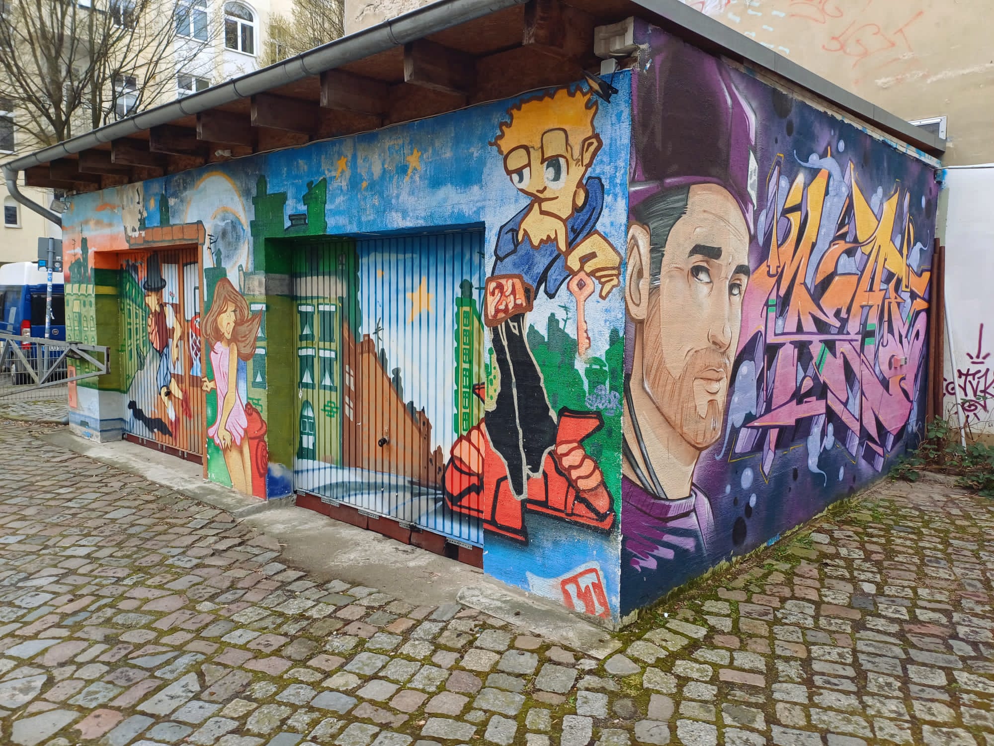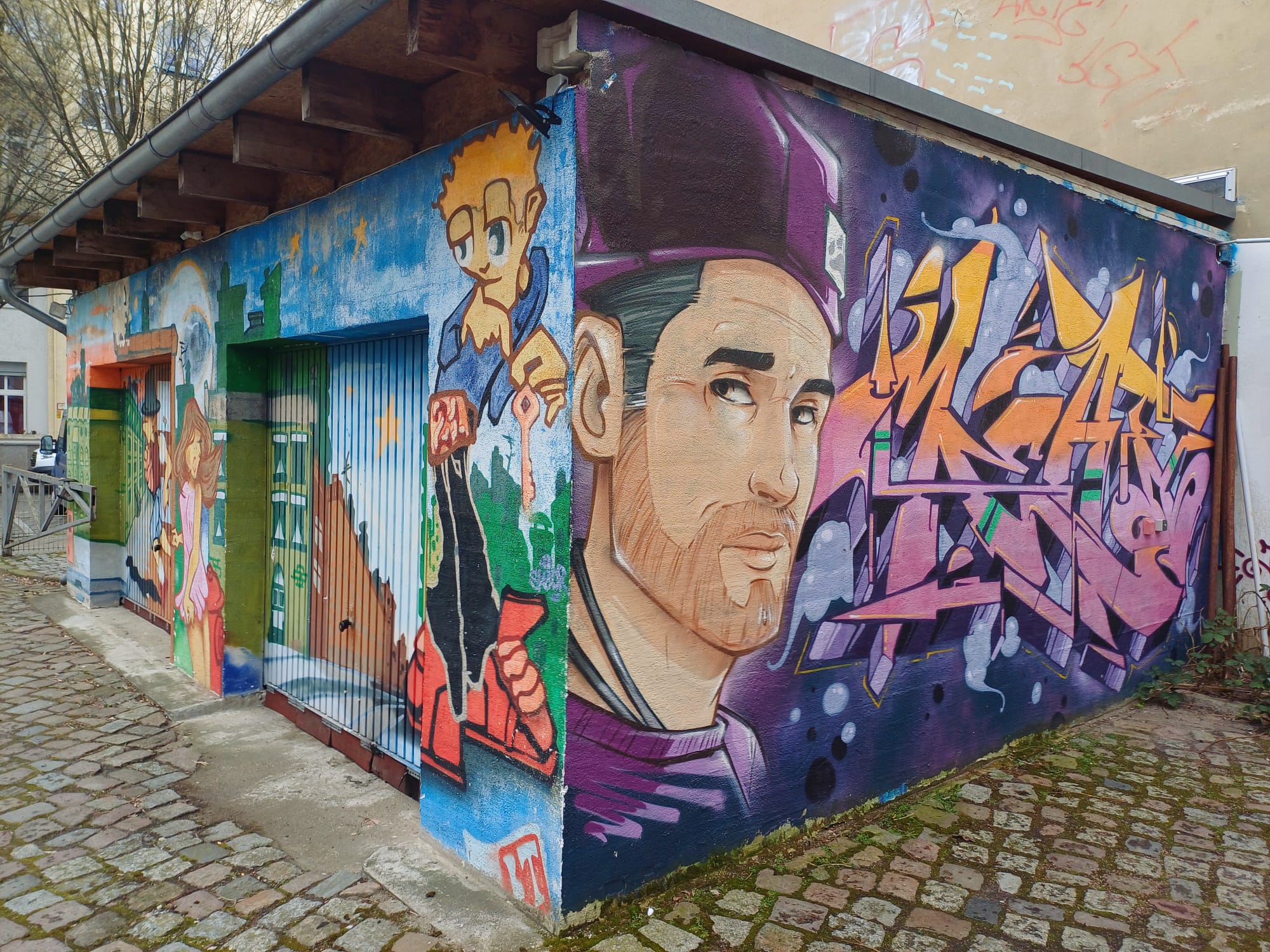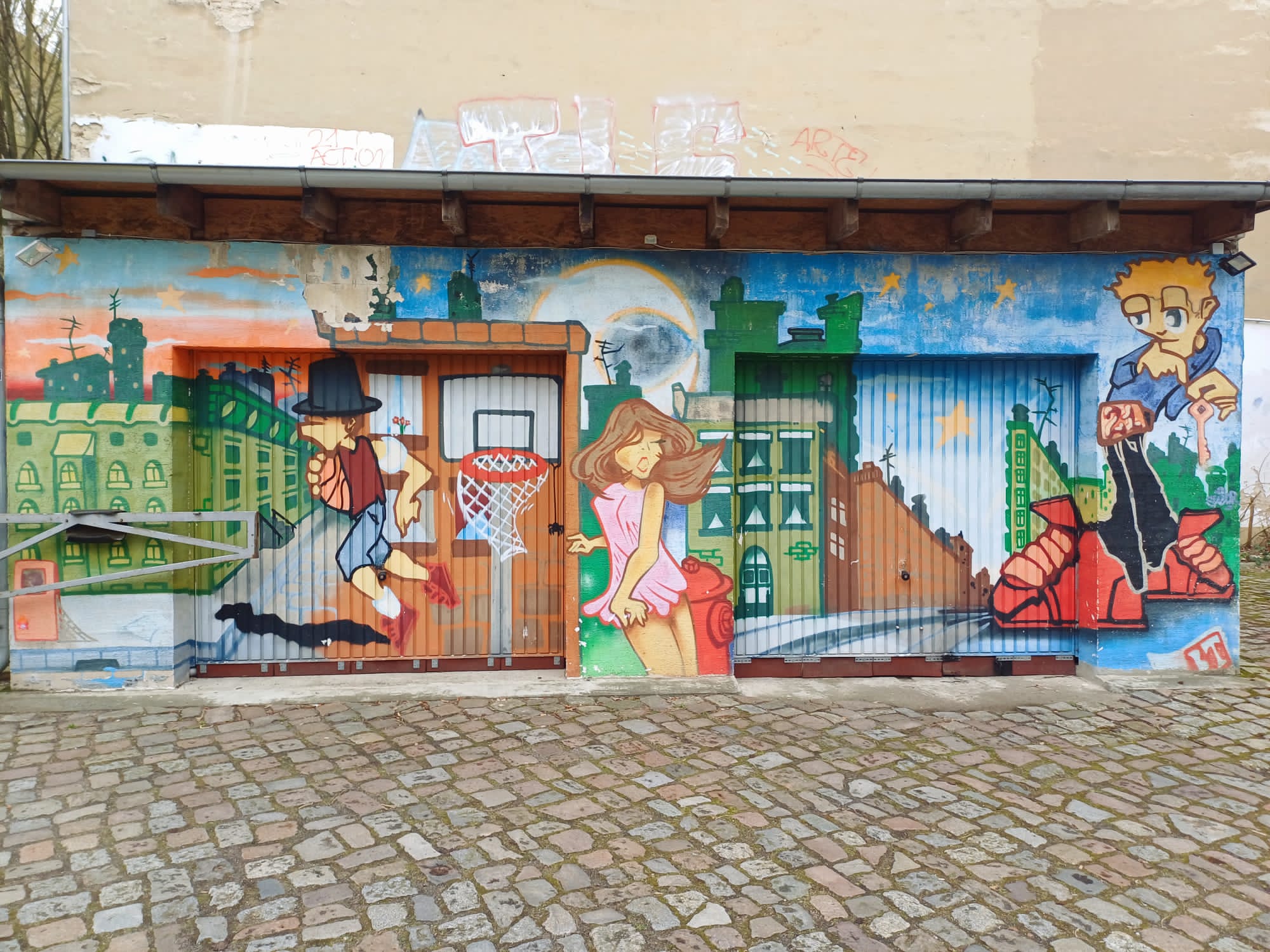 On the main building you can find these artworks made by CLAUS ERNST. Around the property are several more urban artworks along the building.