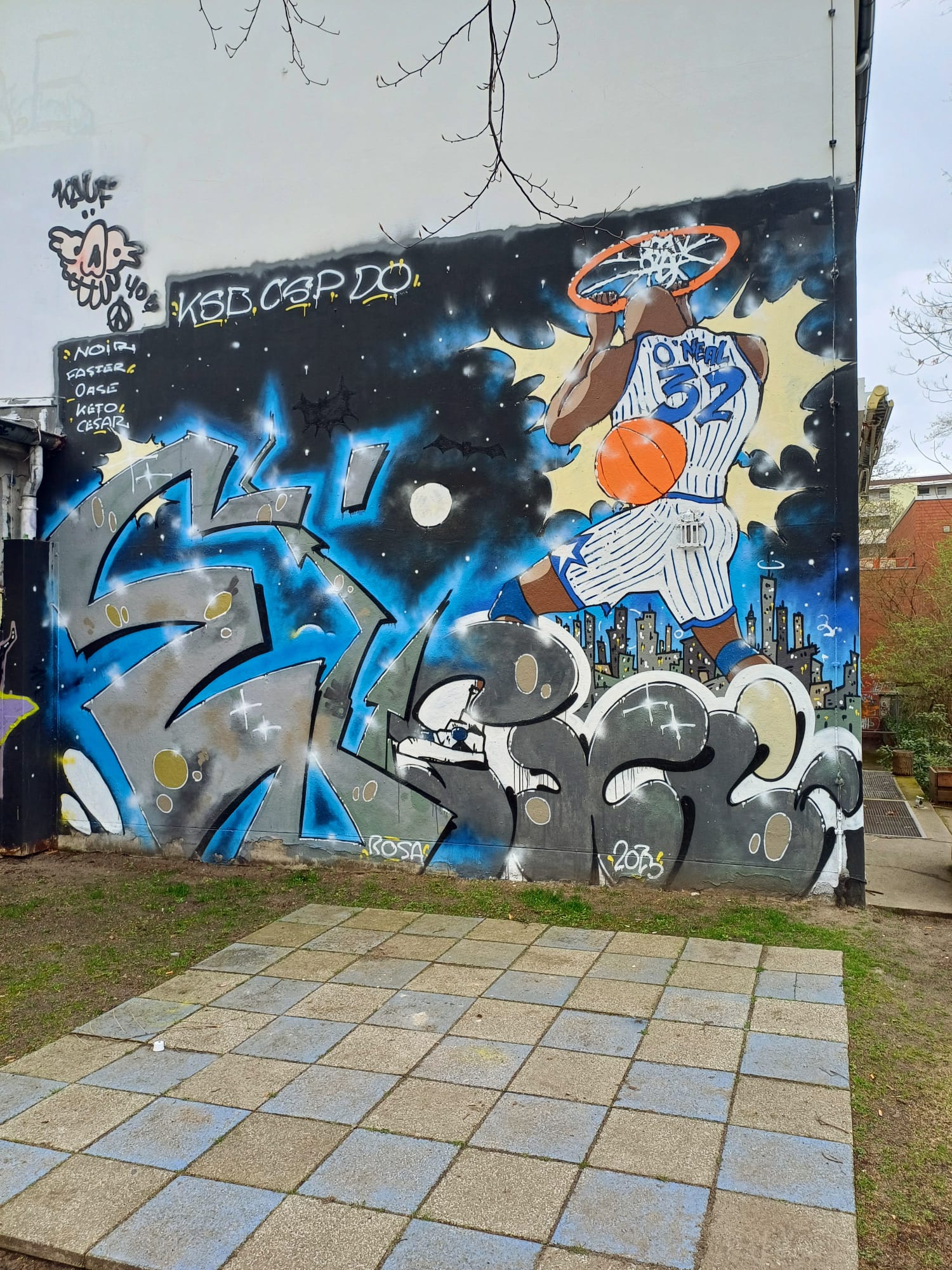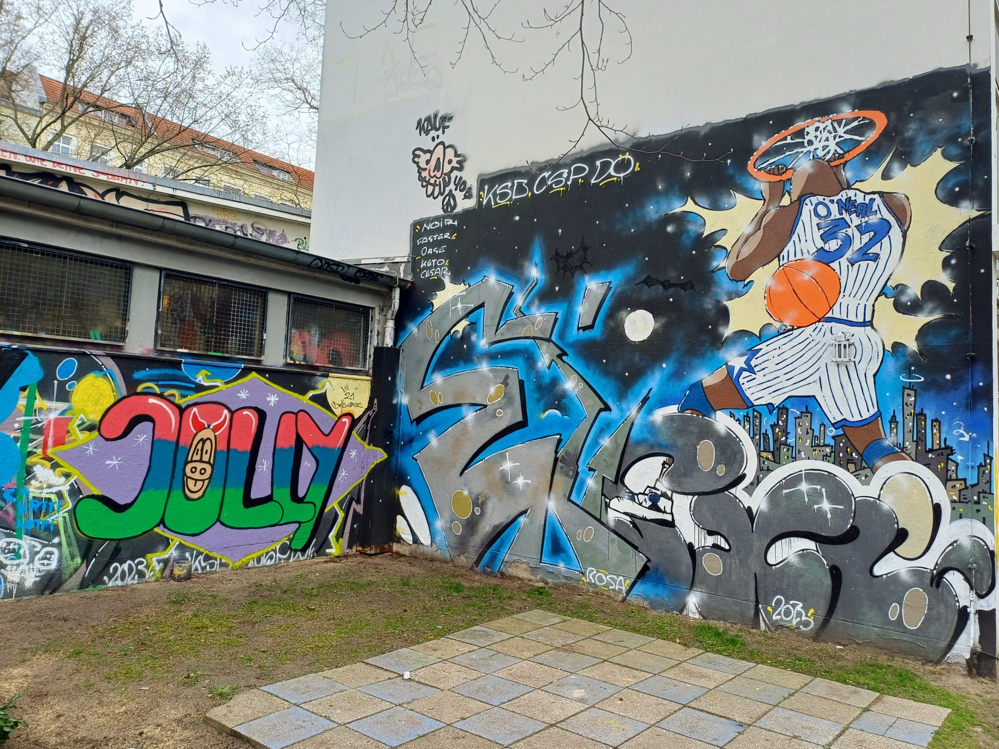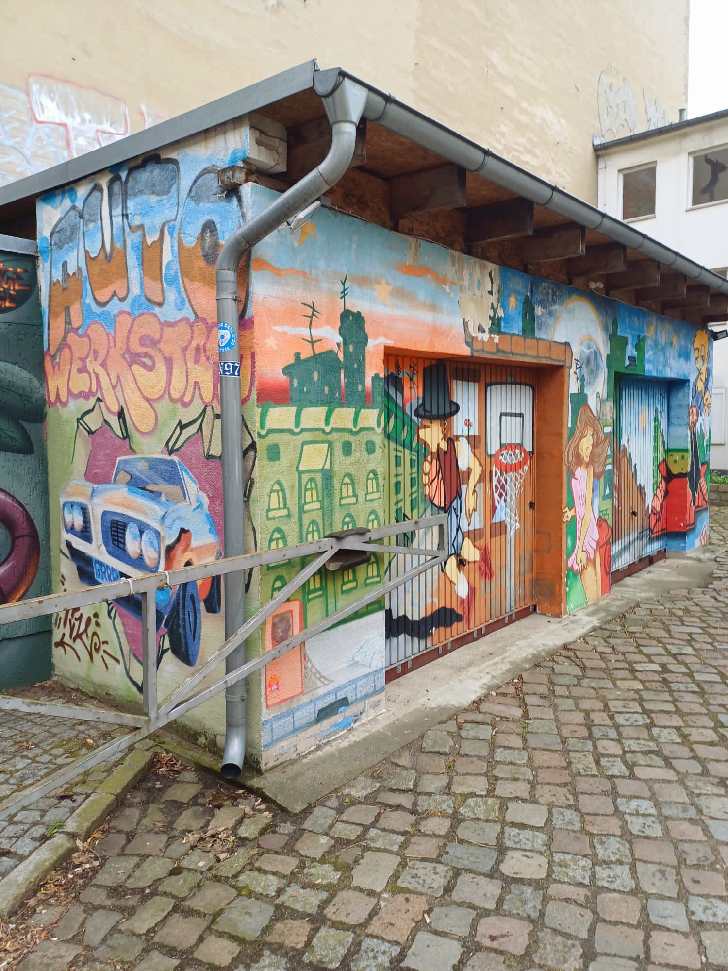 On the main building you can find these artworks made by CLAUS ERNST. Around the property are several more urban artworks along the building.