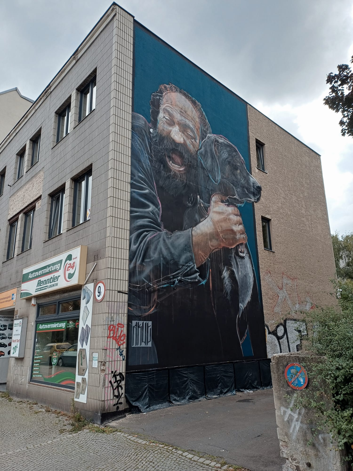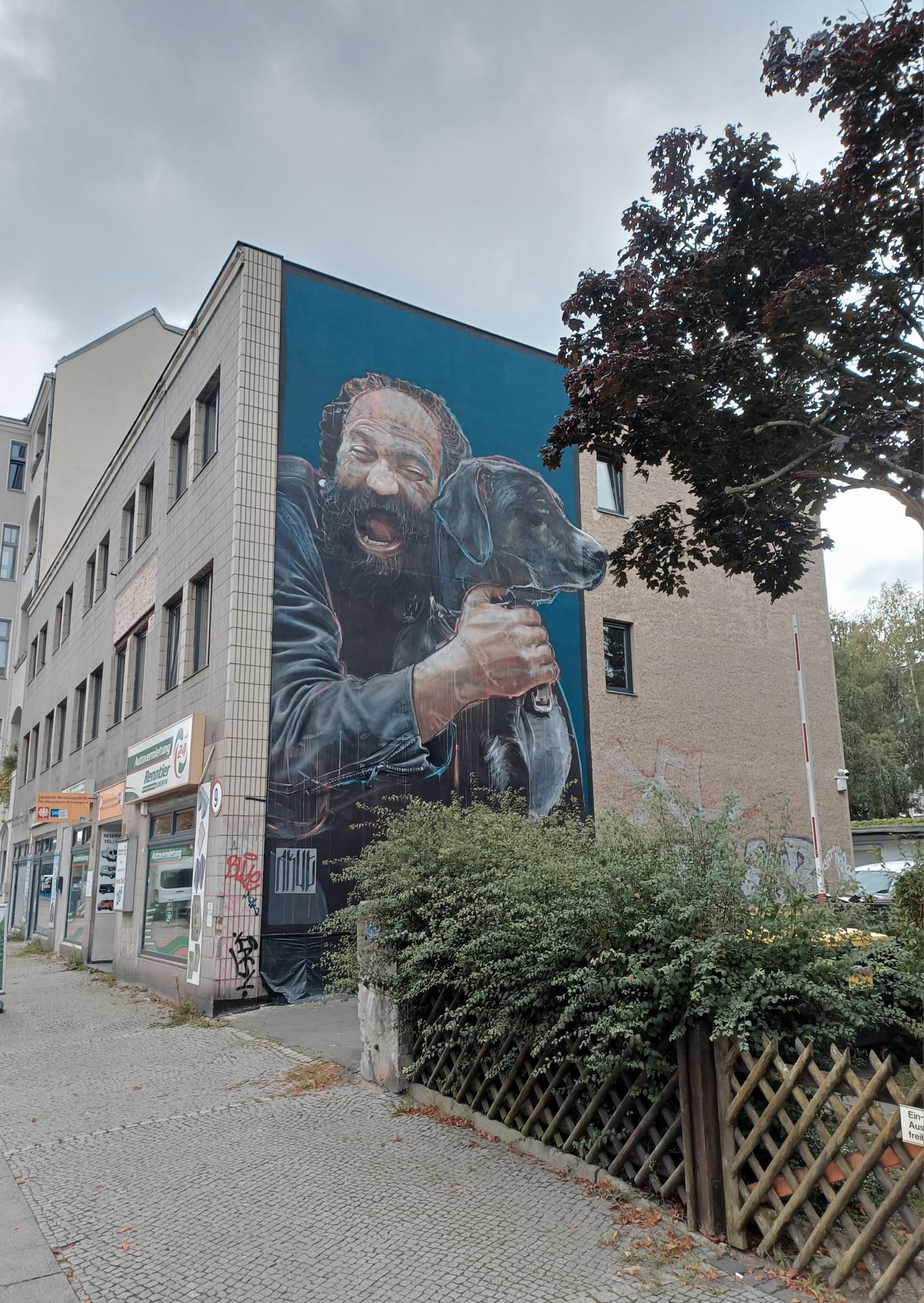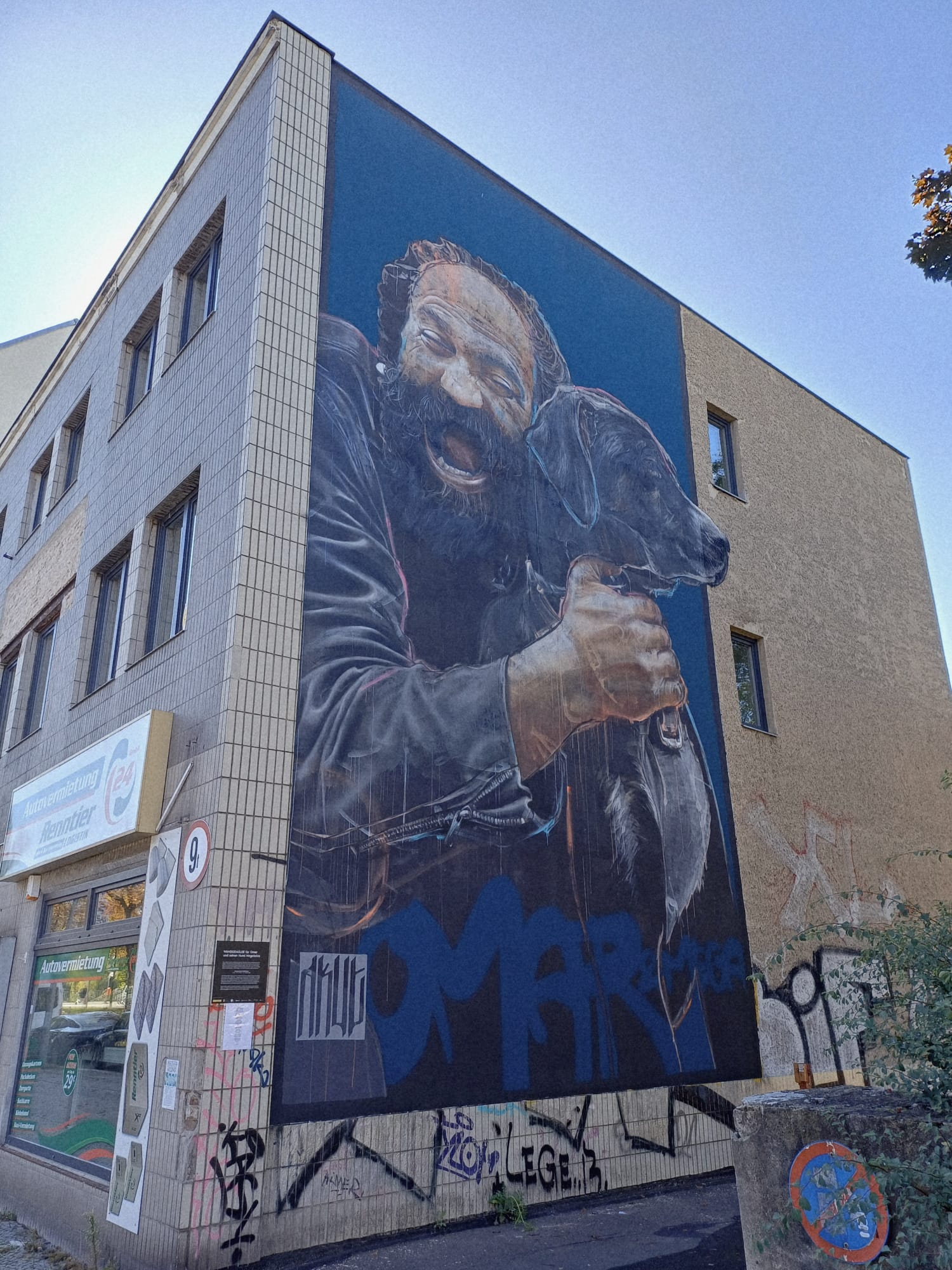 English: Berlin is cold and rainy, a day that is awful for you. The night will be hard and endless, with your dogs and alone. You accept it, you drink yourself away, the world of dreams, a beautiful place. One more beer and you’ll be fine when you rest on the hard slab. You can’t live in a small space, you’ve only traveled your whole life. You need freedom and nothingness, you feel so light and truly rich, you arrive and leave and then move on, always smiling, bottle raised, you beam at us, despite all the hardship. Even when you drink, which is harmful, you are always an optimist. You collect bottles to live and are willing to give them away. You gratefully accept every donation, never complain or whine, a real man. Assisted living comes too late. For you, who lives without an anchor. The world is hard and unfair, but you, Omar, are always genuine. Today you left, fast as the wind, Berlin lost a child of the scene, a child of the scene is no more, floated away, blown away, his place remains empty. But your dogs are not alone, they will be on the Wuhle so that you can travel happily in the land of dreams, the most beautiful places, for the living the gate is too. We are close to you in our thoughts, you are not forgotten, not buried, we have much to remember, by the bright light of the campfire, you will always be with us.