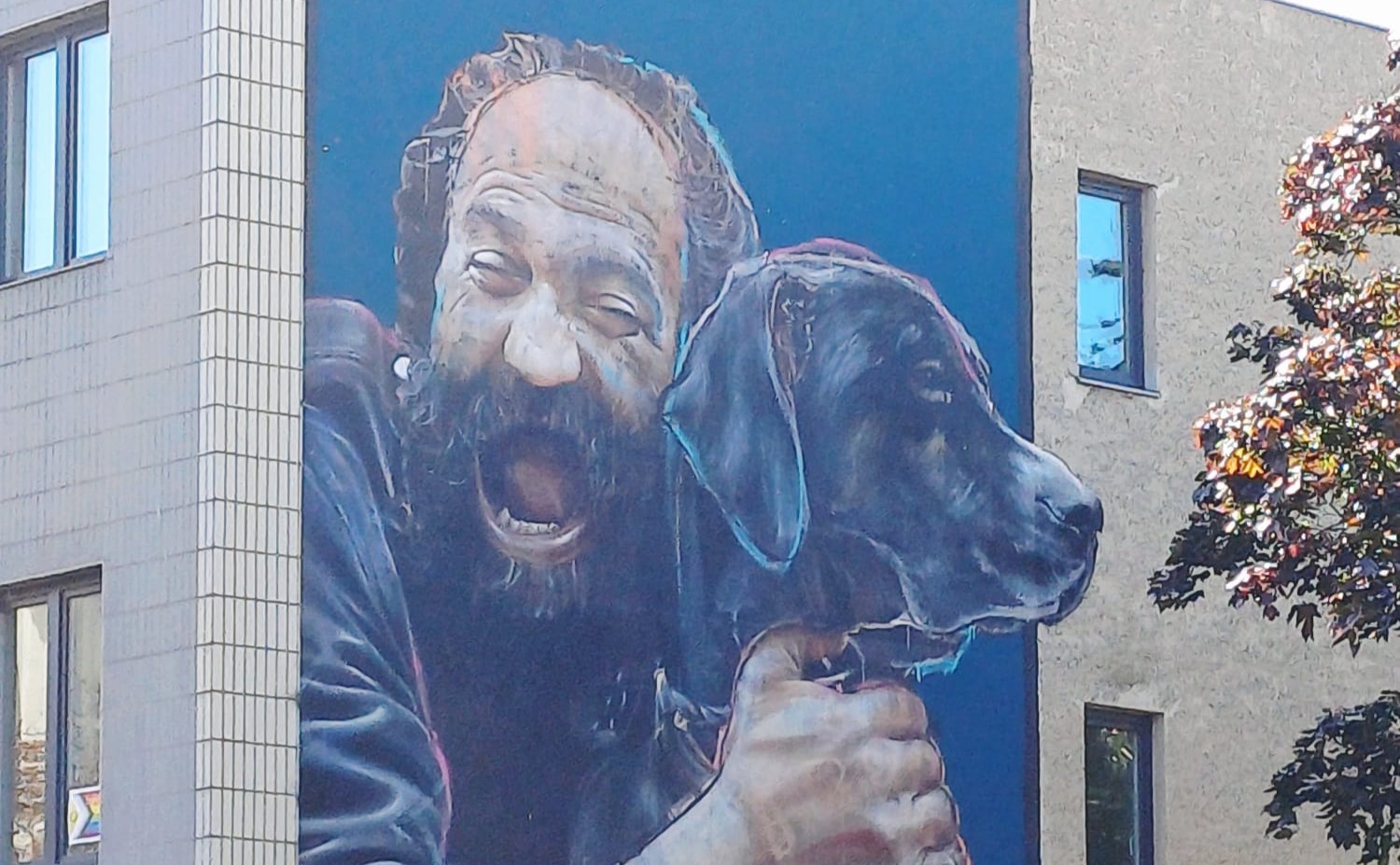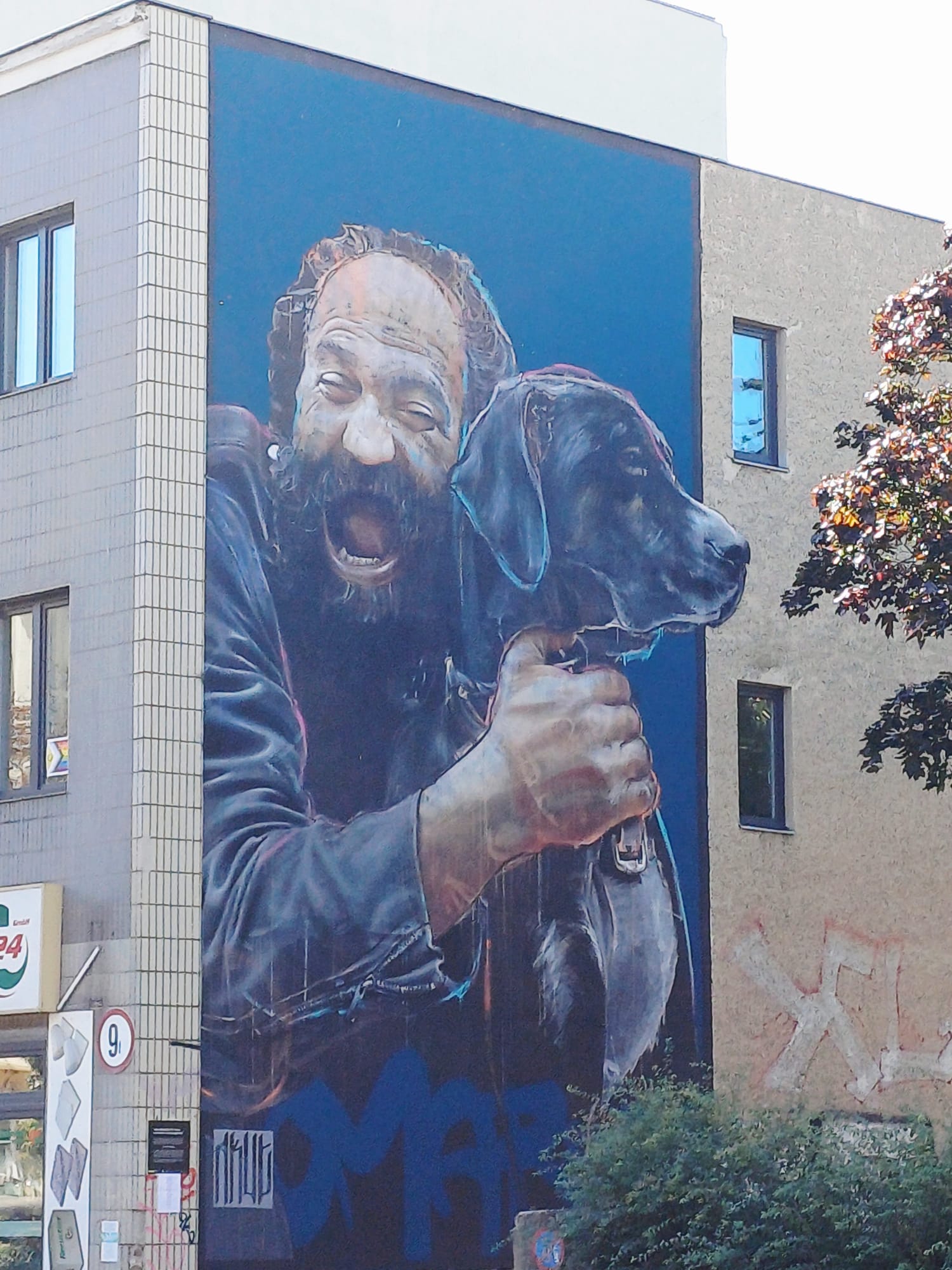 The mural is based on a photograph by DEBORA RUPPERT from her social documentary series “Kein Raum – Begegnungen mit Menschen ohne Obdach”, which means in English „No Room – Encounters with homeless people“. Using this photograph as a basis, urban contemporary artist AKUT developed the artistic mural, which was realized in collaboration with the Central Counseling Center for People in Need of Housing. The counseling center in the building is the first point of contact for anyone seeking information and support regarding their precarious housing situation. The artwork aims to draw attention to people who are on the margins of society and are often overlooked. It highlights the difficult situation of homeless people and makes their dignity visible.