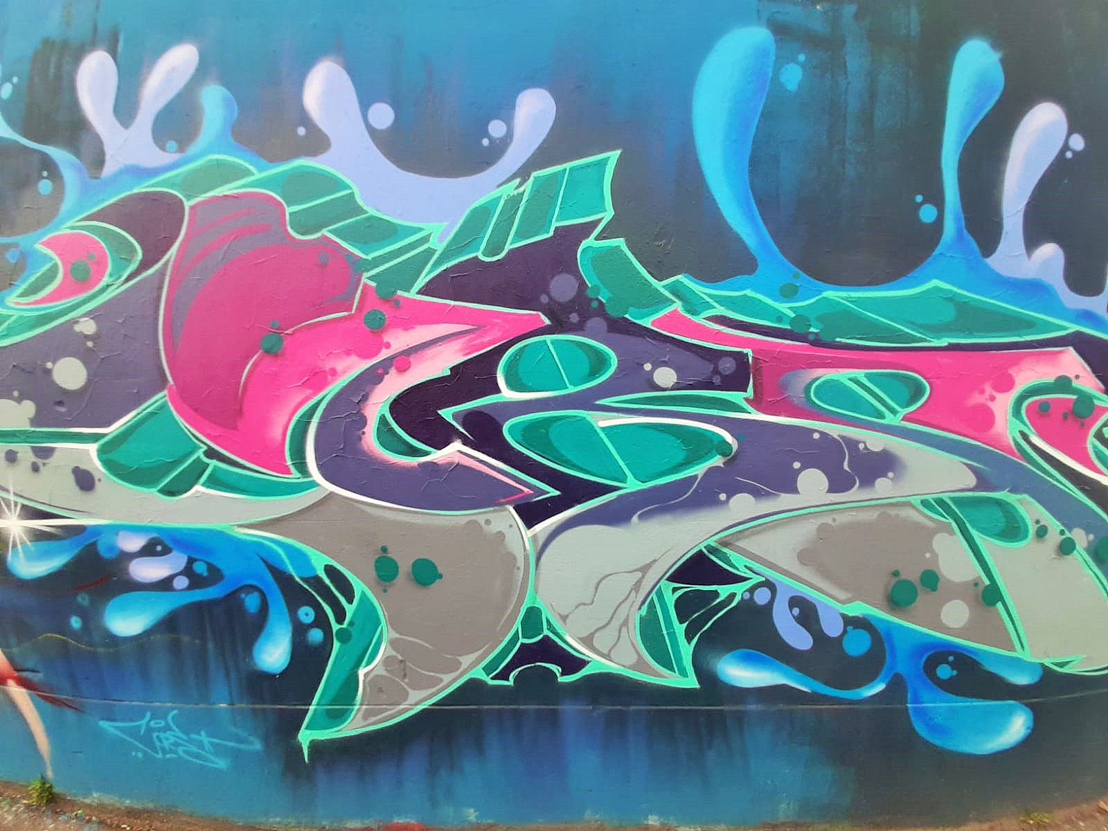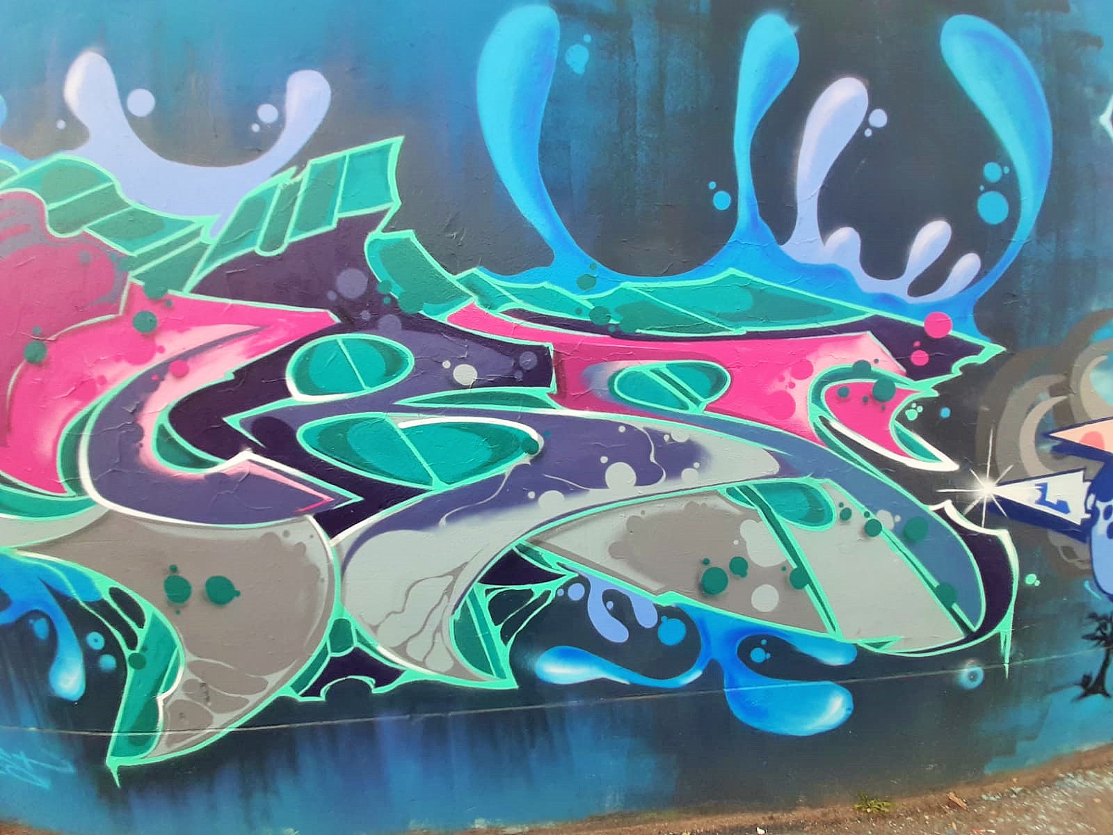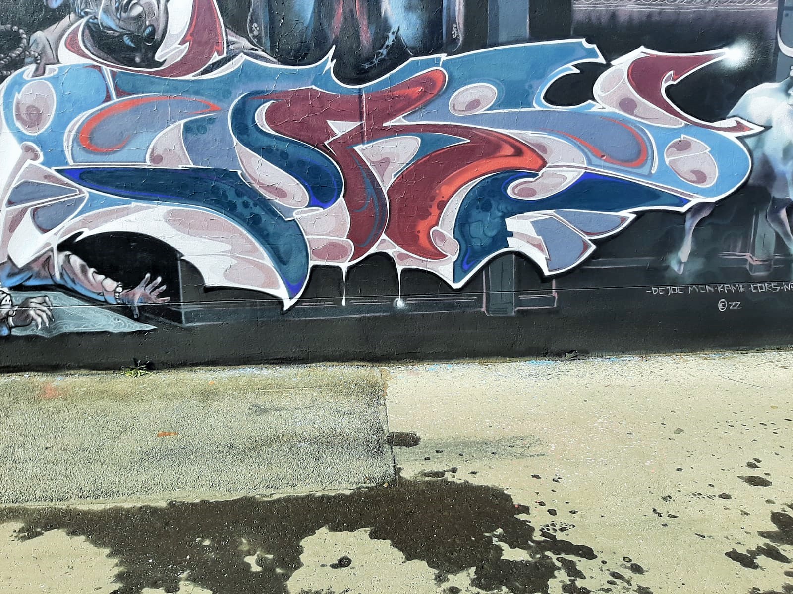 This fantastic wall was made by the great crew NEW 3RD EYE MOVEMENT or in short N3M. The artworks from left to right were made by MON, DEJOE, CORS ONE and SYMER.