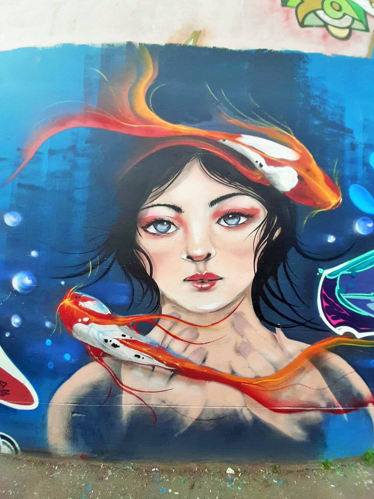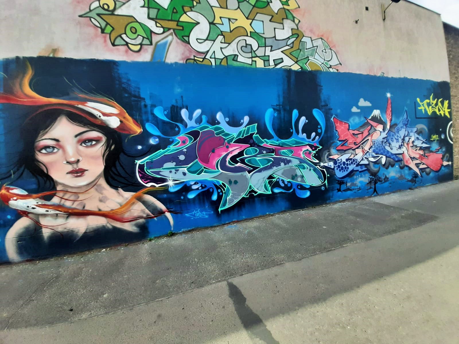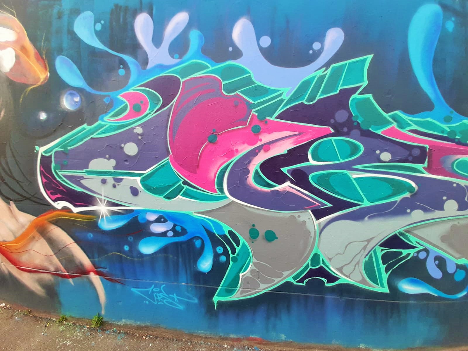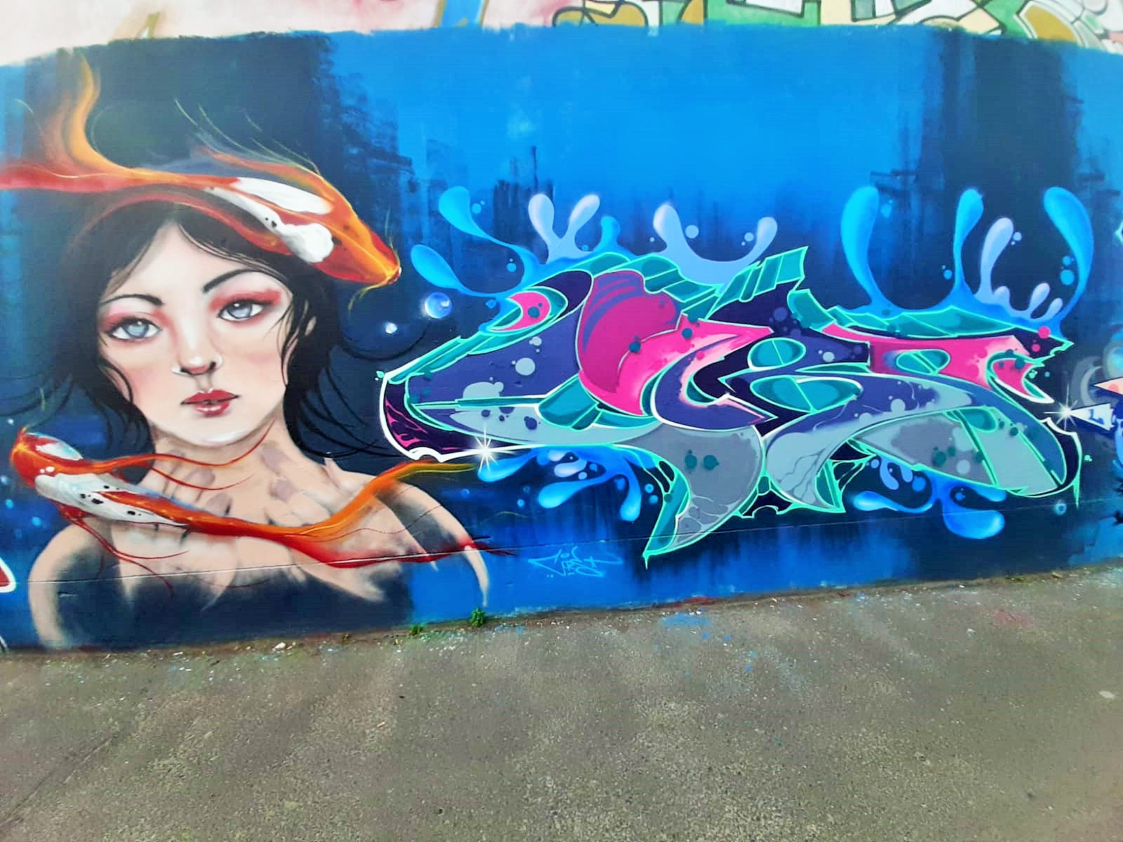 This fantastic wall was made by the great crew NEW 3RD EYE MOVEMENT or in short N3M. The artworks from left to right were made by MON, DEJOE, CORS ONE and SYMER.