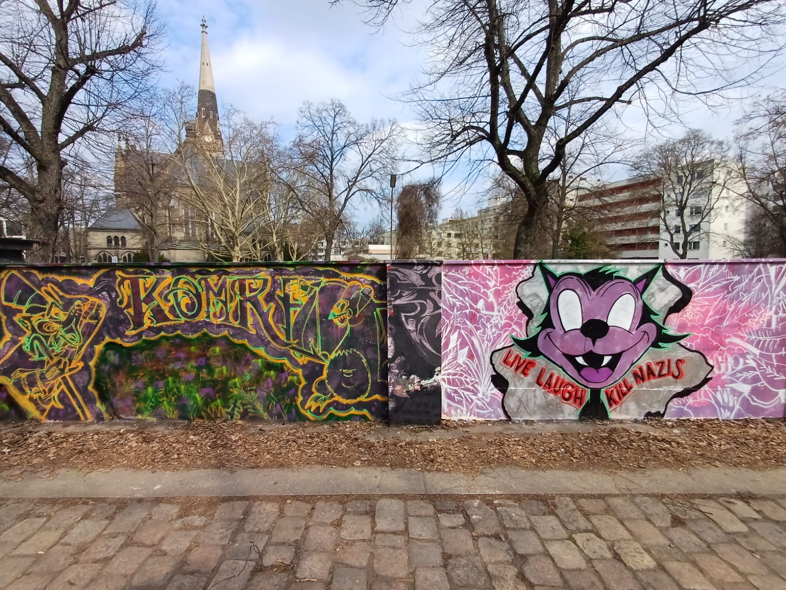 North Side Gallery – East Part: https://vagabundler.com/germany/streetart-map-berlin/north-side-gallery-east