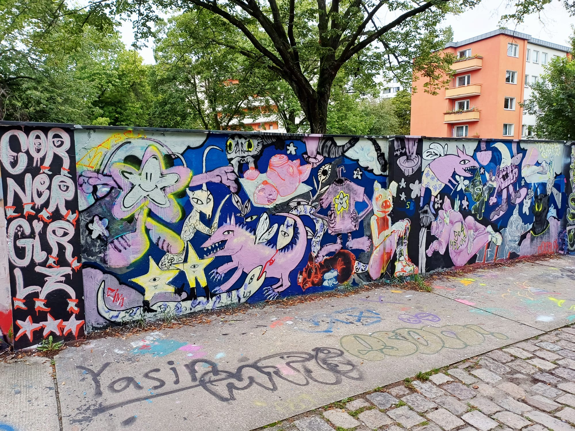 North Side Gallery – East Part: https://vagabundler.com/germany/streetart-map-berlin/north-side-gallery-east