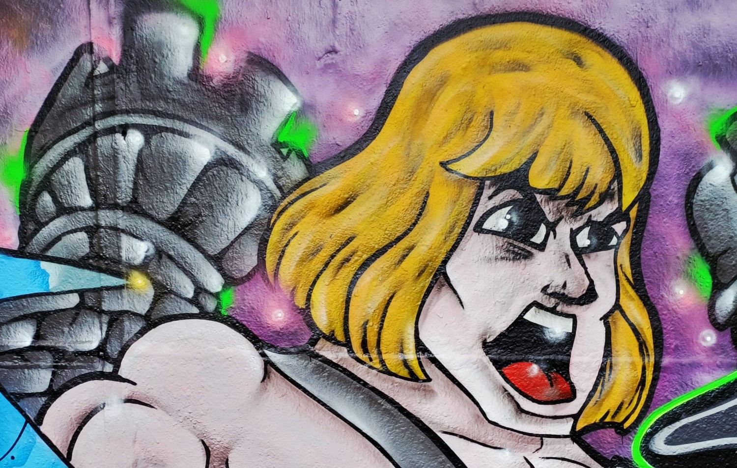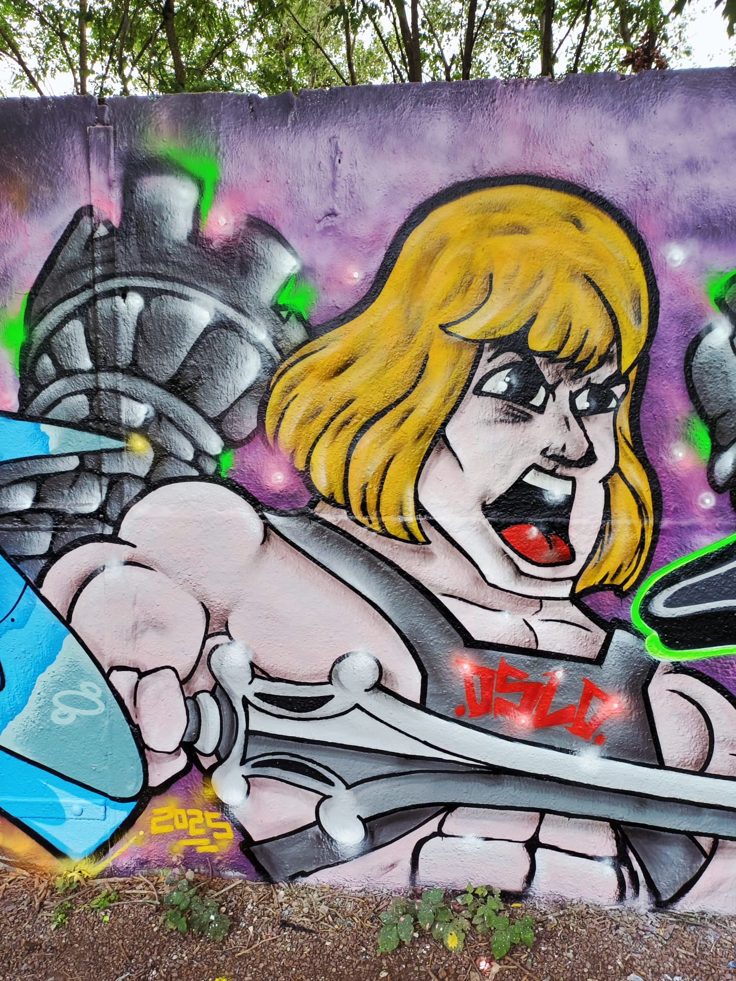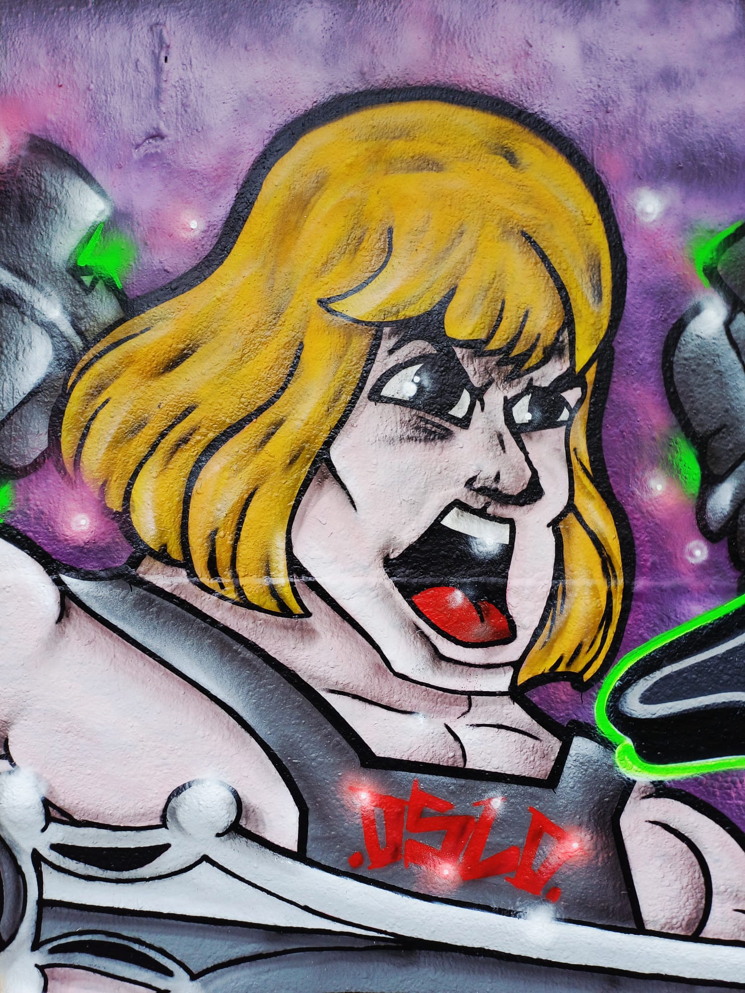 This He-Man is part of a great wall made for OSLO’s birthday. The artworks from left to right were made by FEIK, AMPER, OSLO, SHERA, LEFT, ESTO, ACKO and HOOMS
