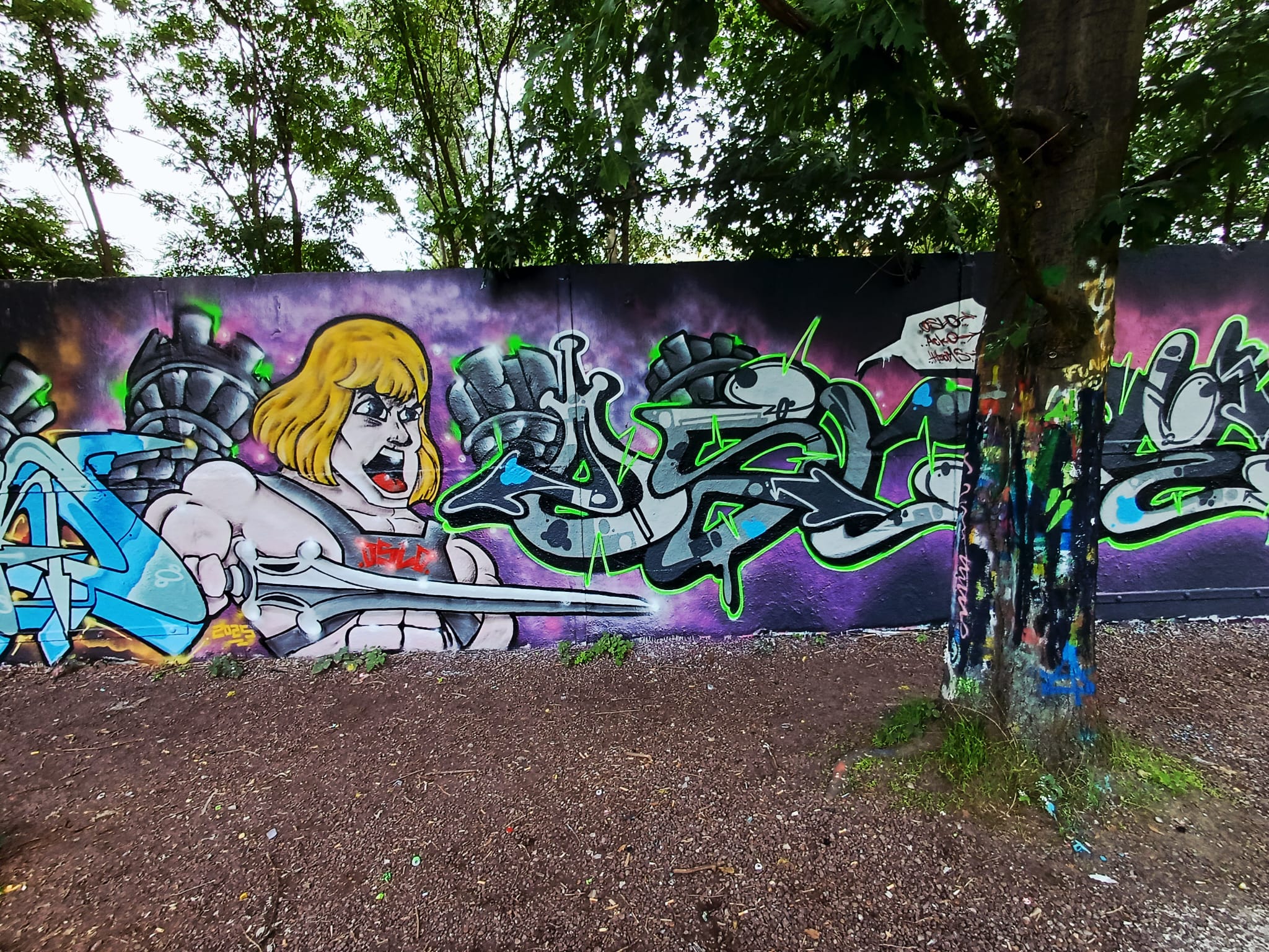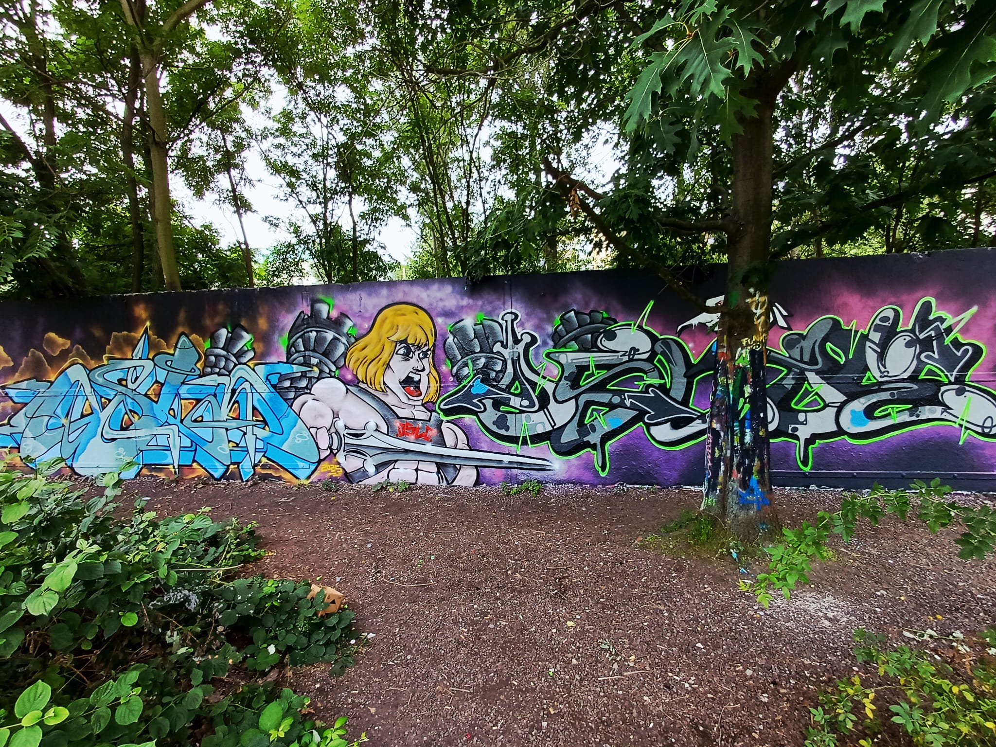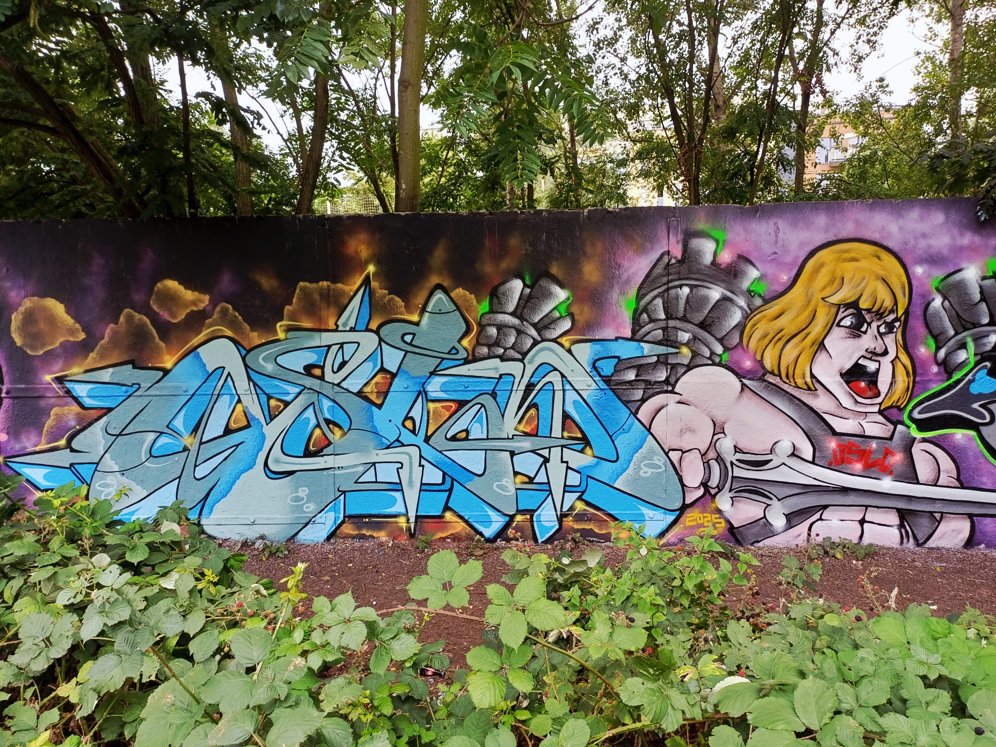 This He-Man is part of a great wall made for OSLO’s birthday. The artworks from left to right were made by FEIK, AMPER, OSLO, SHERA, LEFT, ESTO, ACKO and HOOMS