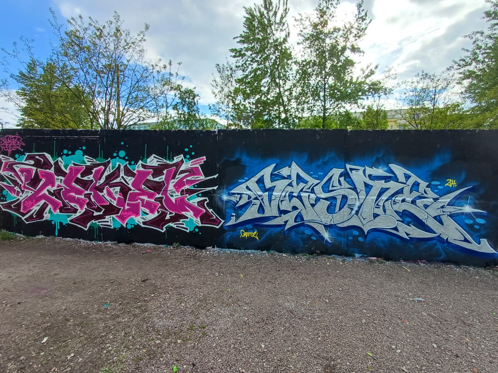 The graffiti on the left is from ZEKEL and the graffiti on the right was made by ARCS