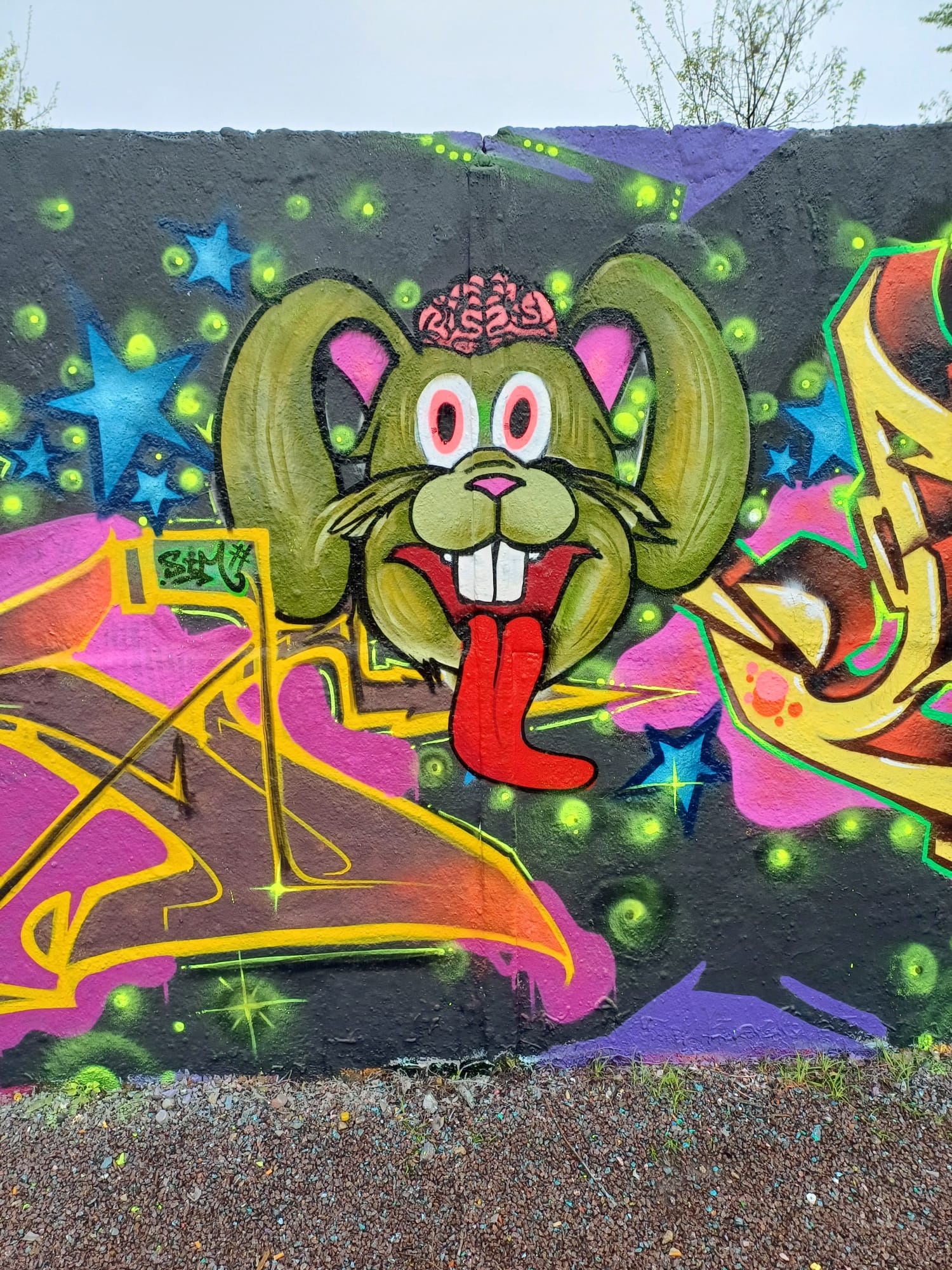 The graffiti on the left is from EWAK and the graffiti on the right was made by CABIS