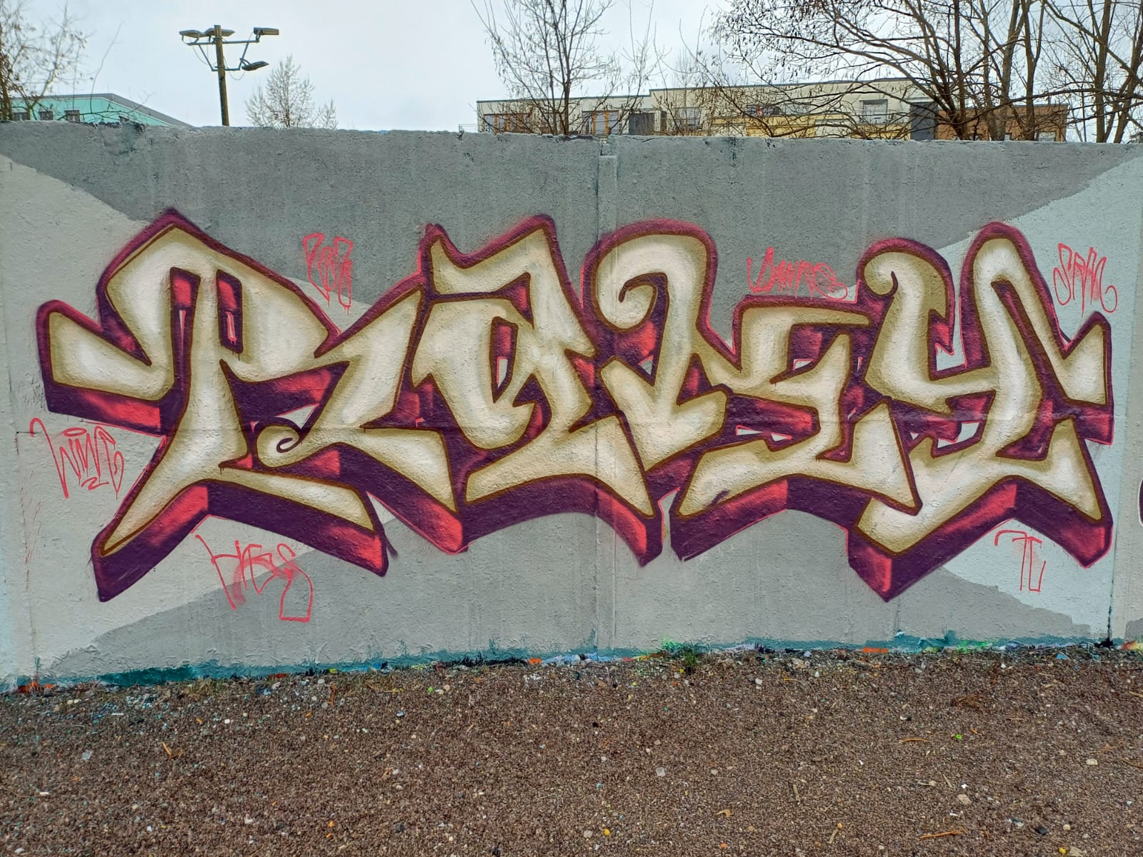 These graffiti were made during a birthday spray session for RAKY. The piece on the left is from DZUM and the graffiti on the right are from RONZE and YEZKO