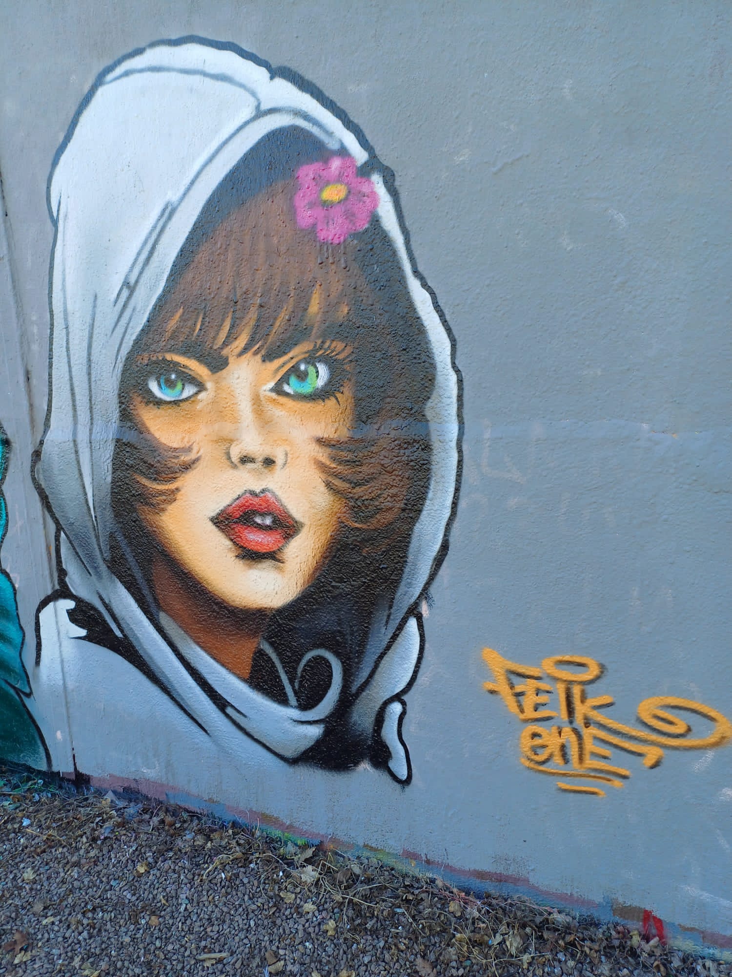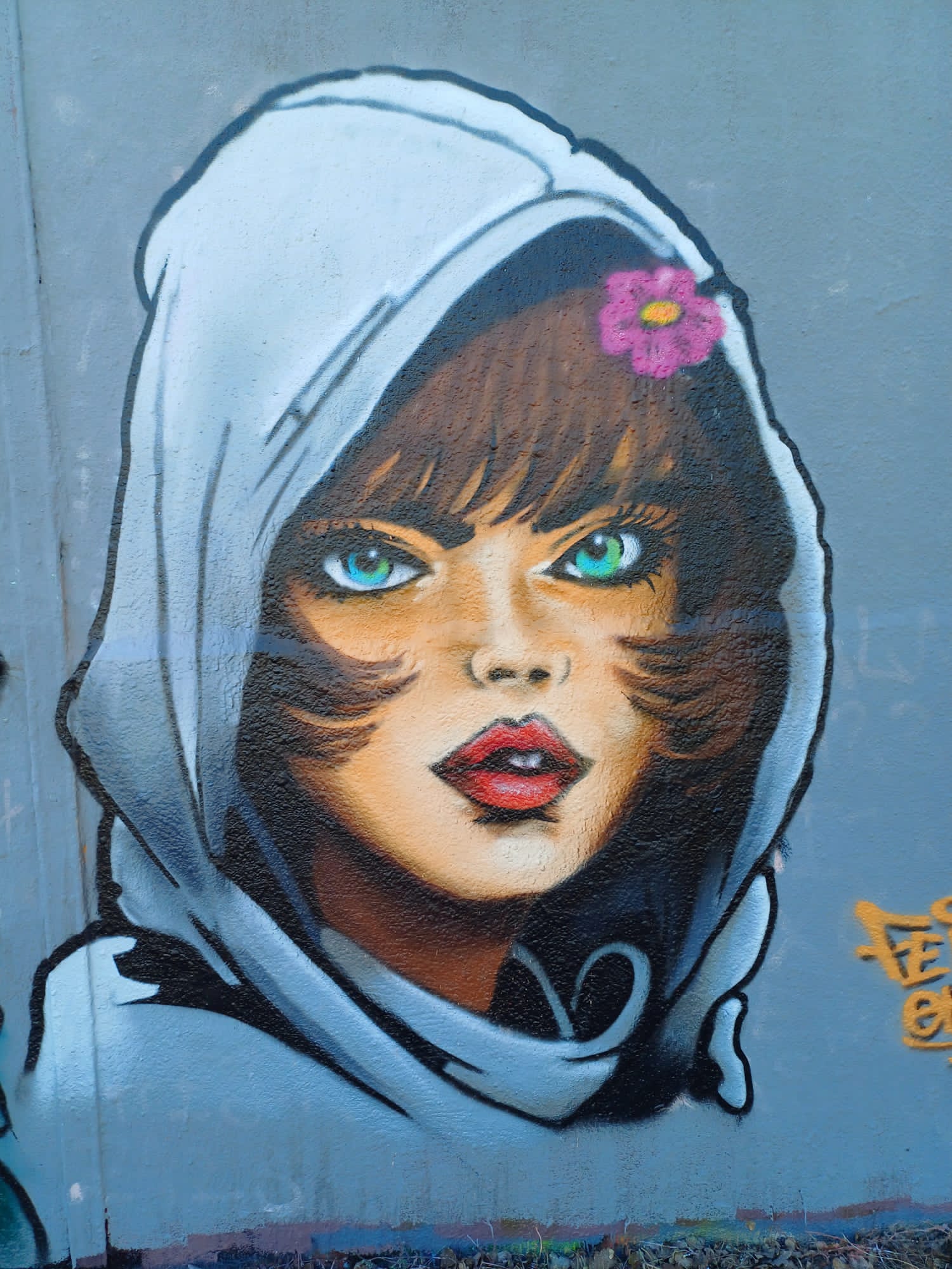 The portrait is from AMPER and the graffiti on the right was made by AWEK