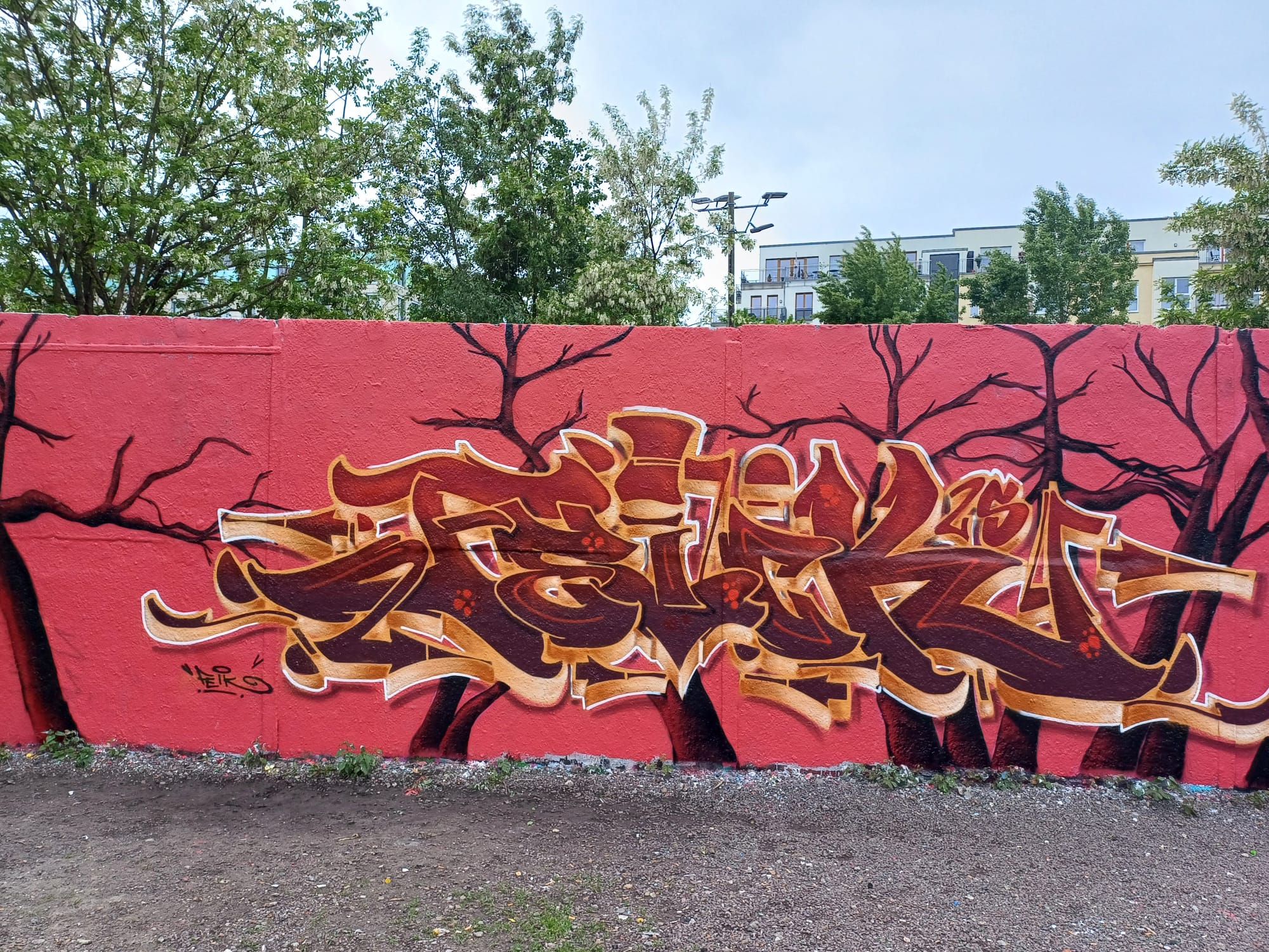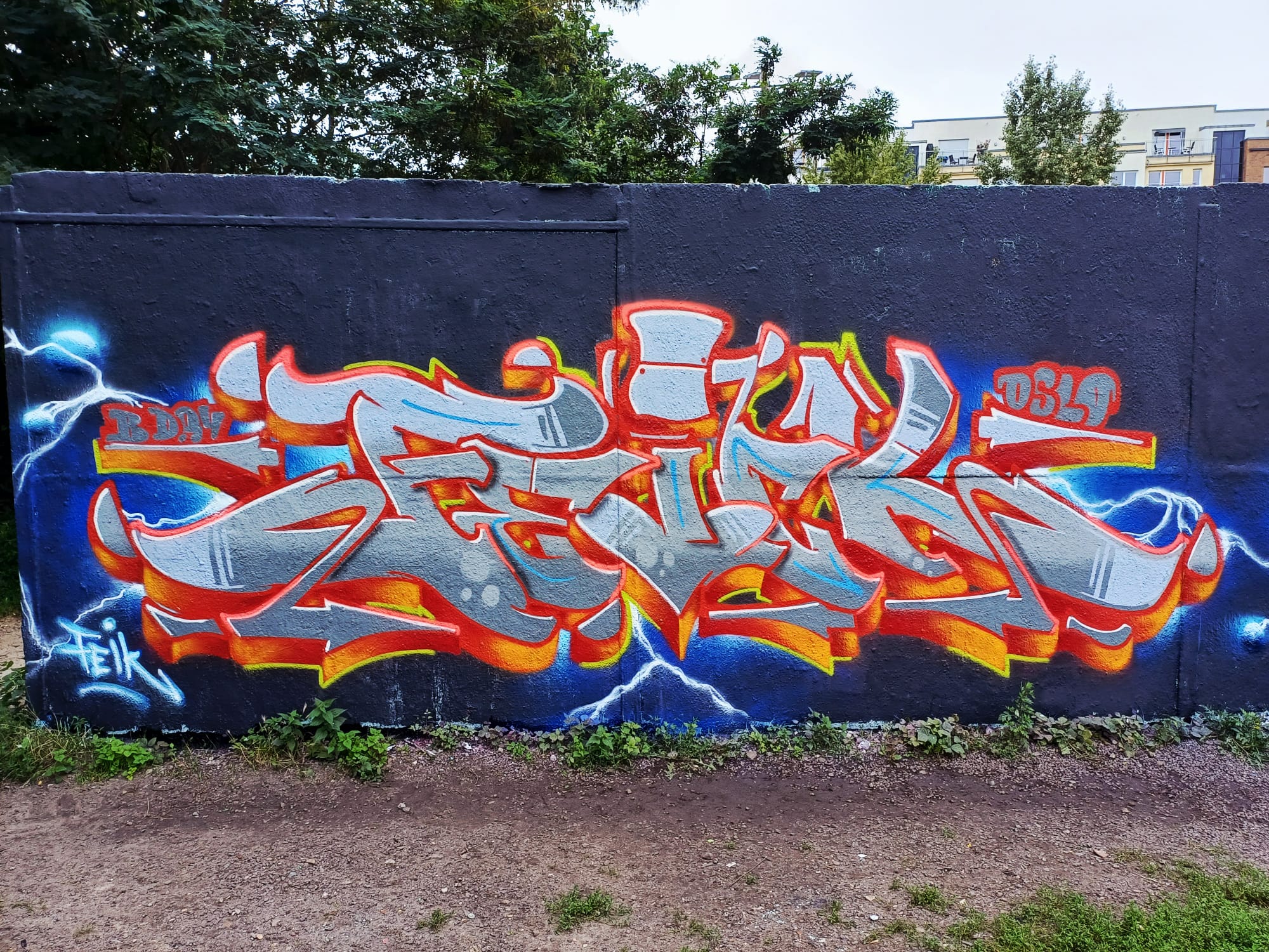 This graffiti is part of a great wall made for OSLO’s birthday. The artworks from left to right were made by FEIK, AMPER, OSLO, SHERA, LEFT, ESTO, ACKO and HOOMS