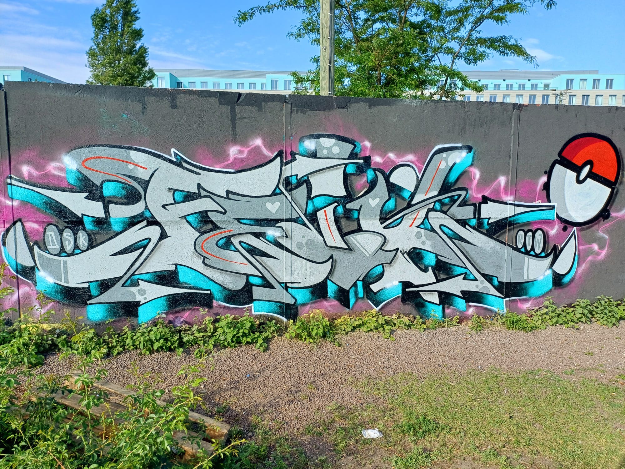 This graffiti is part of the great Pokémon Concept Wall made by several artists in May 2024. The graffiti from left to right were created by SNIK, JAY T, GETNO, KEPTER and FEIK. The characters in between were also made by KEPTER.