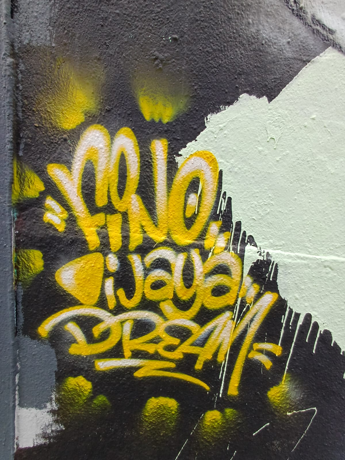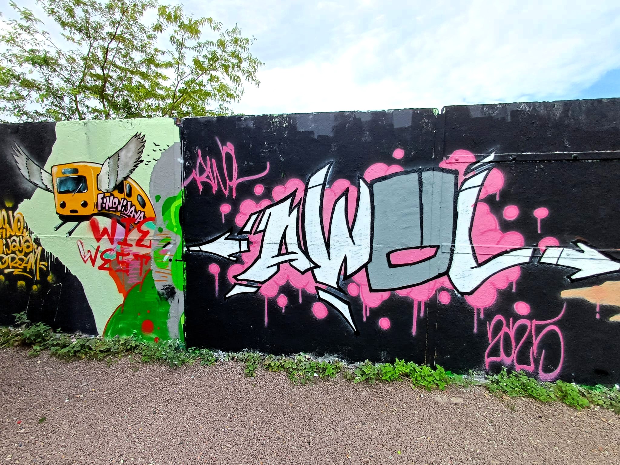 The graffiti on the left is from TRICKFRUIT and the graffiti on the right is from AWOL