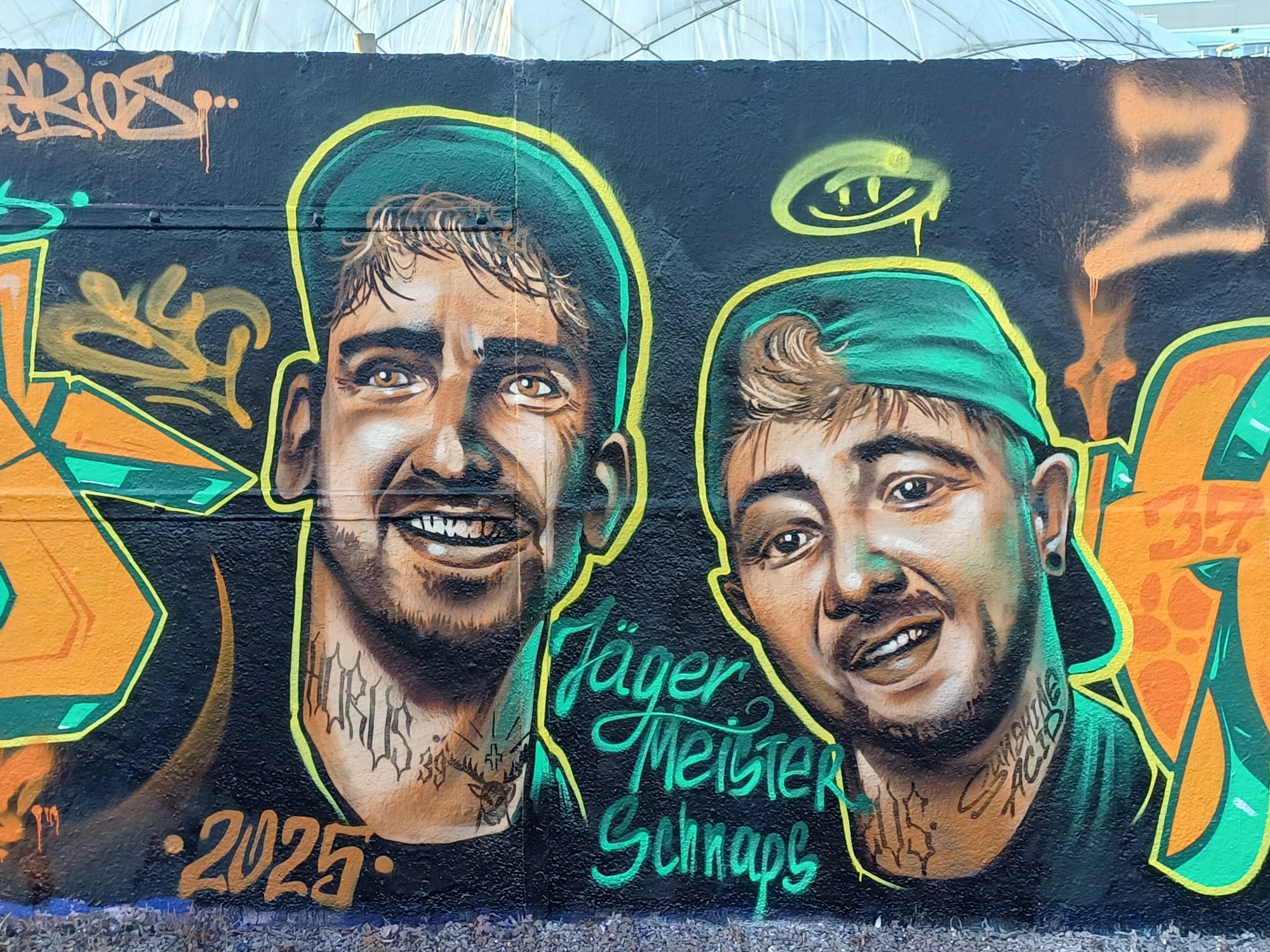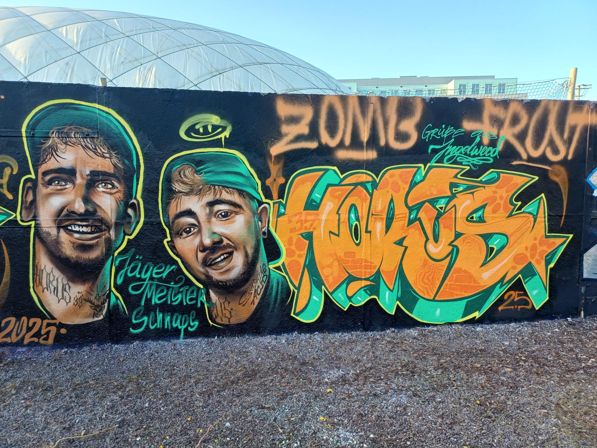 This tribute wall to the two rappers was made by FROST and ZOMB from the ZVS CREW from Ingolstadt.