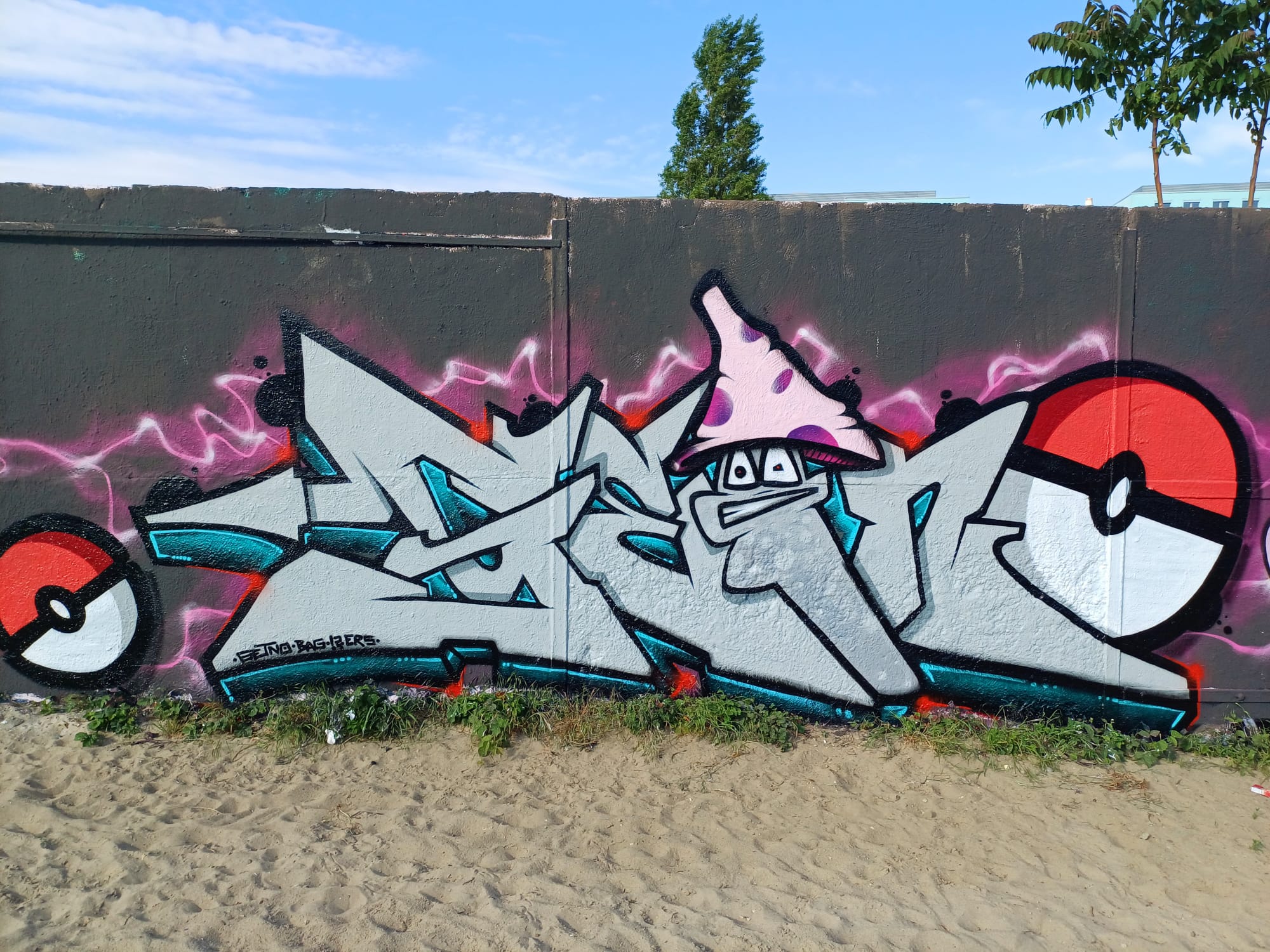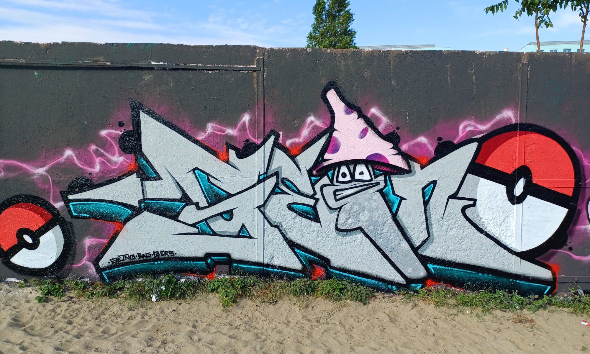 This graffiti is part of the great Pokémon Concept Wall made by several artists in May 2024. The graffiti from left to right were created by SNIK, JAY T, GETNO, KEPTER and FEIK. The characters in between were also made by KEPTER.