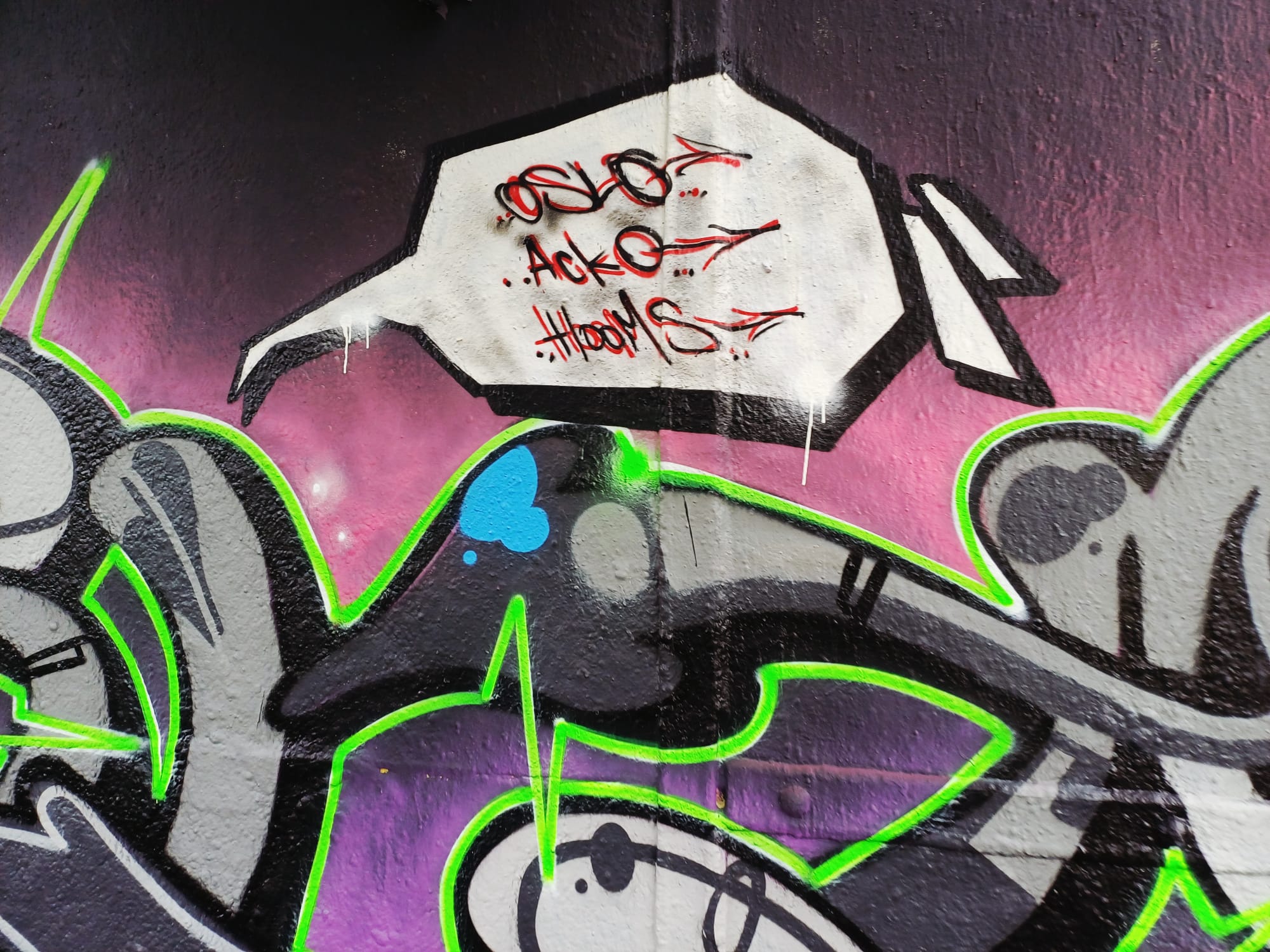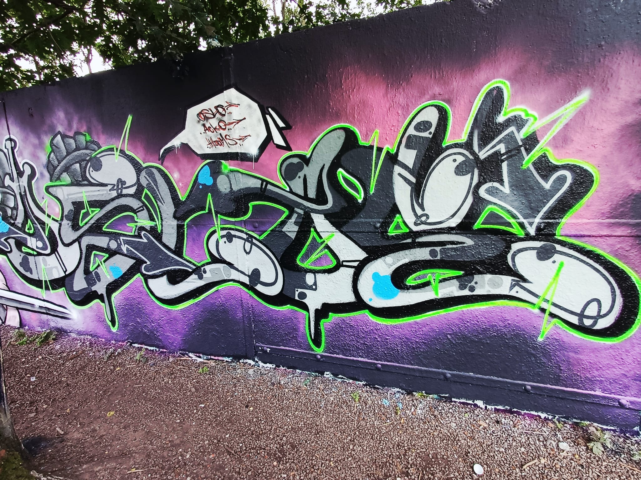 This graffiti is part of a great wall made for OSLO’s birthday. The artworks from left to right were made by FEIK, AMPER, OSLO, SHERA, LEFT, ESTO, ACKO and HOOMS
