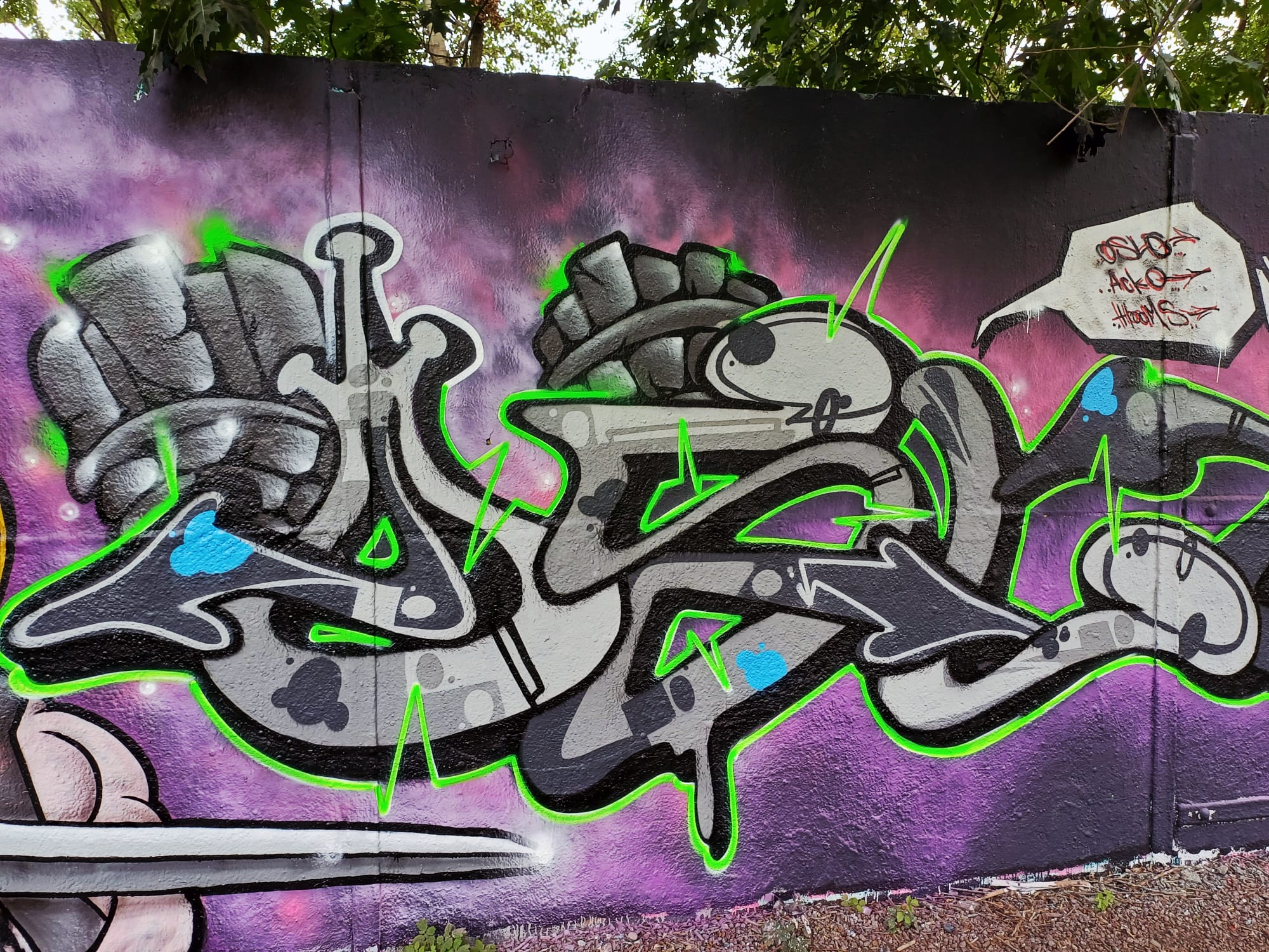 The graffiti on the left is from ESTO and the Kung Fu Panda in the middle was made by AMPER