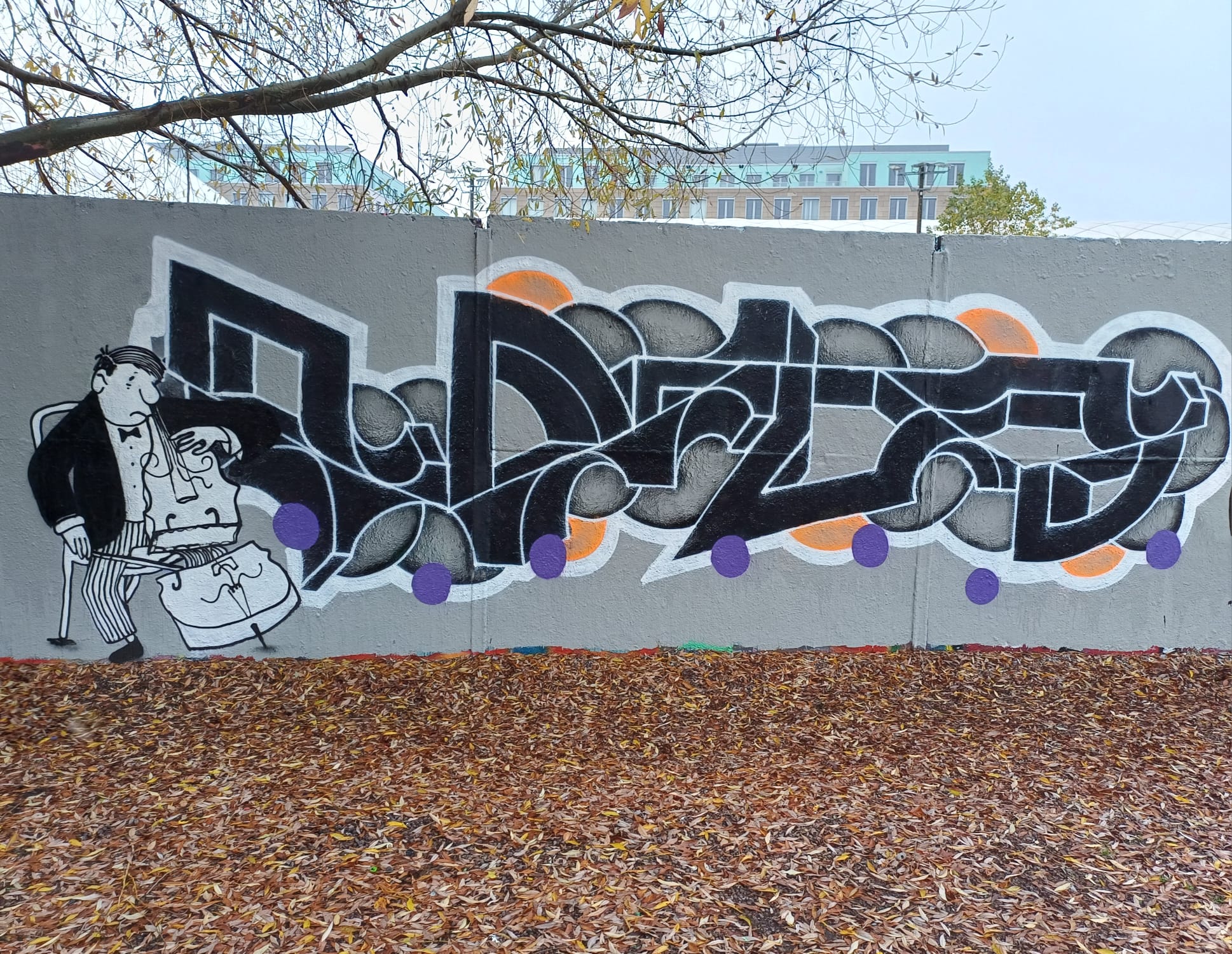 The artwork on the left is from GOMEZ and the graffiti on the right was made by SECOND 1