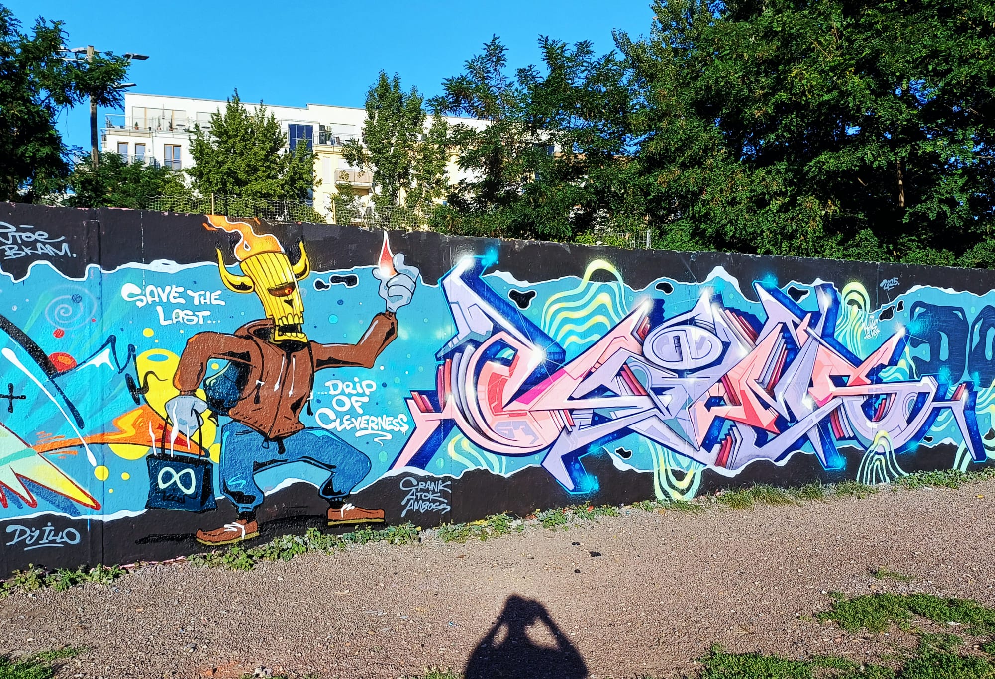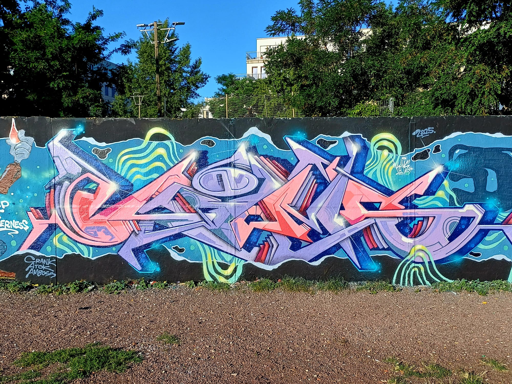 This awesome long wall was made during the spray session for the birthday of BOND. Also included were the artists RAMBO, GLURAK, METS 7, FILOU, ETOE, NATUR 189 ,MASO, TURNADO, ARGH, ATOR, KIMS, JAZZ, MOSHA and others.