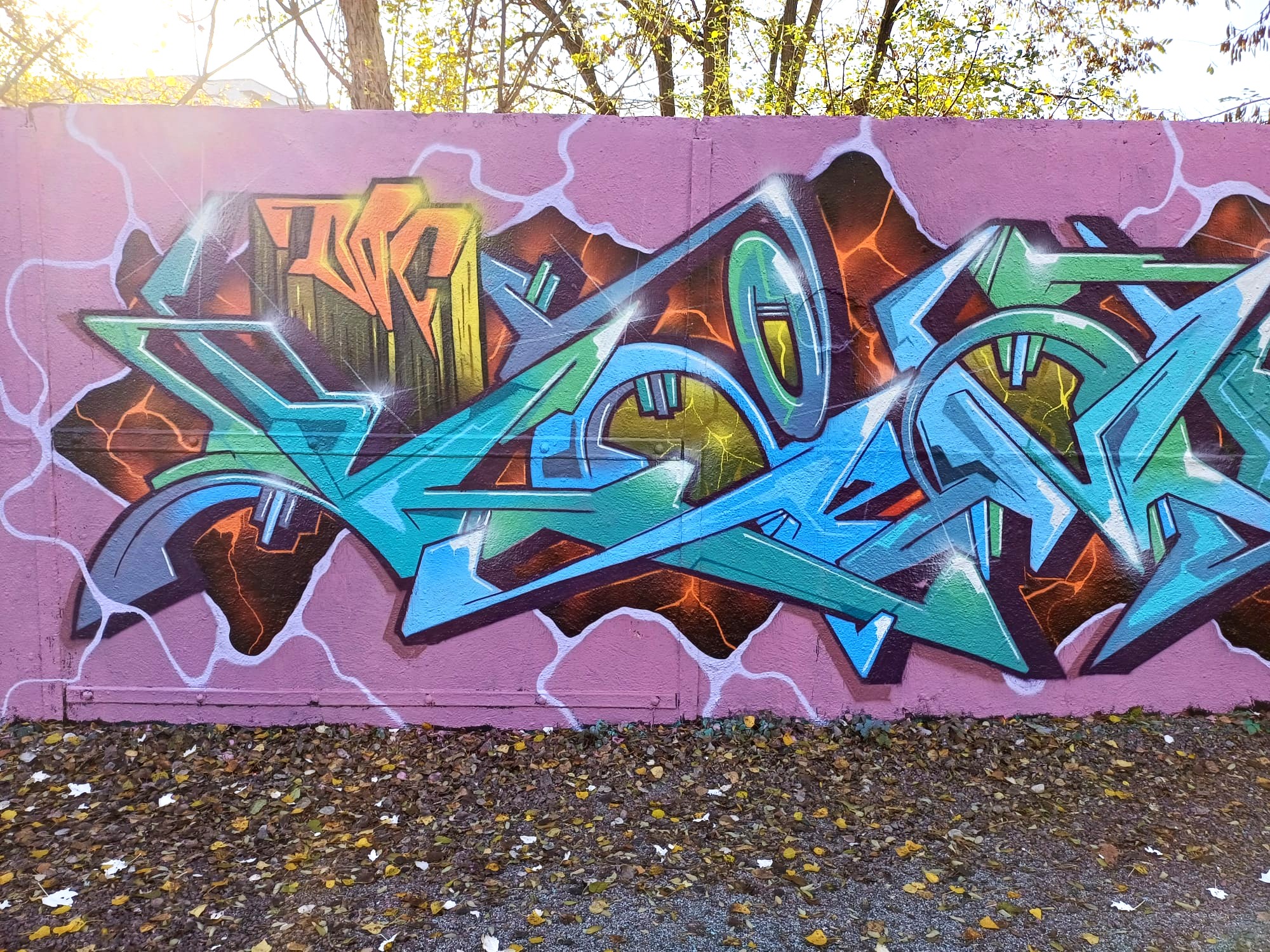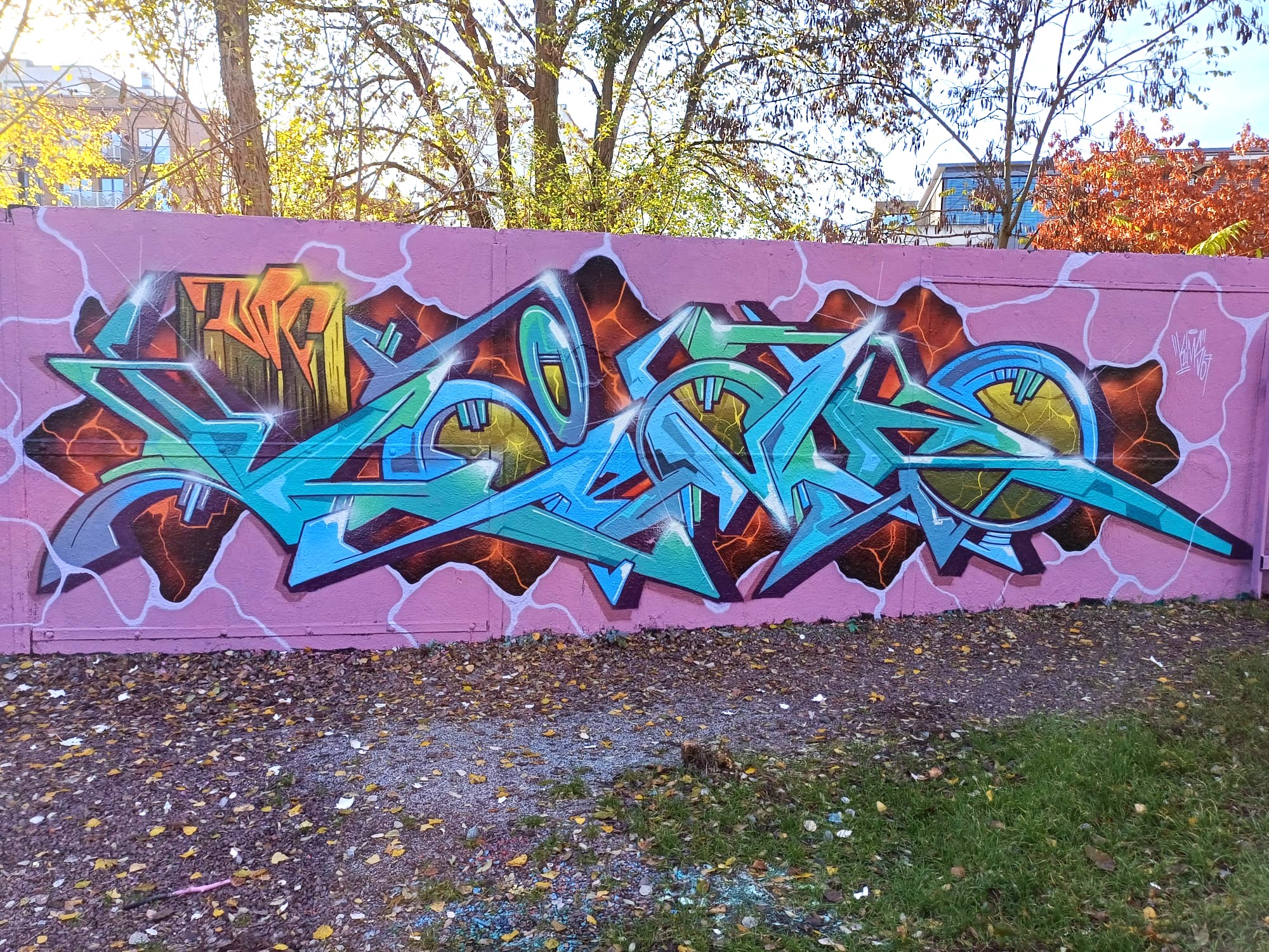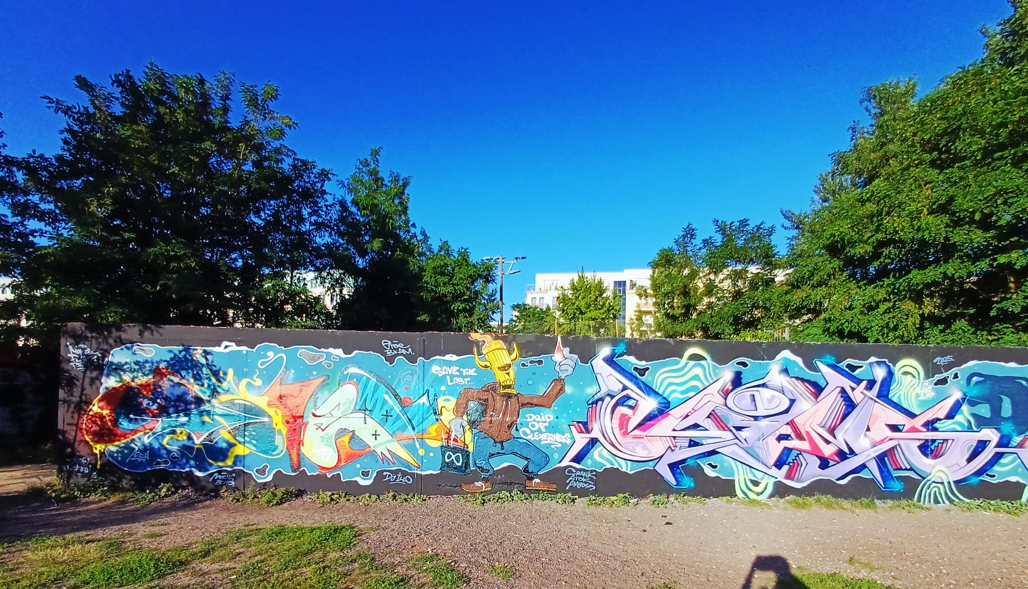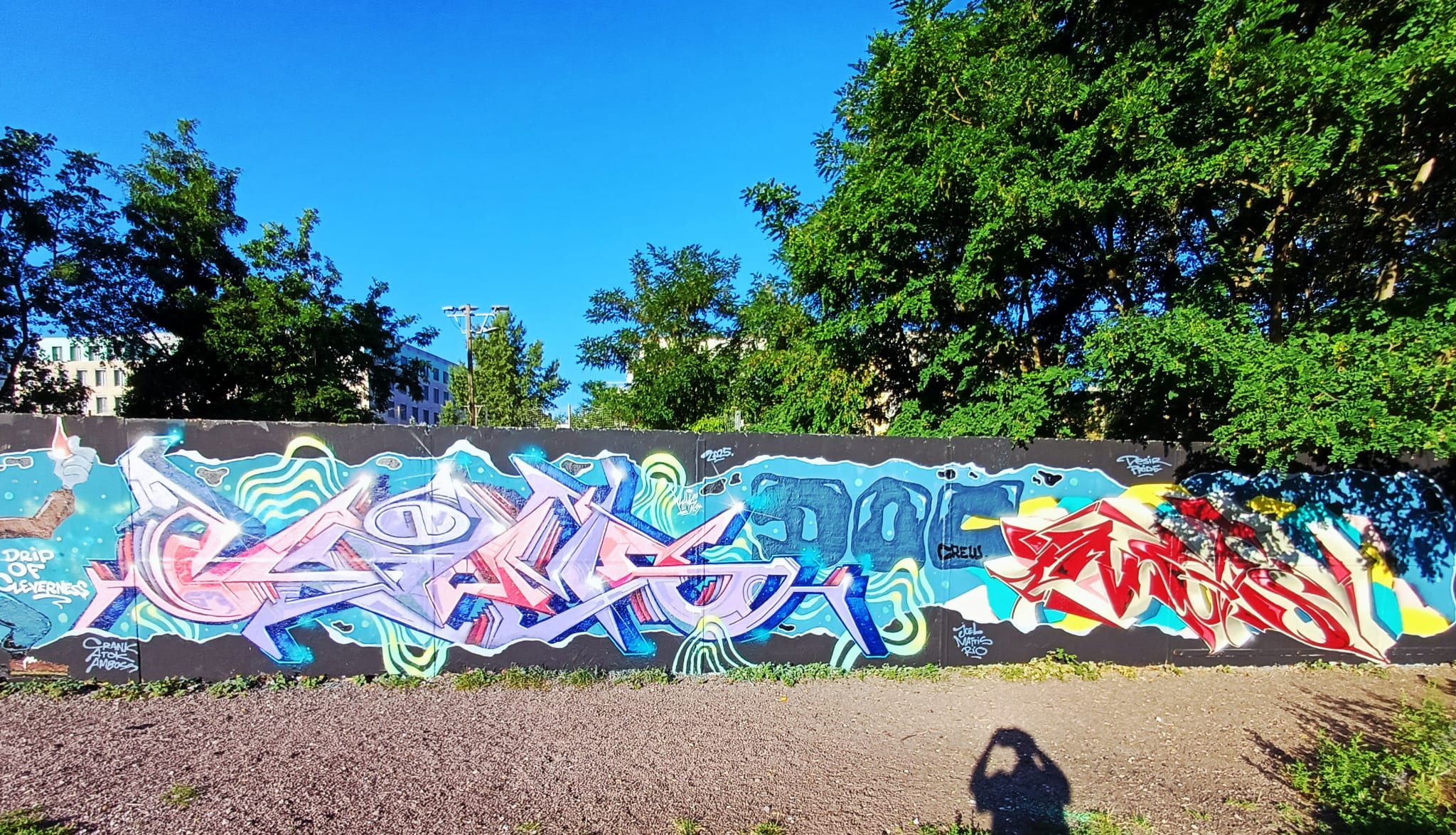 The graffiti on the left are from FLEUR and the FYA CREW, and the graffiti on the right are again from the FYA CREW, BOND, BKOME and WILD