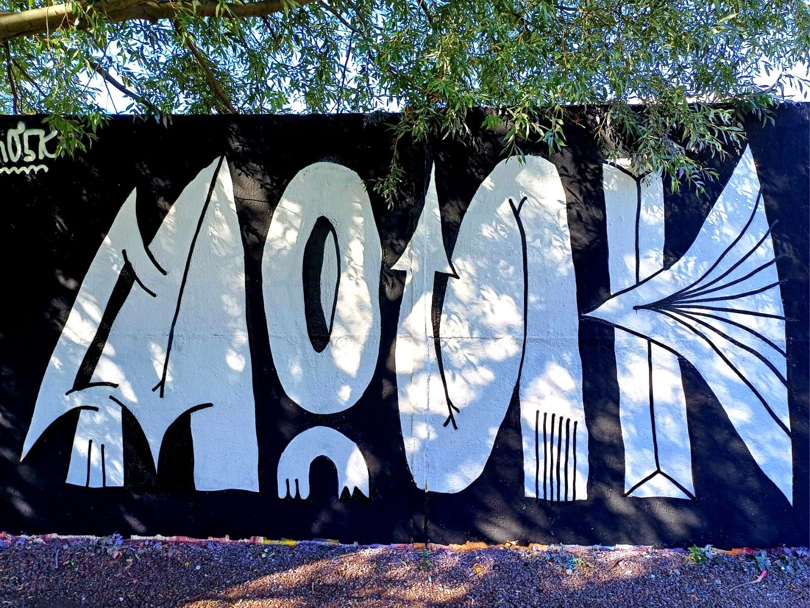 The graffiti on the right is from OLEK