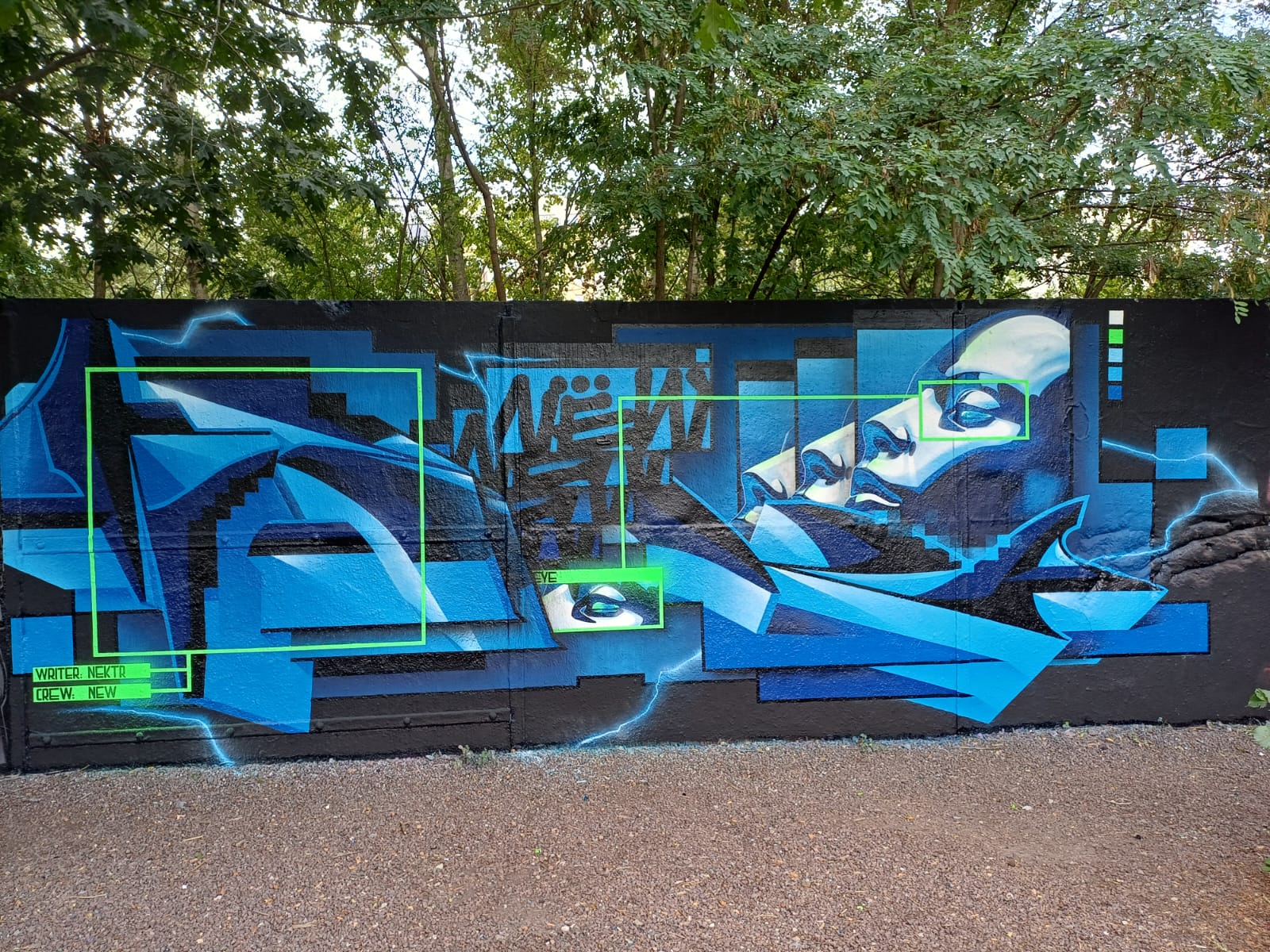 The artwork on the left is from NEKTR, the upside down character is from MATE ARTIST, the next character with graffiti is from WANDBRAND aka DYR and the bull on the right was made by CAZL.