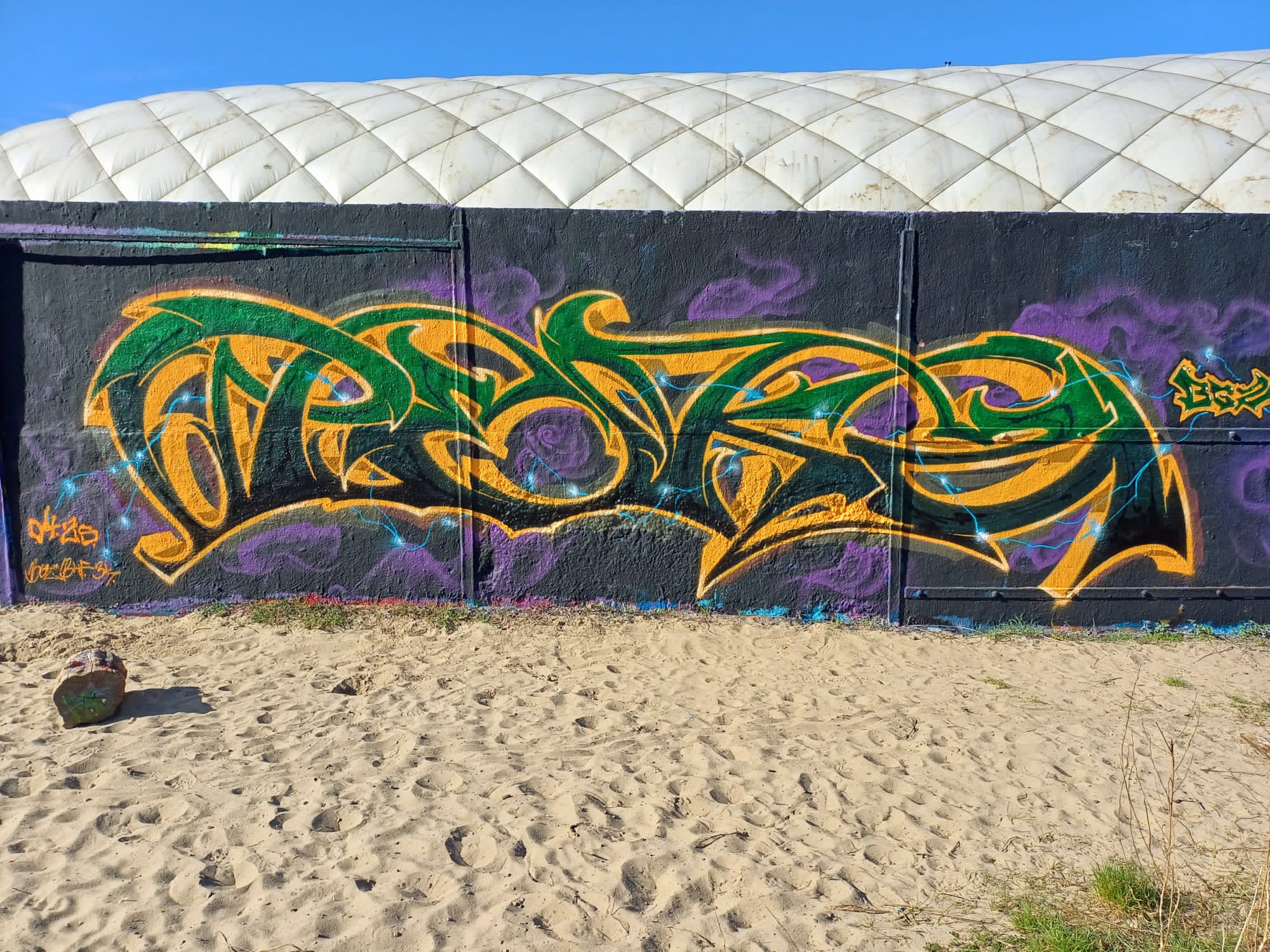 The graffiti on the left is from ATEM and the graffiti on the right is from ORERO.