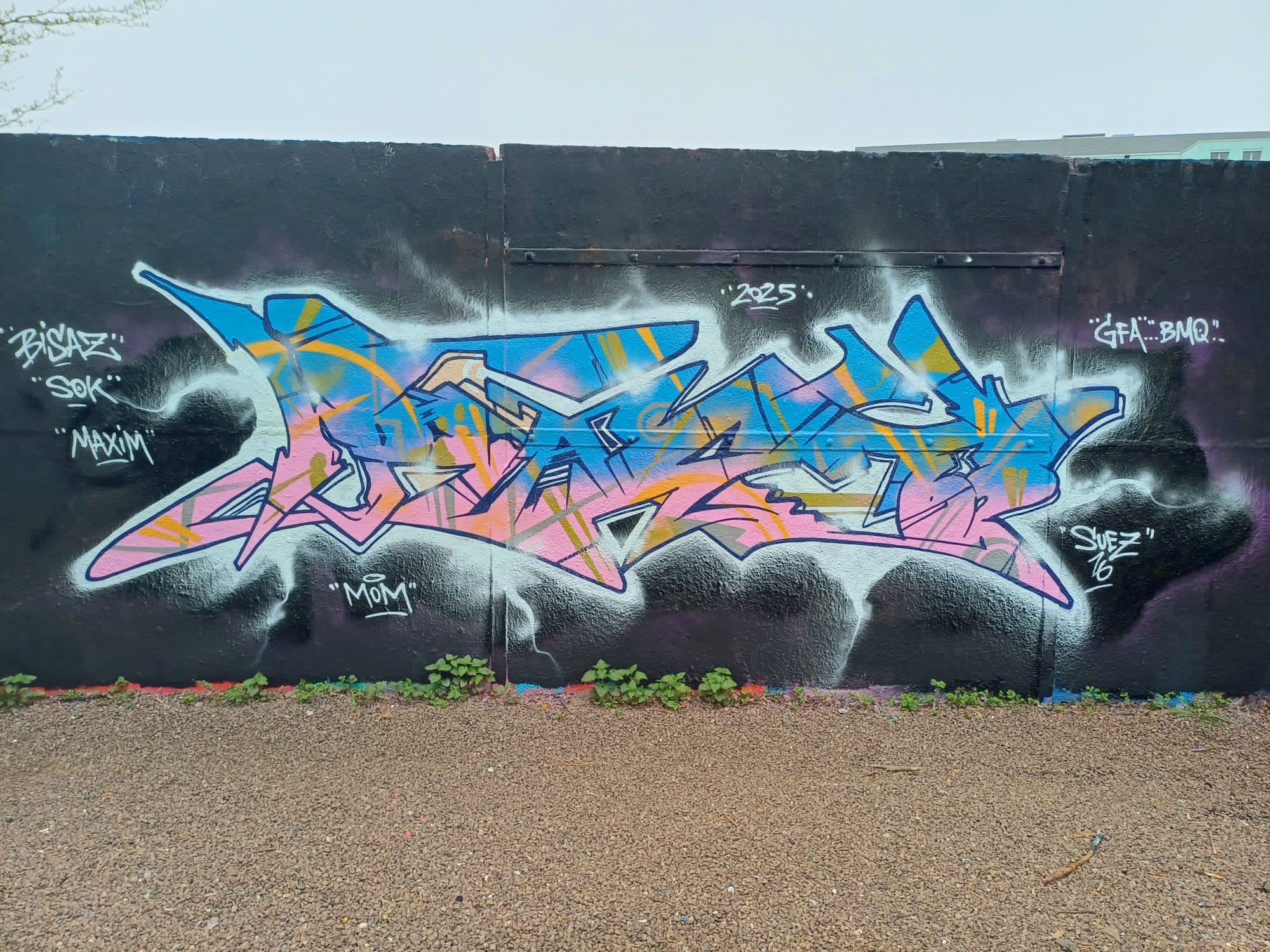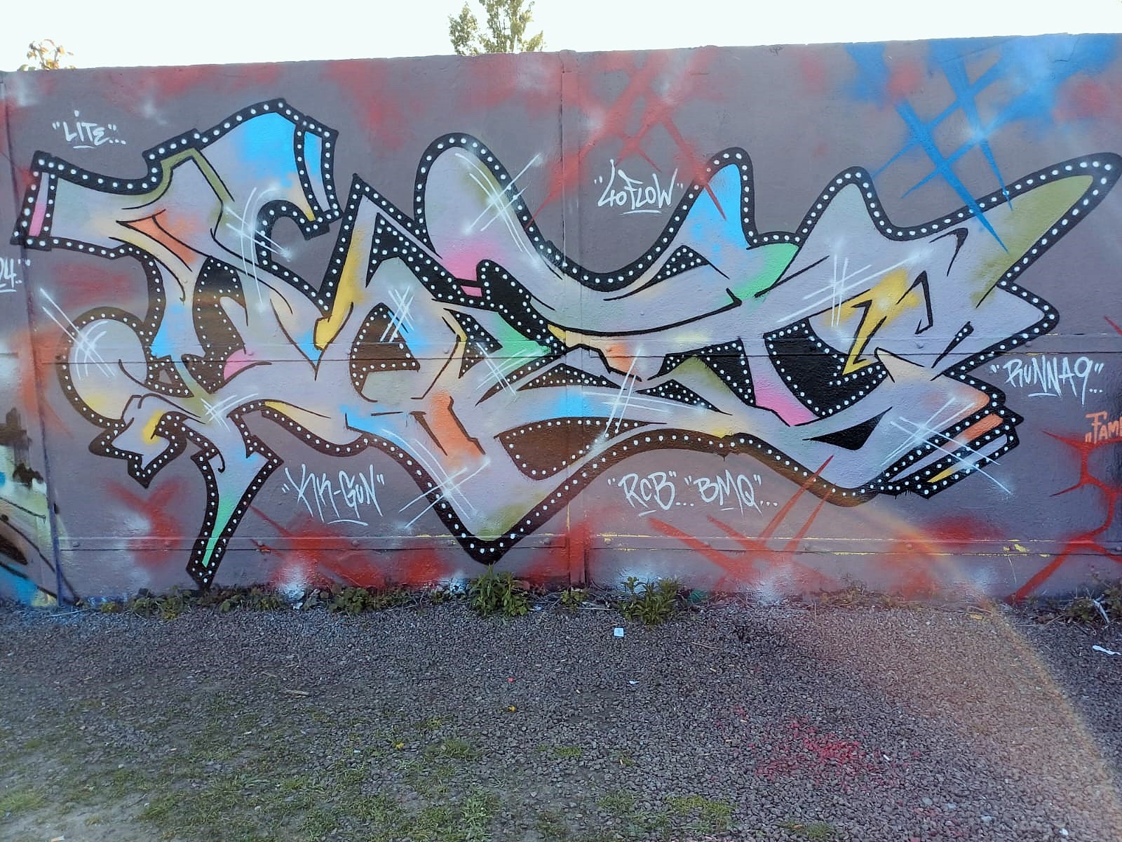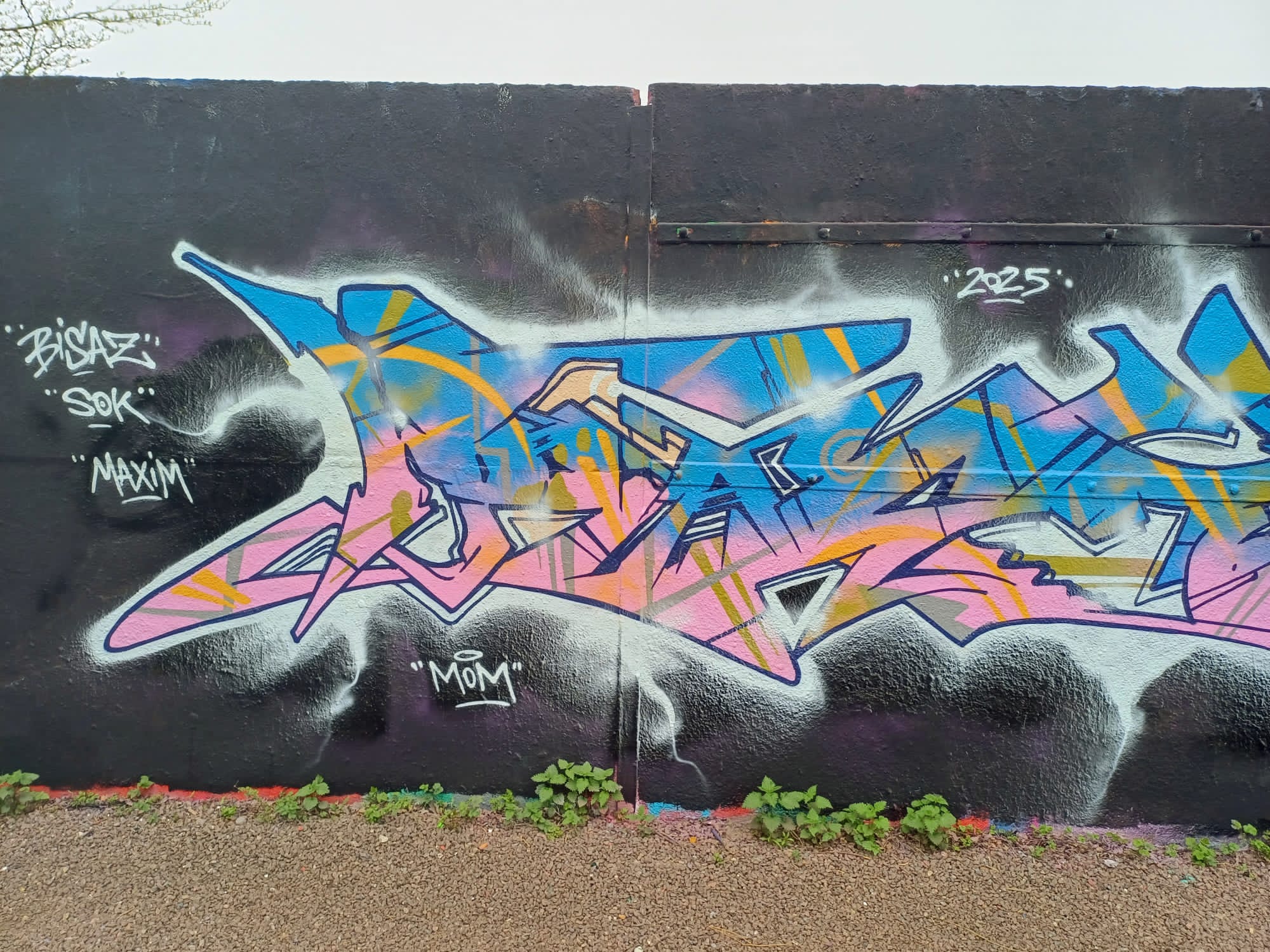 The graffiti on the left is from IZYE and the grafftiti on the right was made by INKA