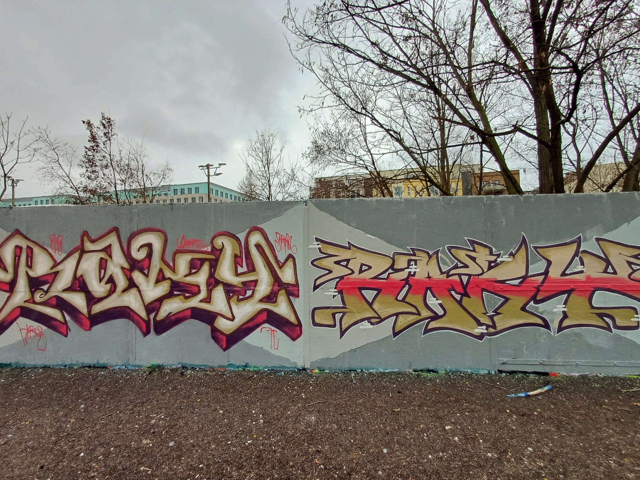 These graffiti were made during a birthday spray session for RAKY. The pieces on the left are from DZUM and DUKE, and the graffiti on the right is from YEZKO