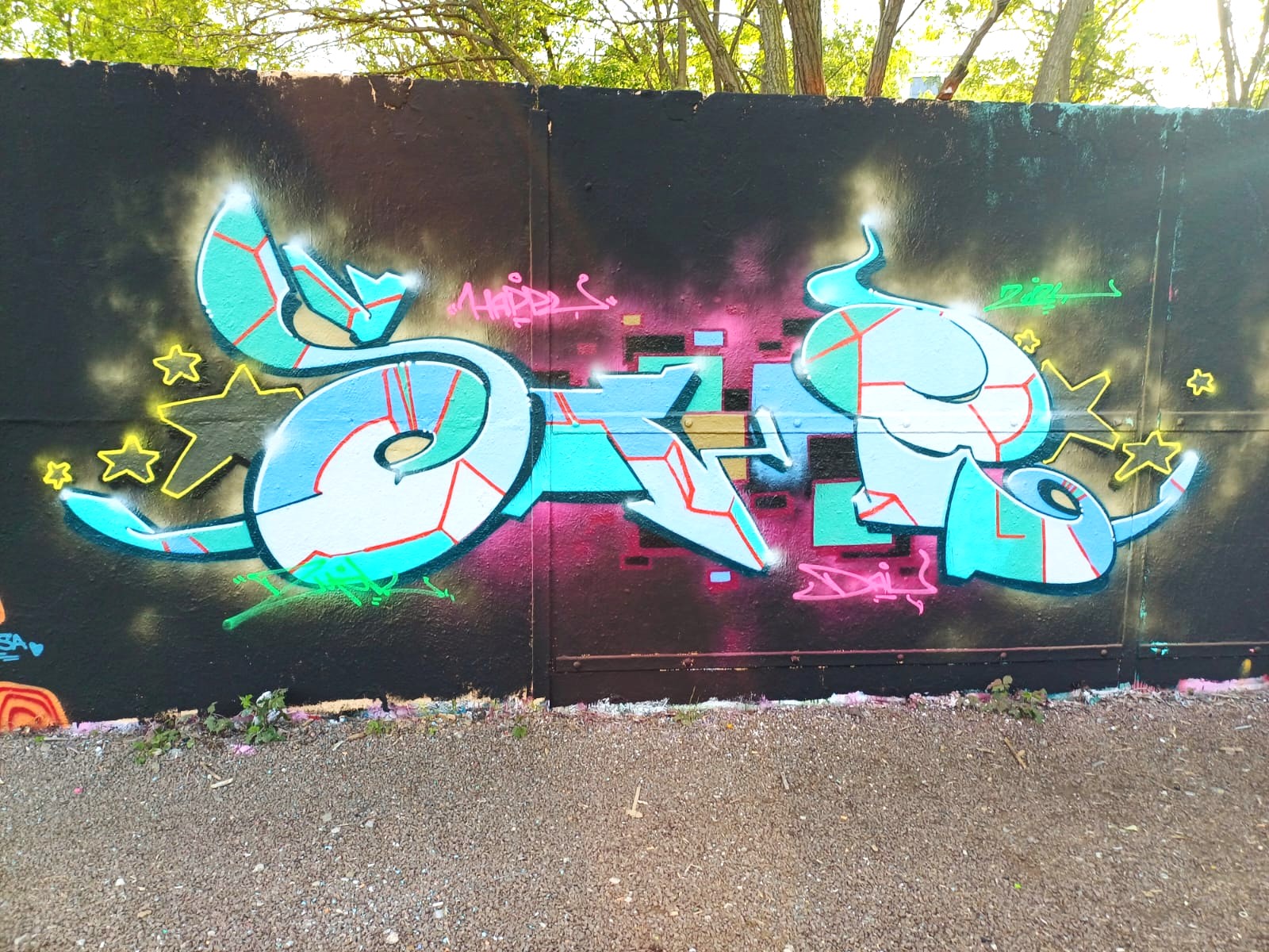 The graffiti on the left were made by NATUR, HARDSKOR and BIEROLOGE. Happy Birthday HARDSKOR !