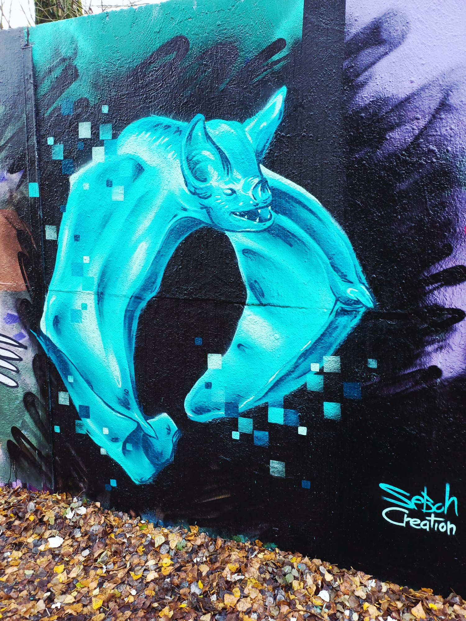 The graffiti on the left is from BACKE and the artwork on the right was made by TAREK