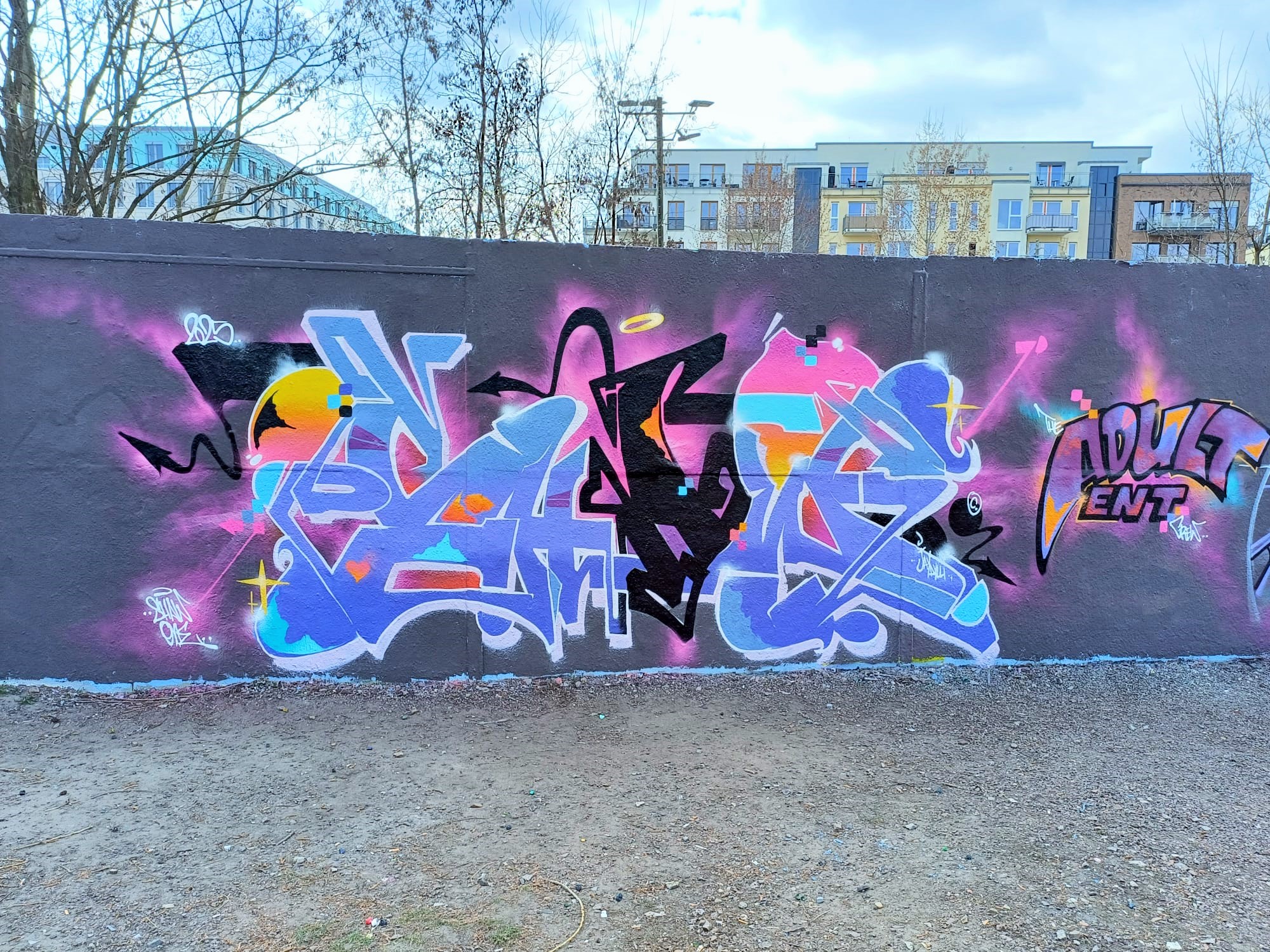 The artwork on the left is from ZART and the graffiti on the right was made by MORE 189