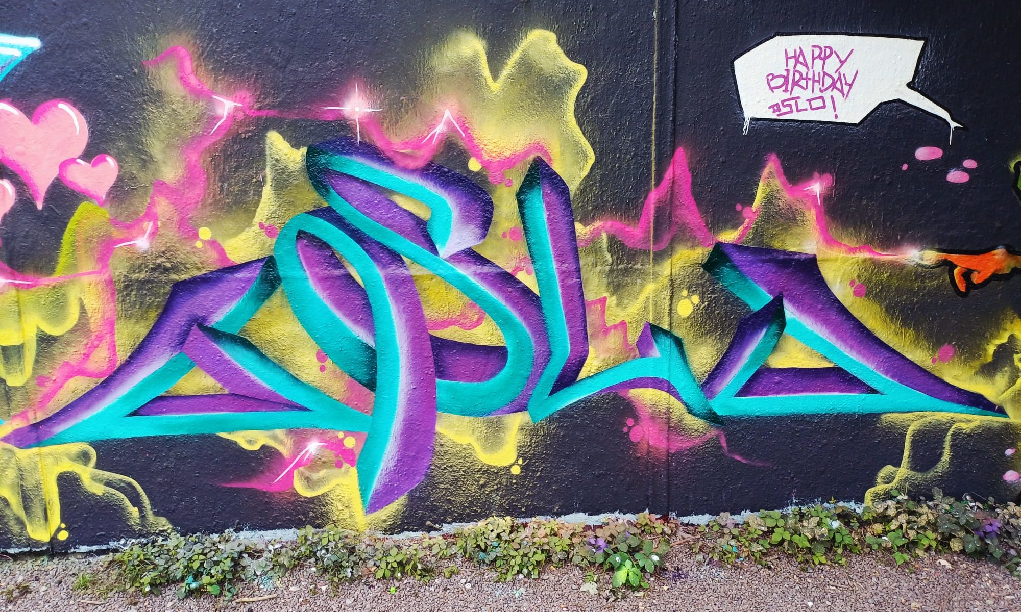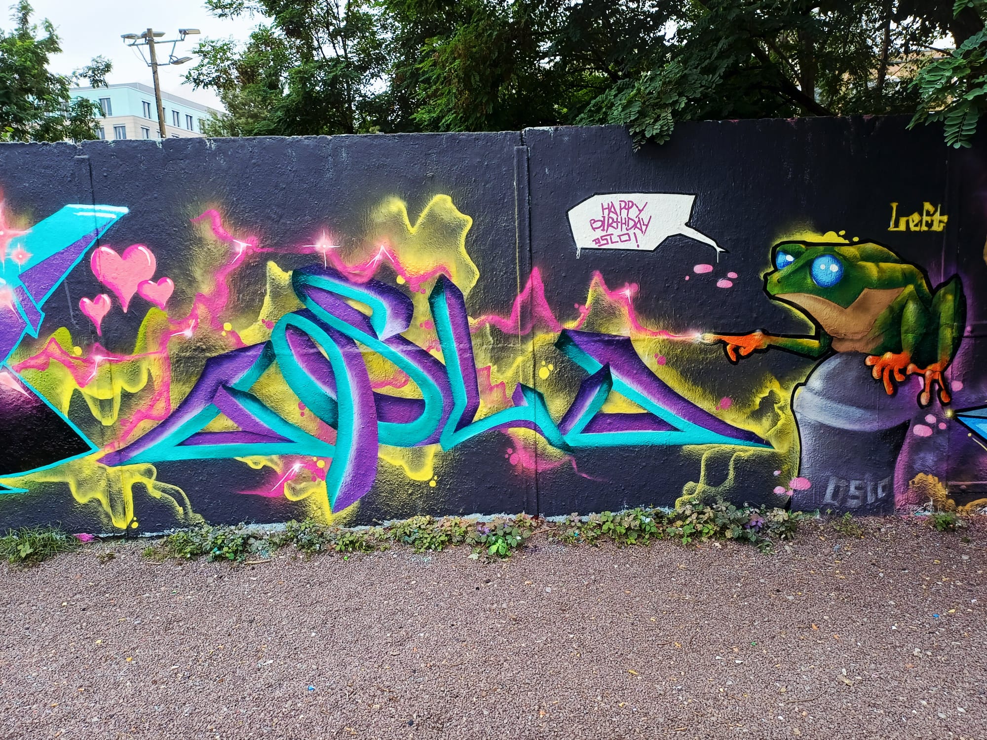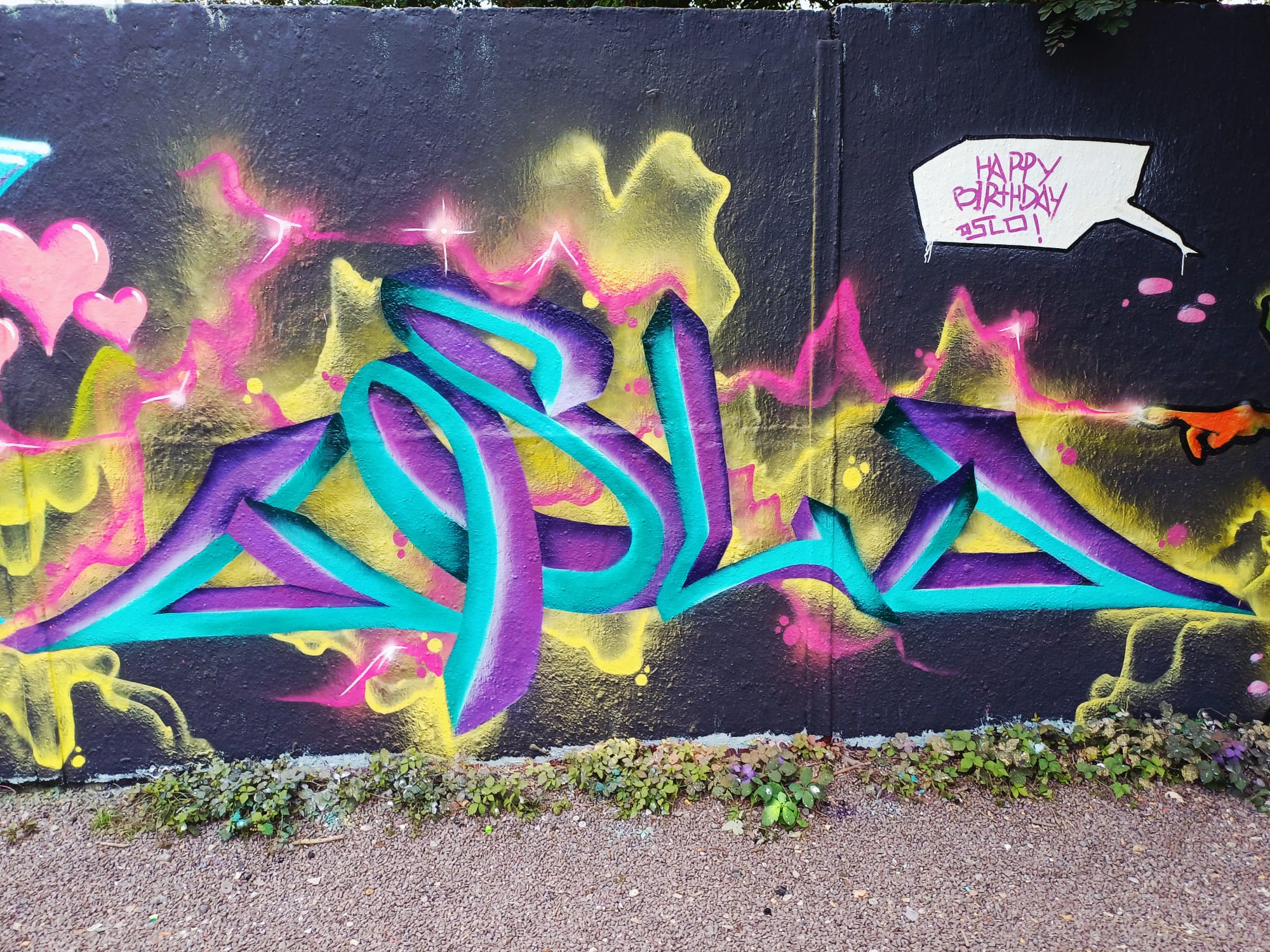 This graffiti is part of a great wall made for OSLO’s birthday. The artworks from left to right were made by FEIK, AMPER, OSLO, SHERA, LEFT, ESTO, ACKO and HOOMS
